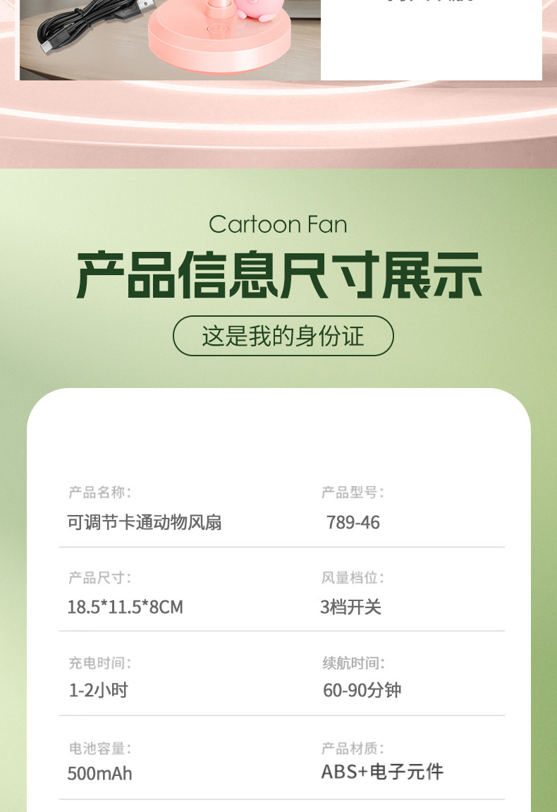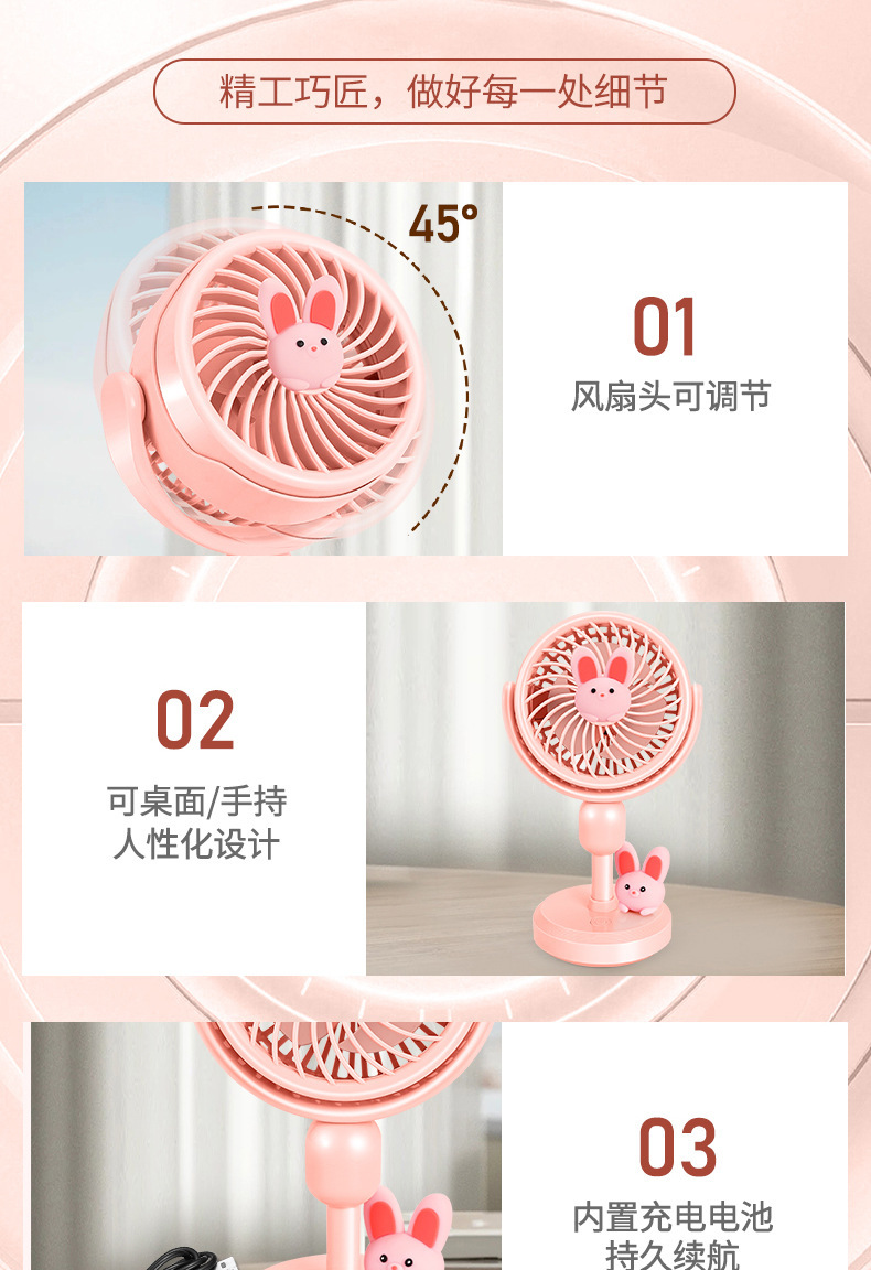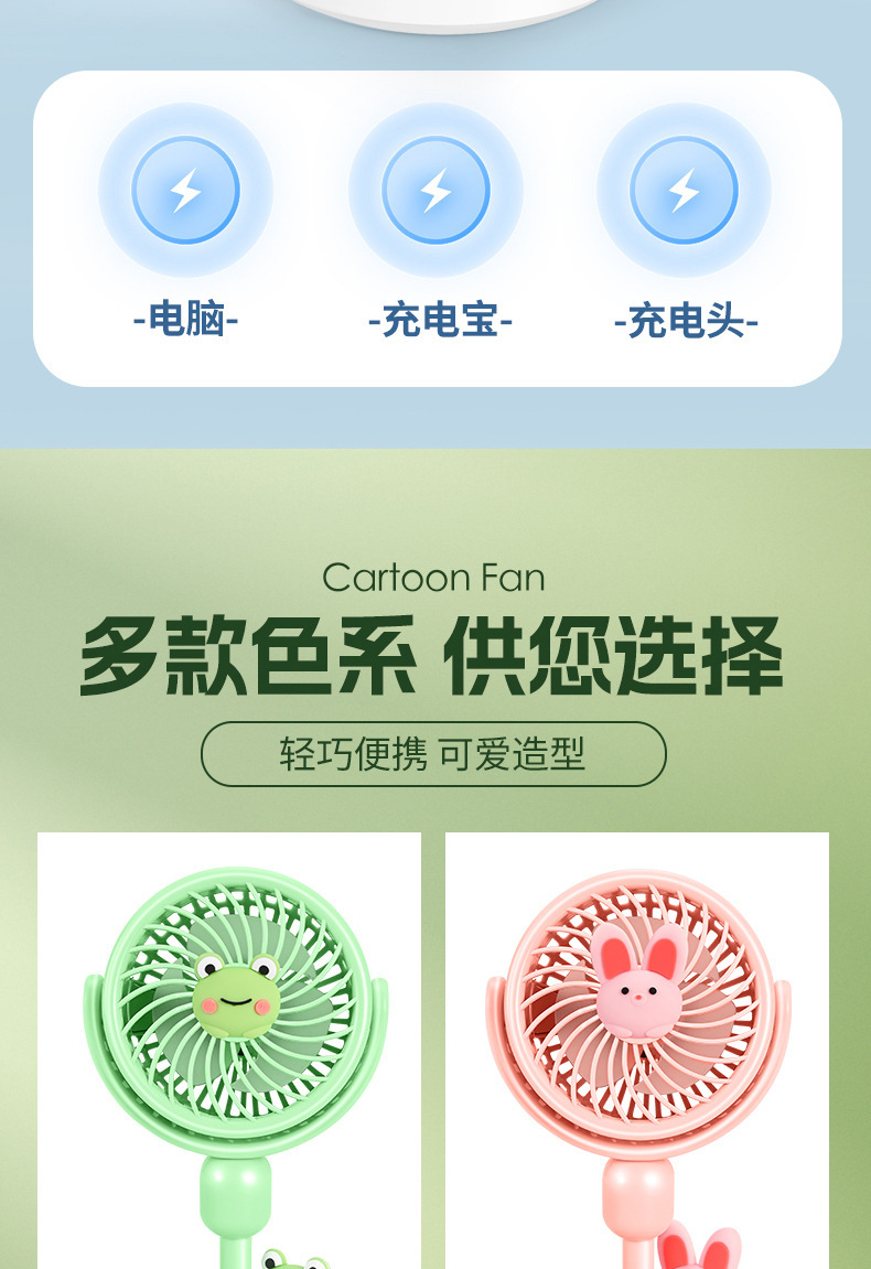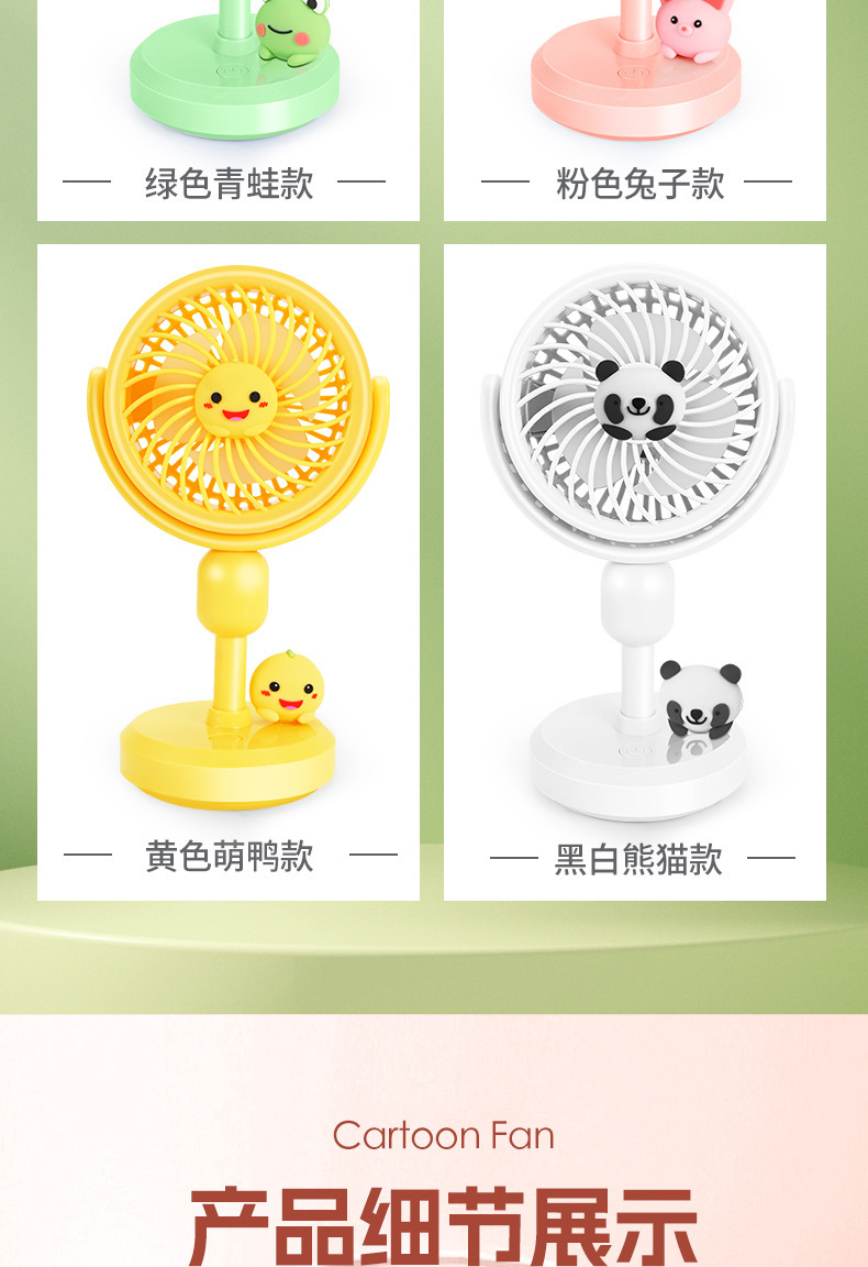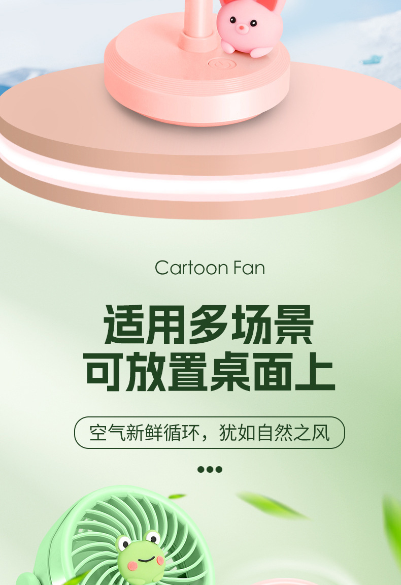 跨境新款卡通三挡手持台式小风扇静音大风力便携式学生学习电扇厂