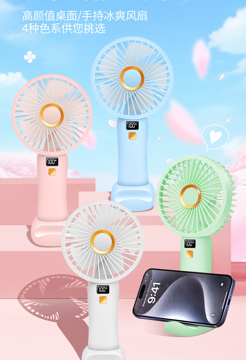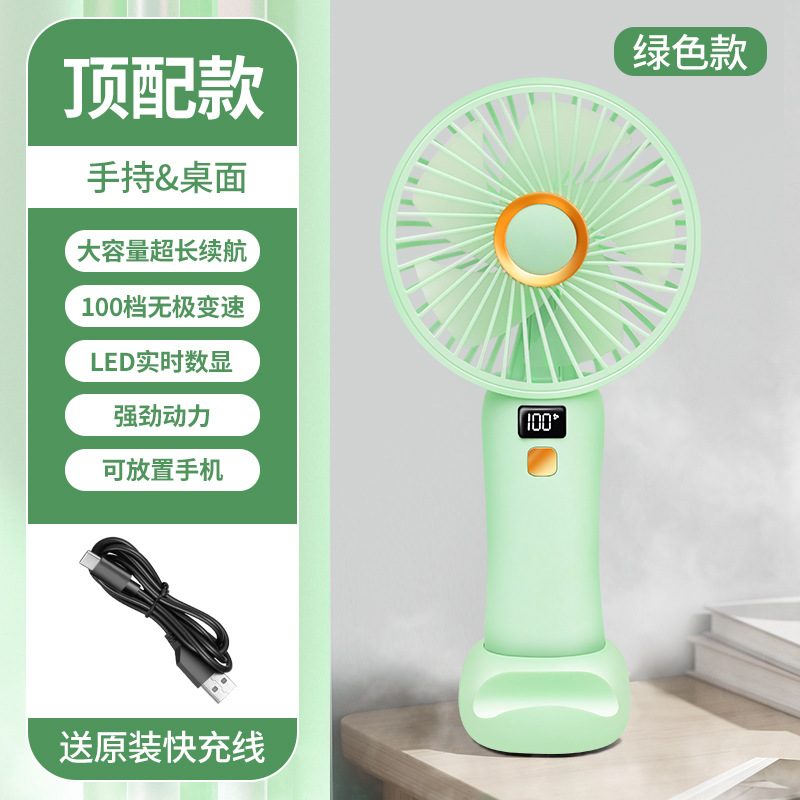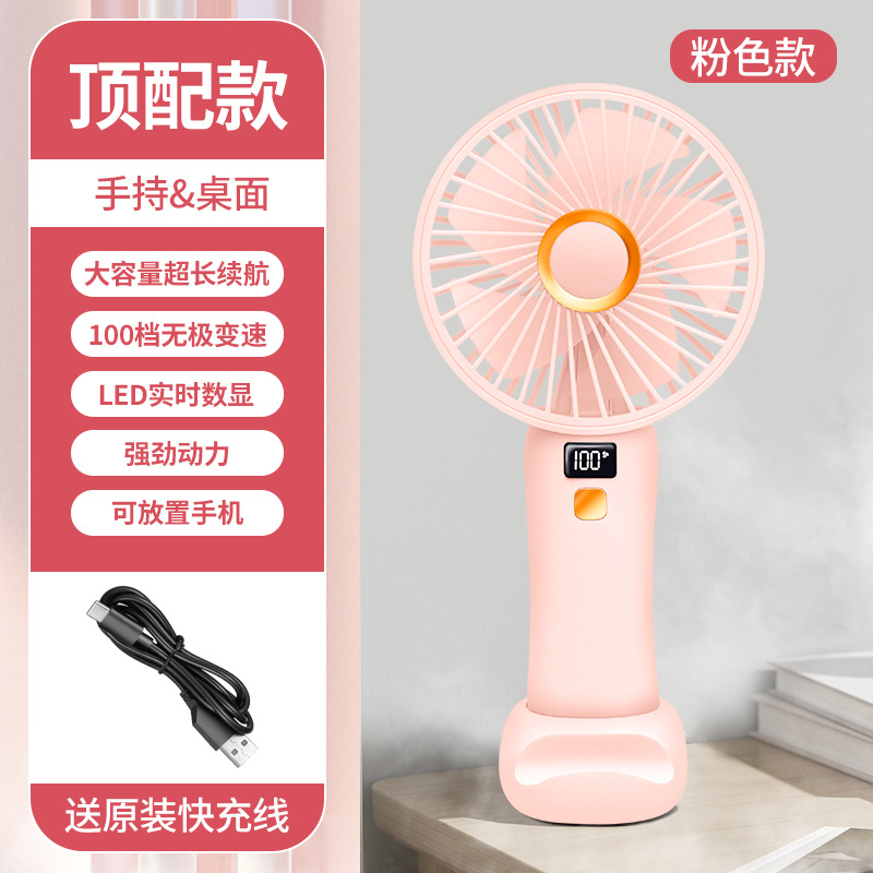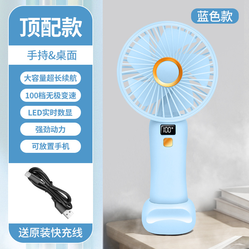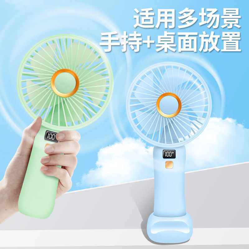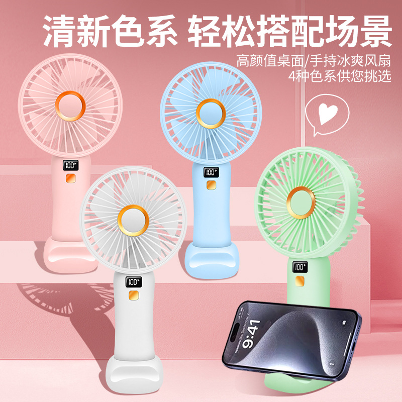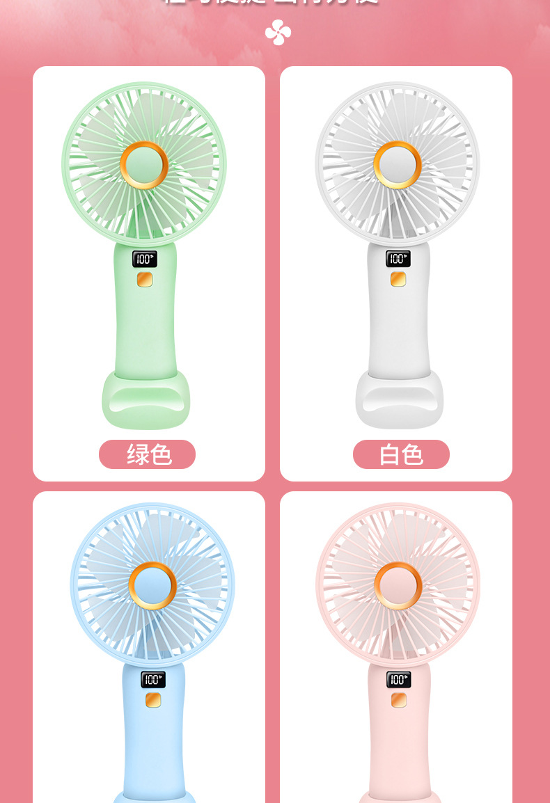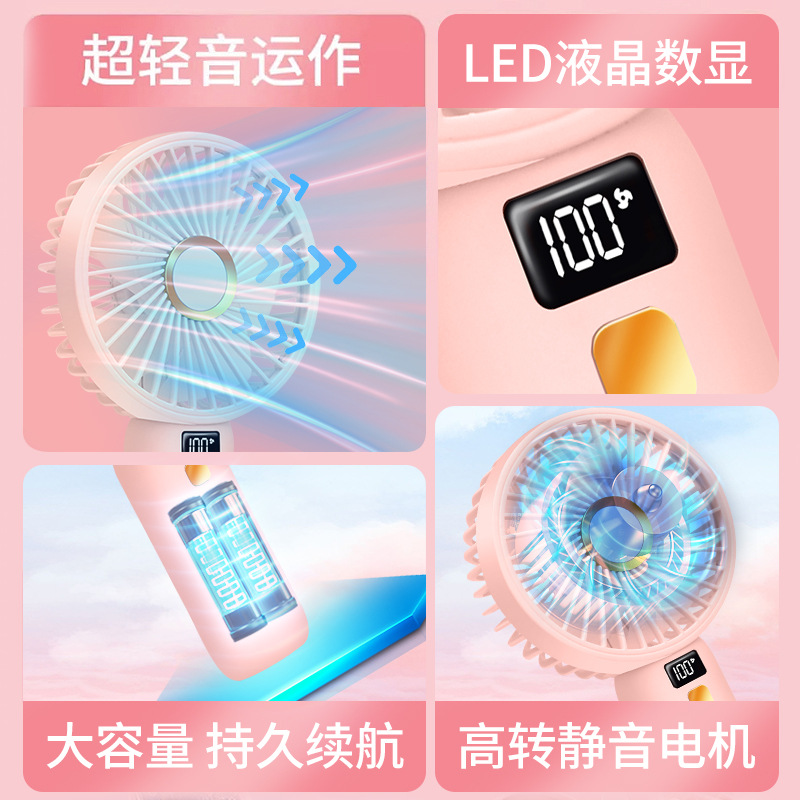 桌面数显usb充电手持小风扇迷你便携夏季学生大风力手机支架电扇