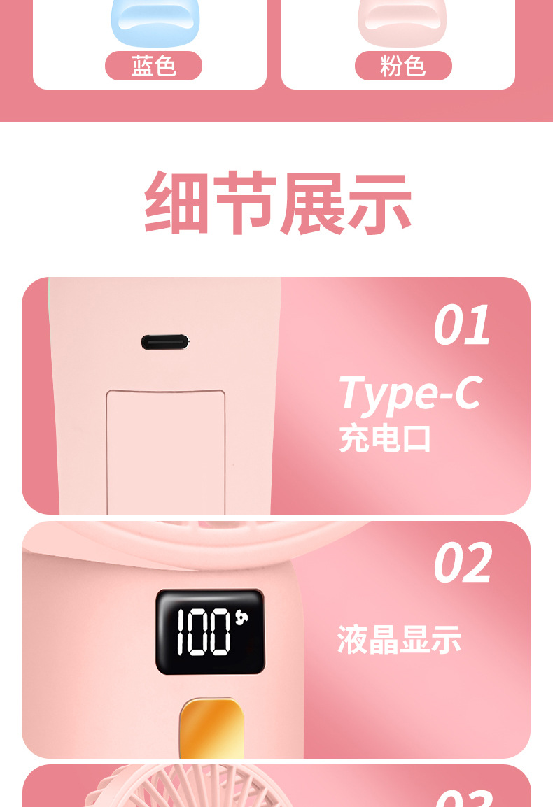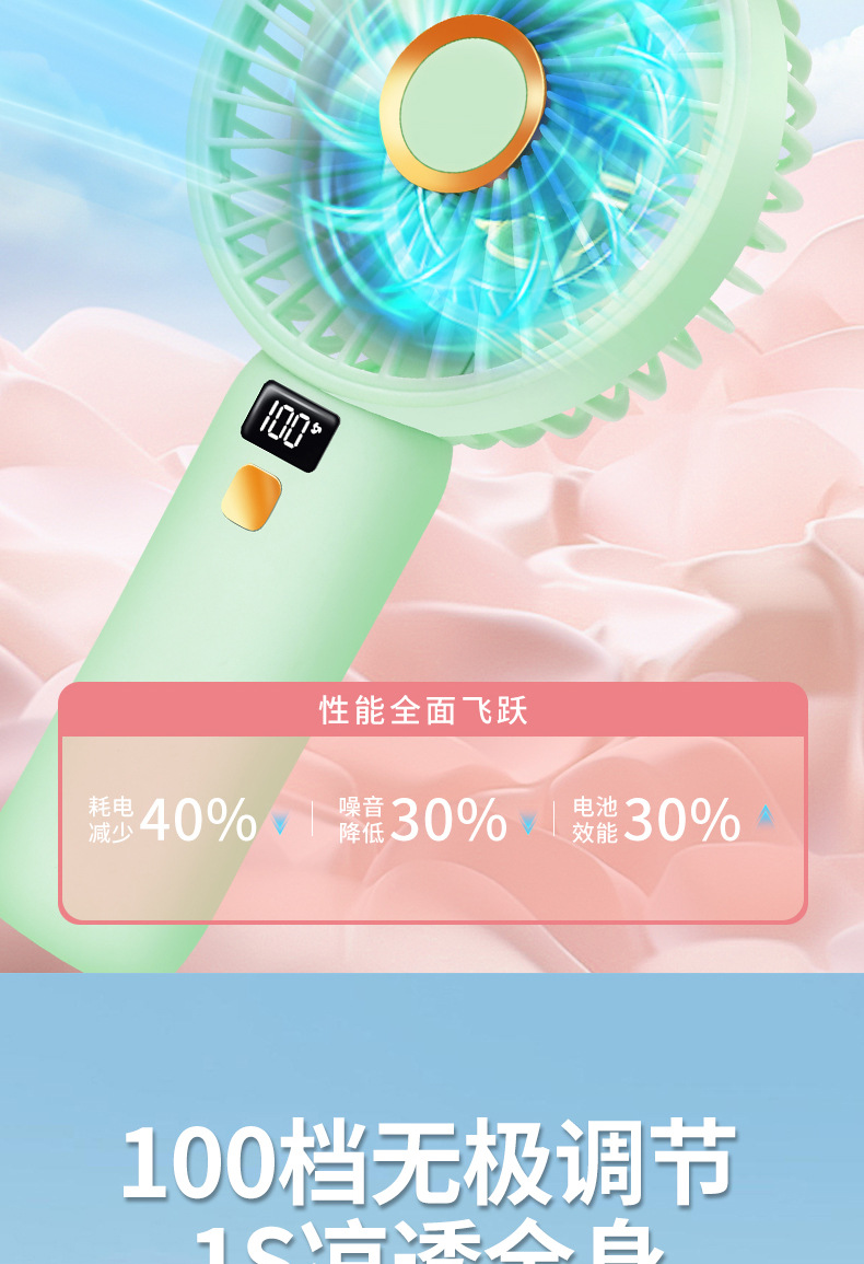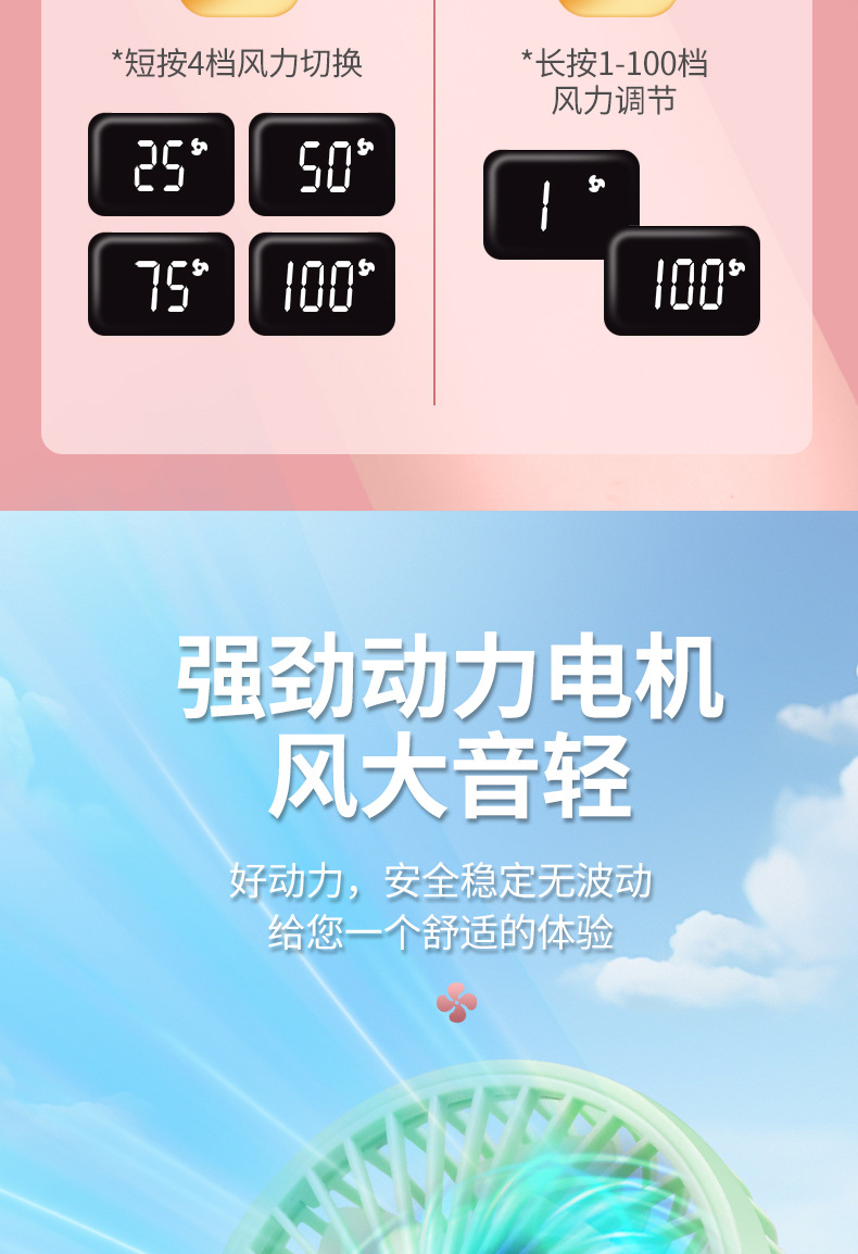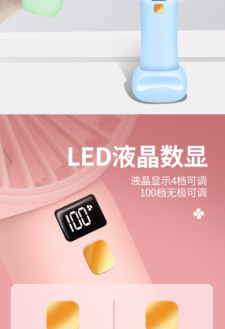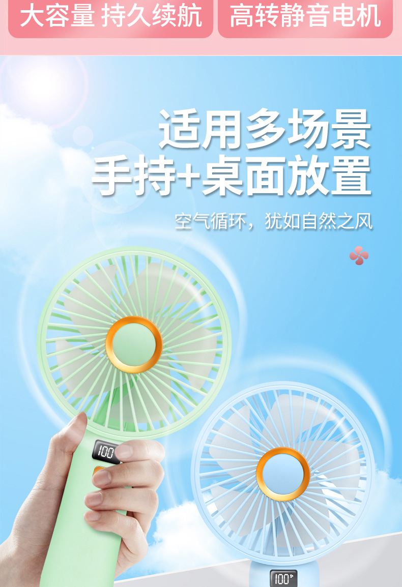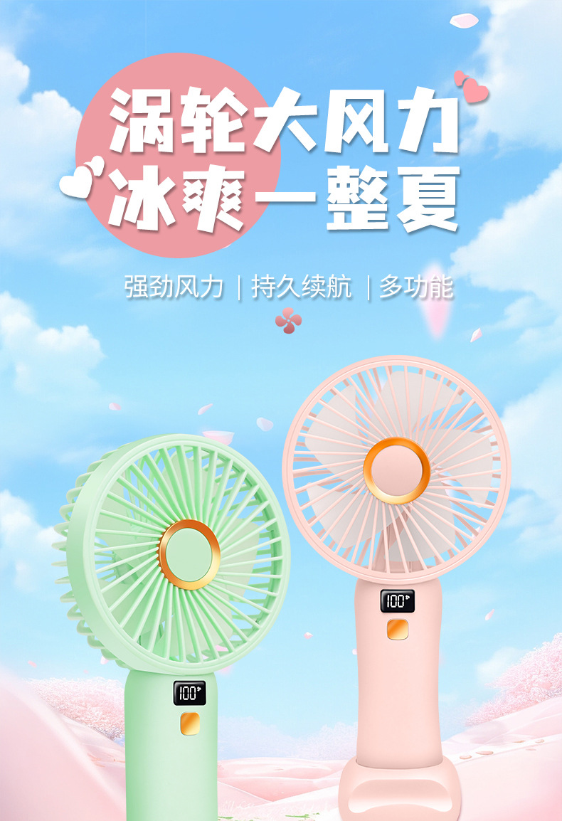 桌面数显usb充电手持小风扇迷你便携夏季学生大风力手机支架电扇