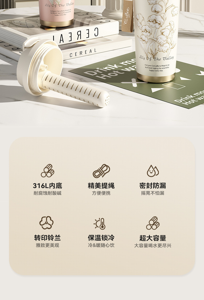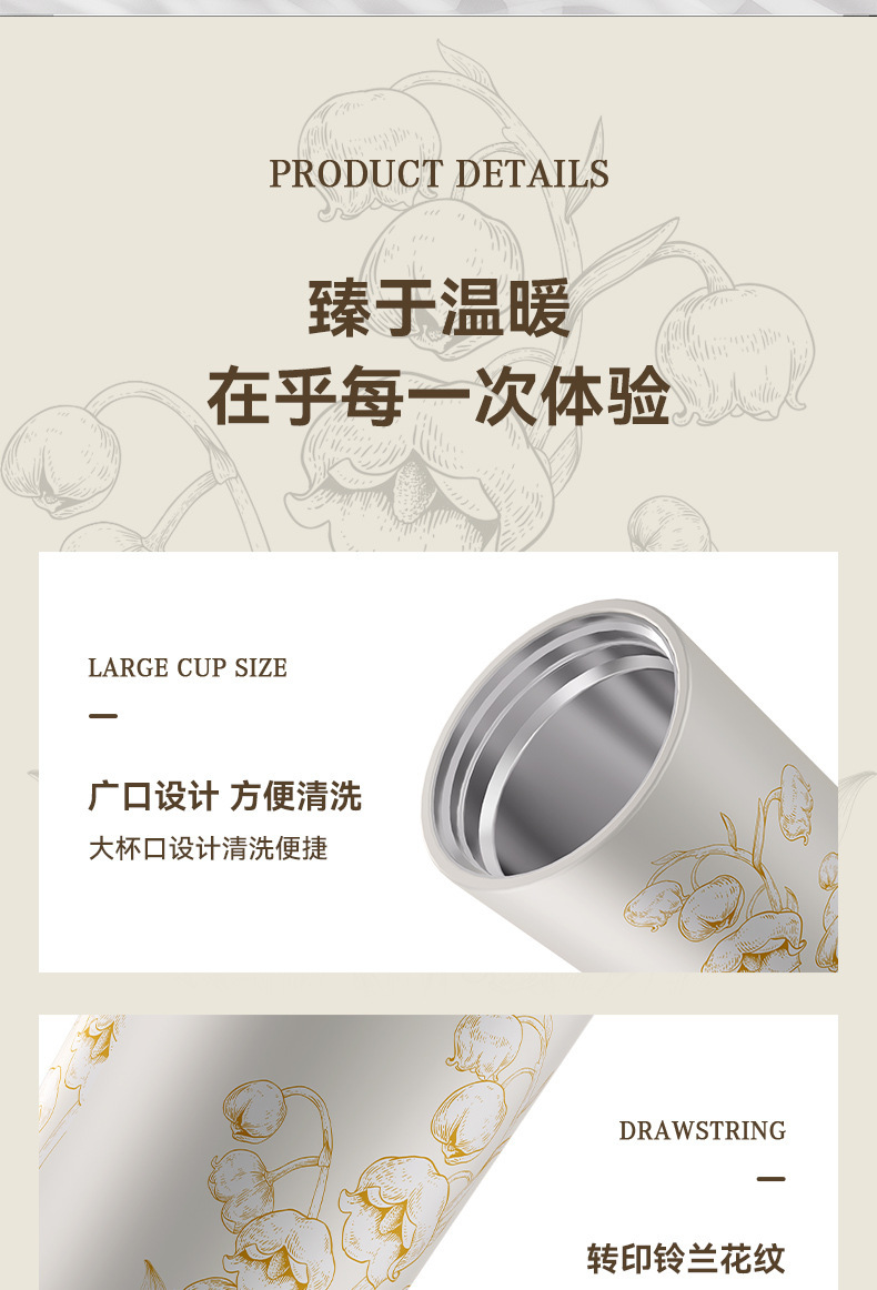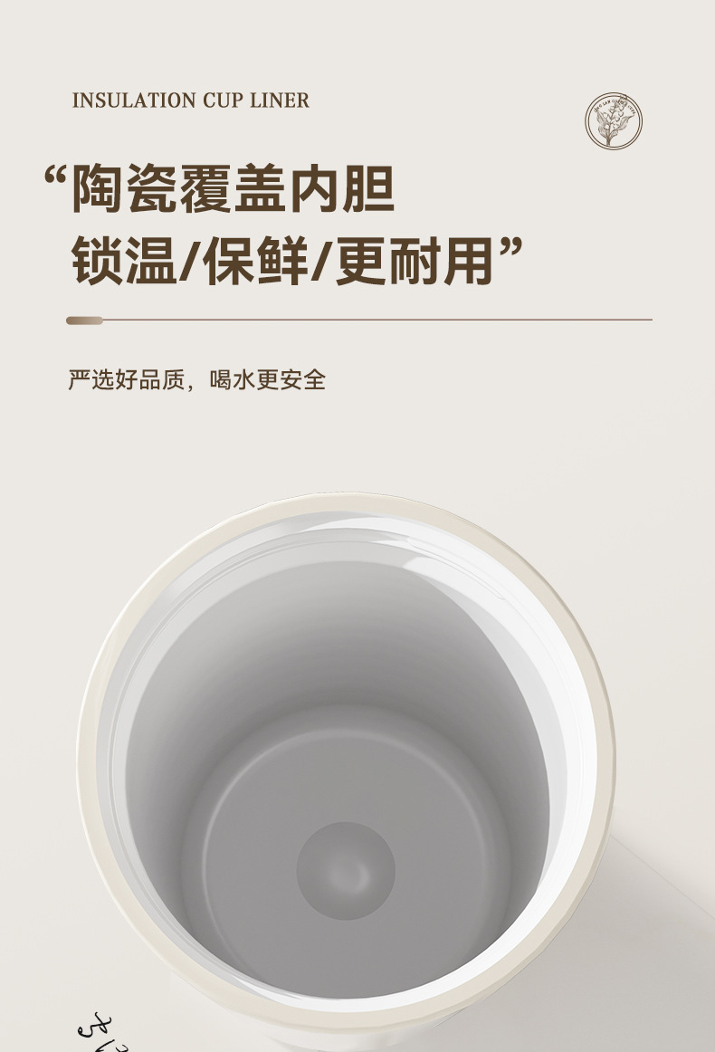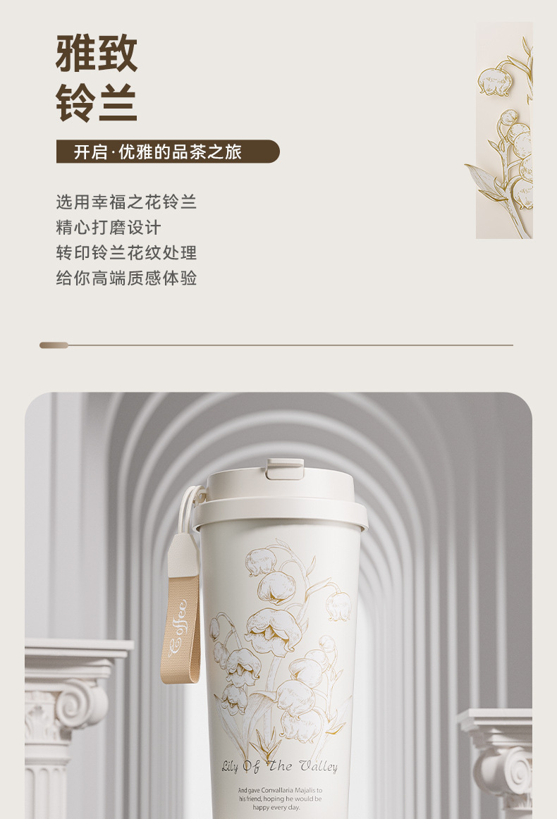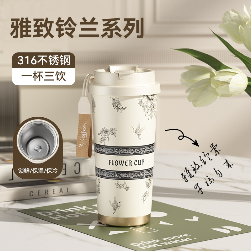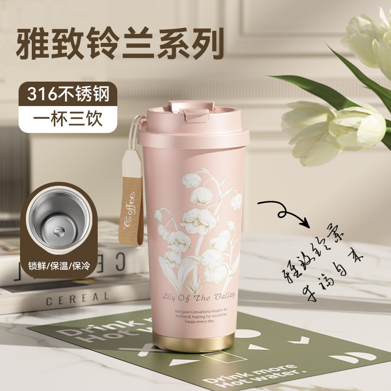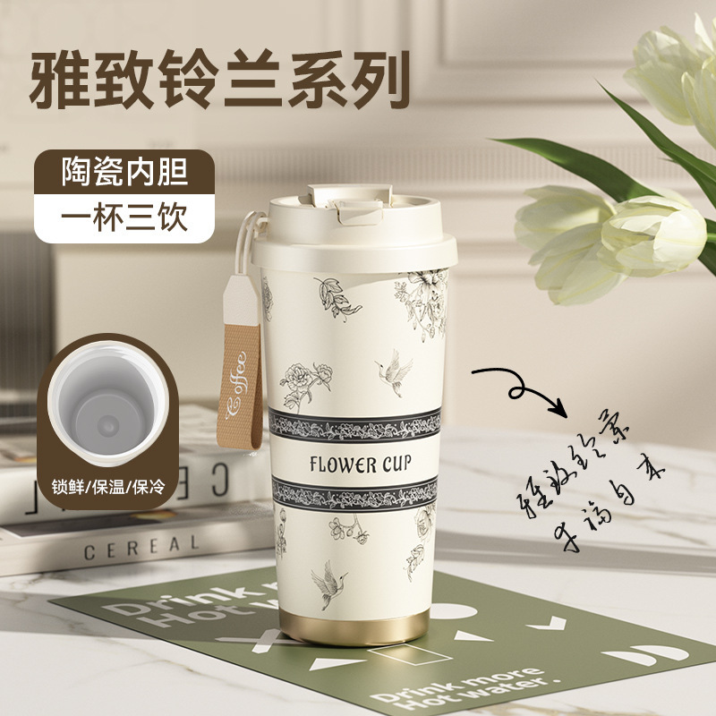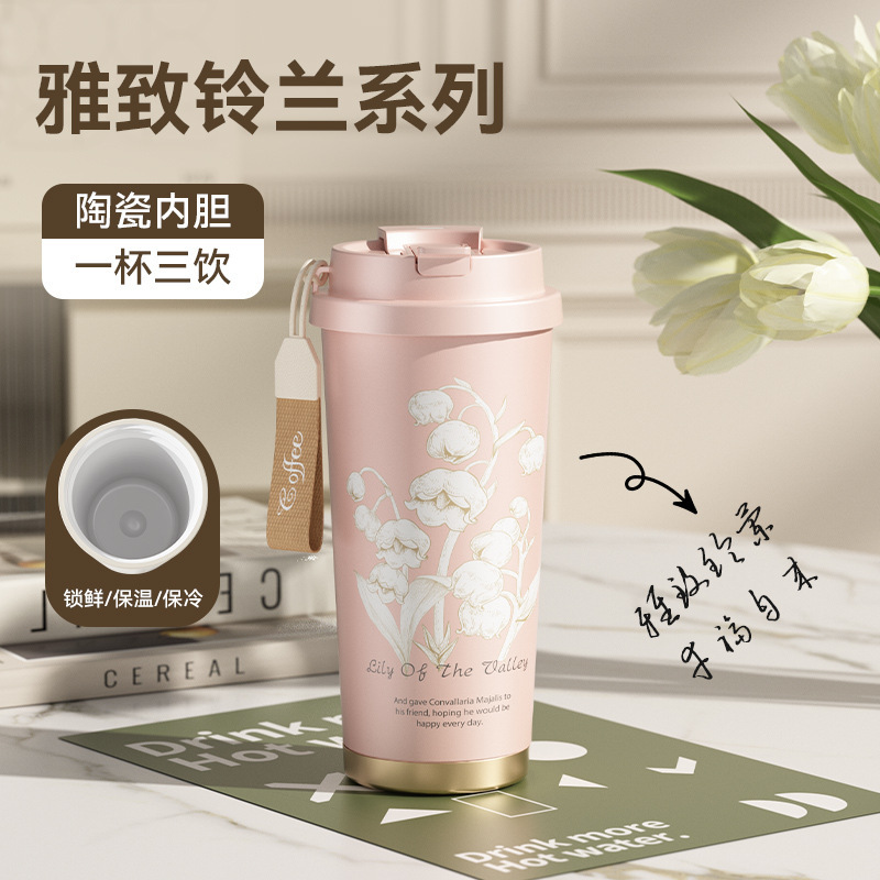 铃兰陶瓷内胆咖啡杯女生高颜值双饮水杯高档礼品316不锈钢保温杯