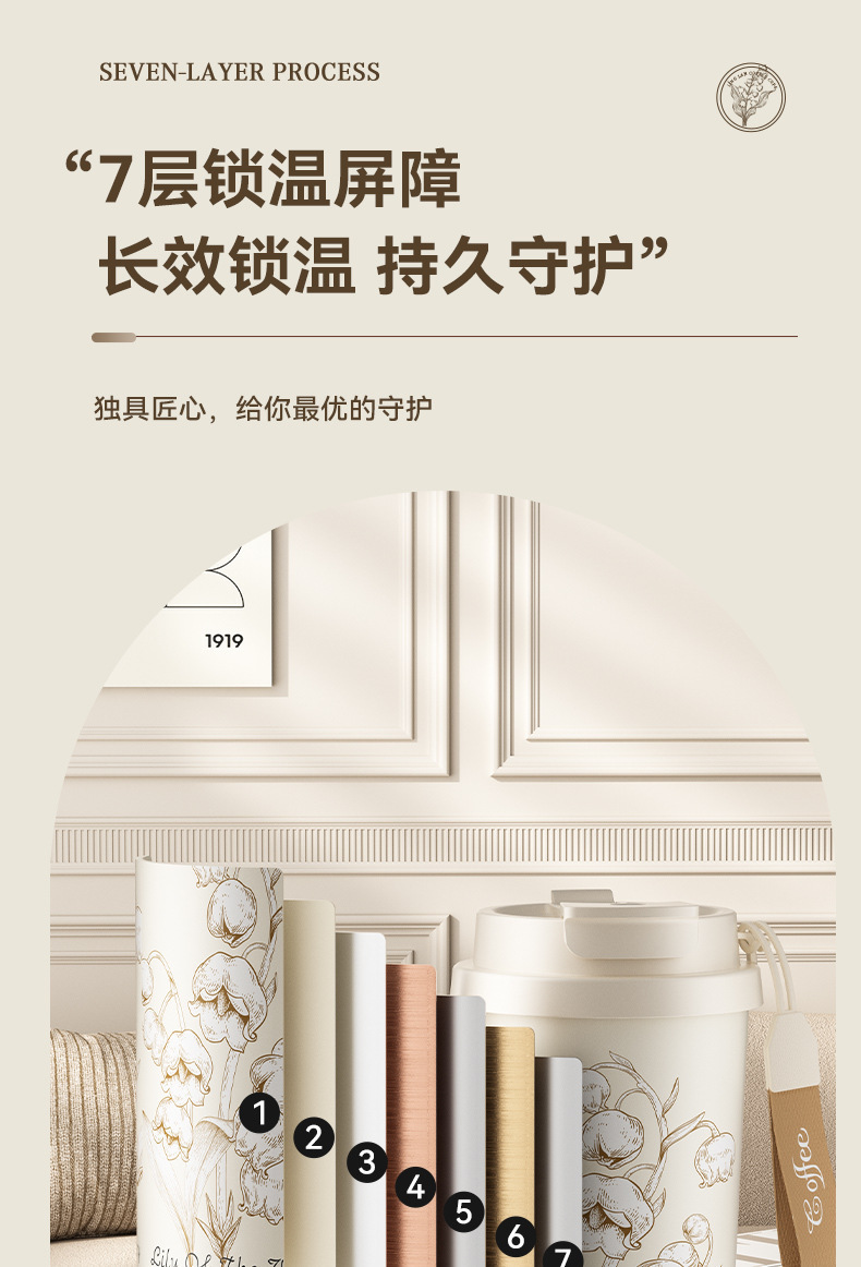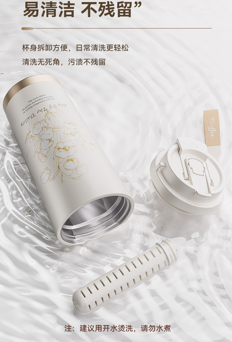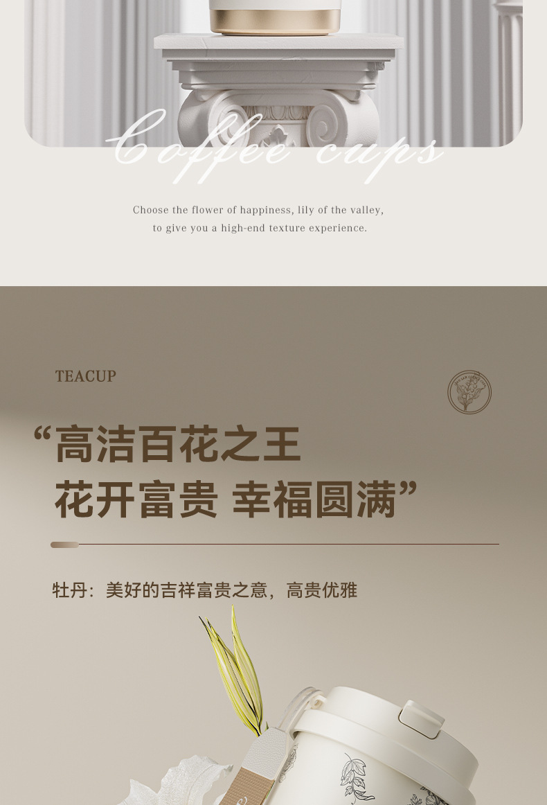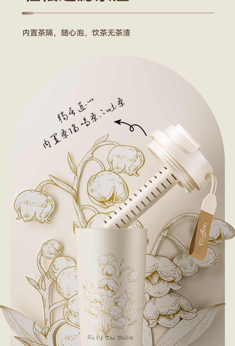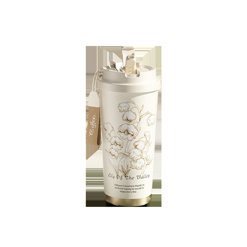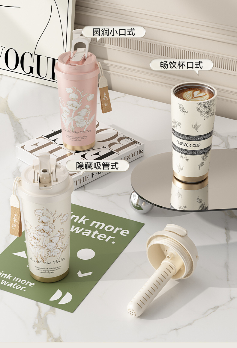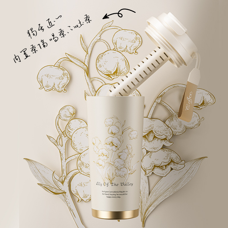 铃兰陶瓷内胆咖啡杯女生高颜值双饮水杯高档礼品316不锈钢保温杯
