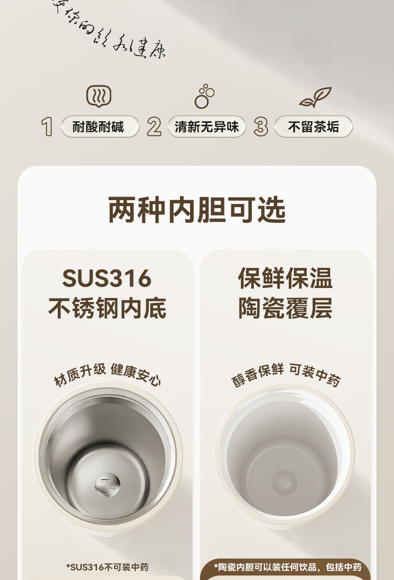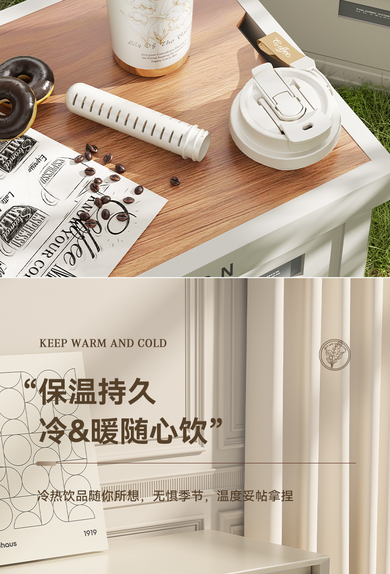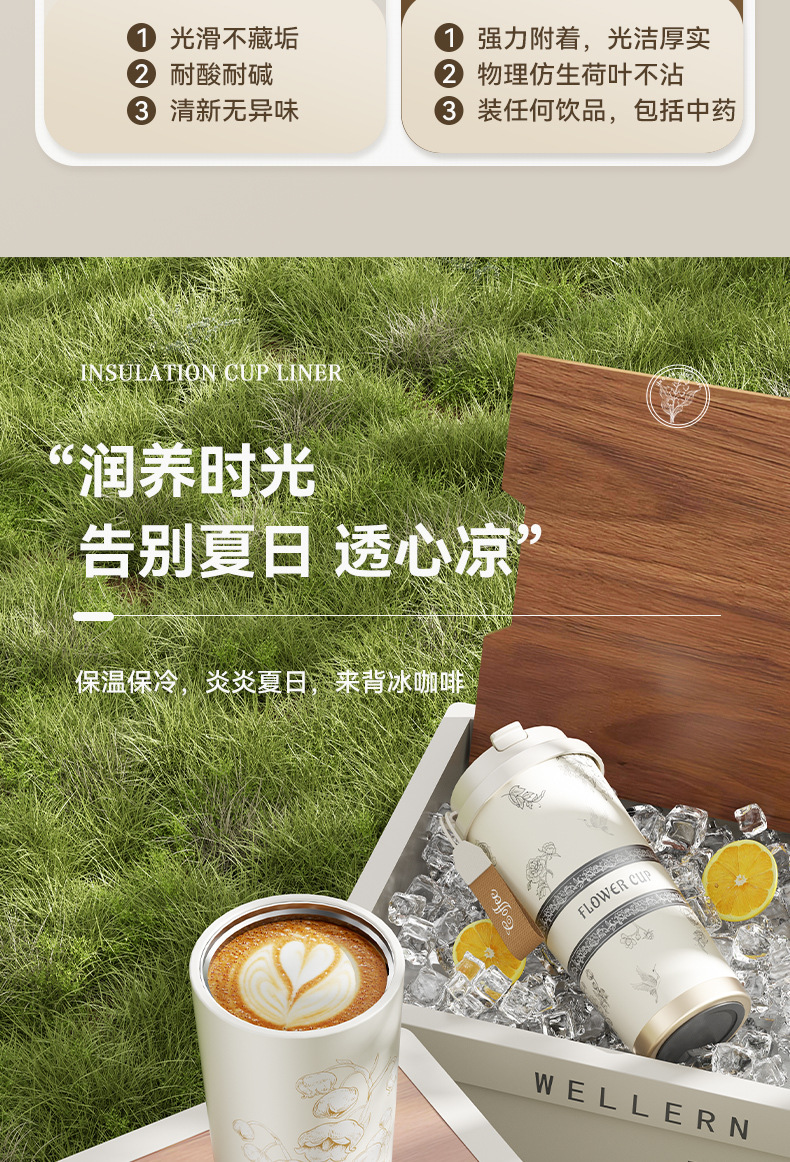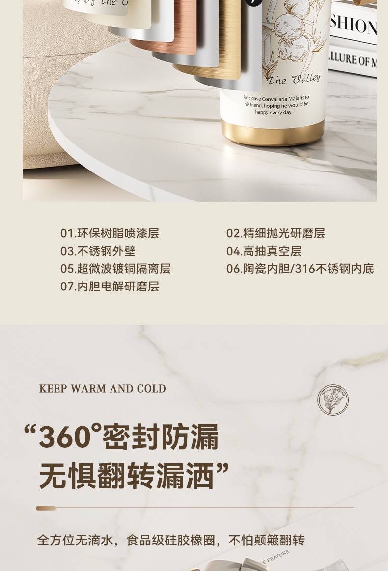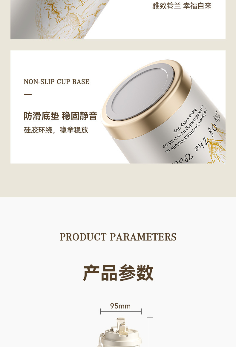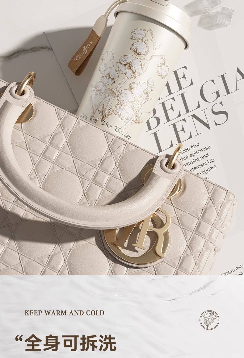 铃兰陶瓷内胆咖啡杯女生高颜值双饮水杯高档礼品316不锈钢保温杯