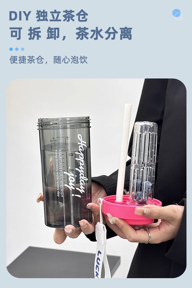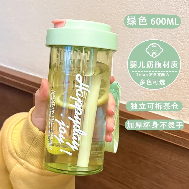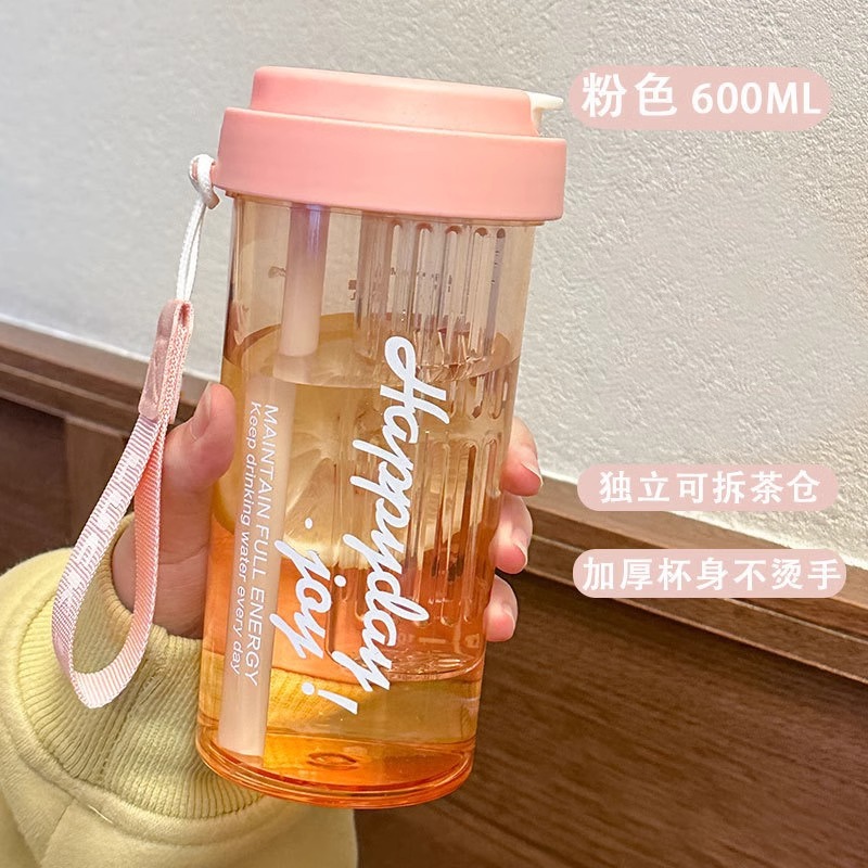 2024夏天水杯女生高颜值新款带茶隔吸管杯夏日耐高温网红泡茶杯子