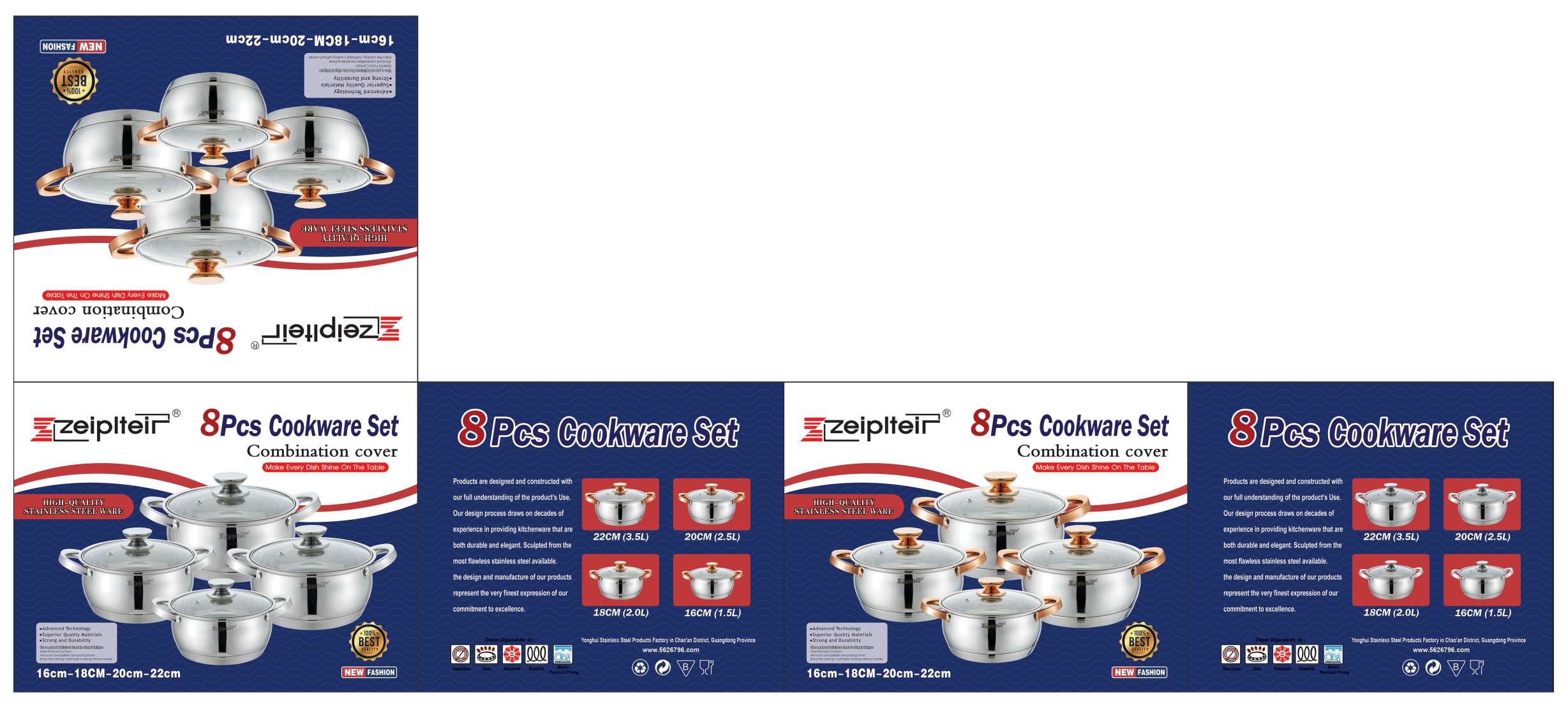 套锅Zeiplter不锈钢-8件套锅不锈钢锅具电磁炉煤气灶可用外贸热销