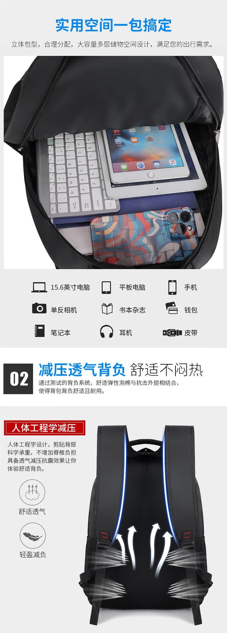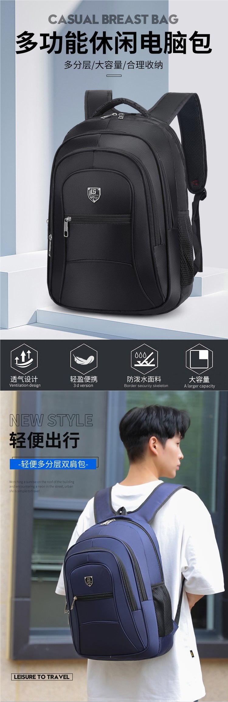 2025年新款跨境电商务双肩包男背包大容量旅行包背包电脑包书包