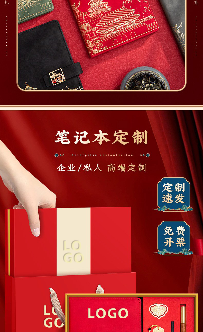 新款国潮笔记本礼品礼盒套装定制企业商务办公记事本高颜值笔记本