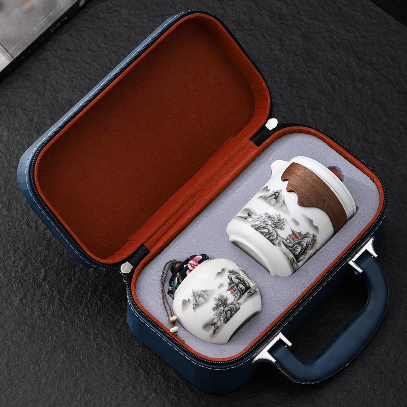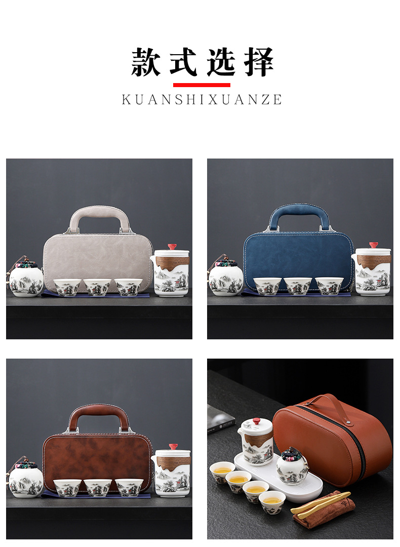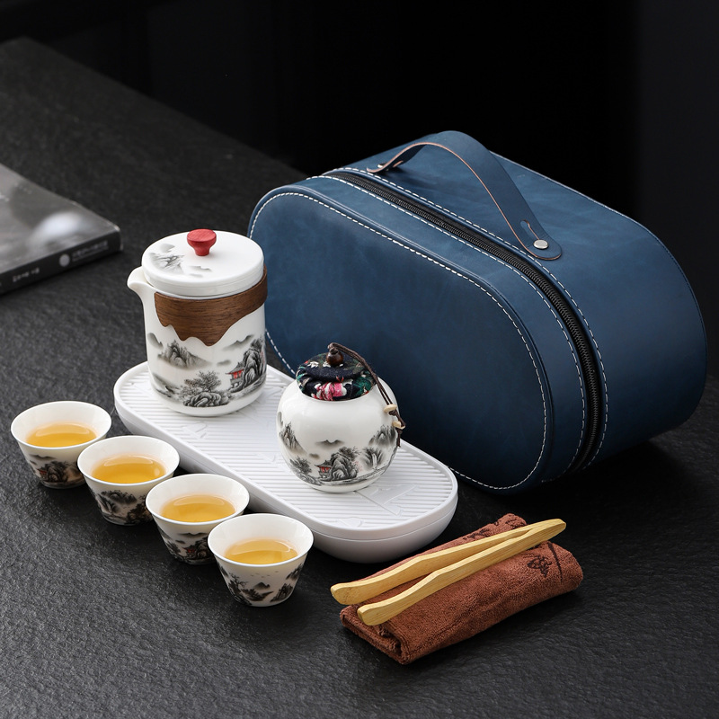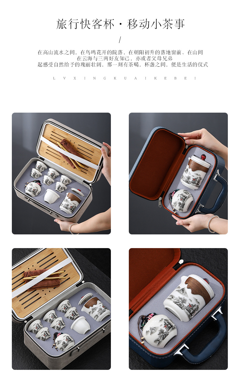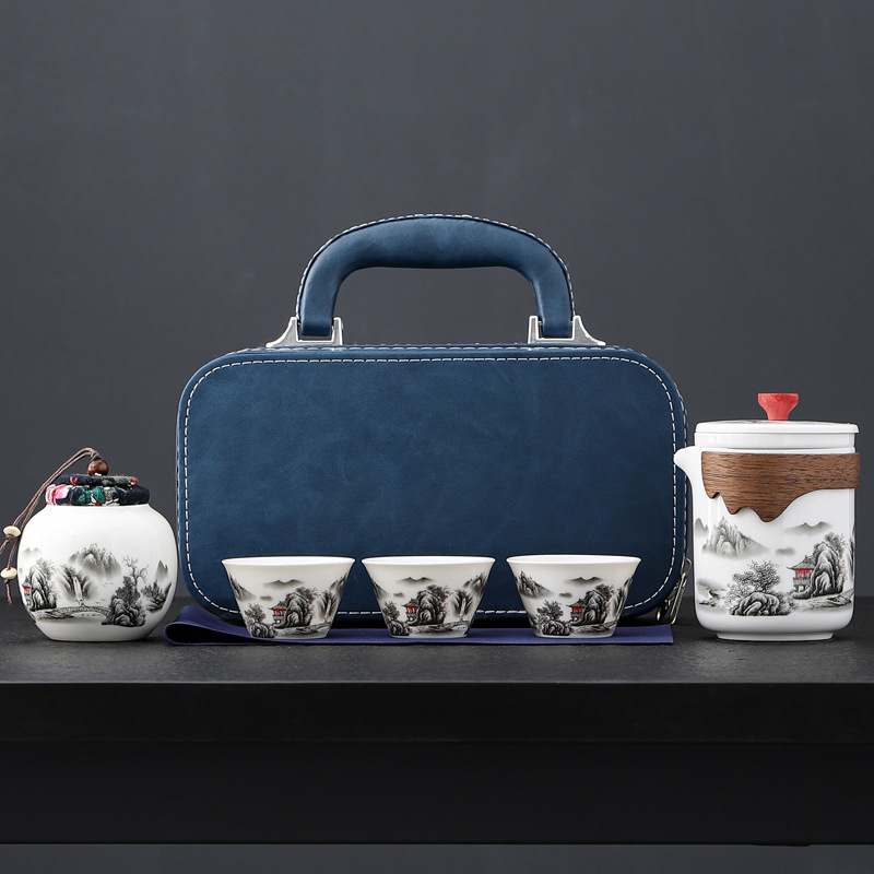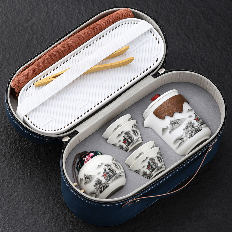 水墨千里江山快客一壶四杯便携旅行茶具套装公司伴手礼品可印logo