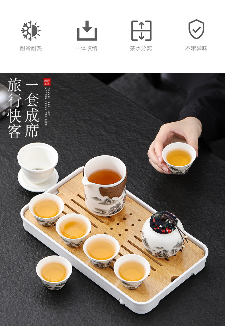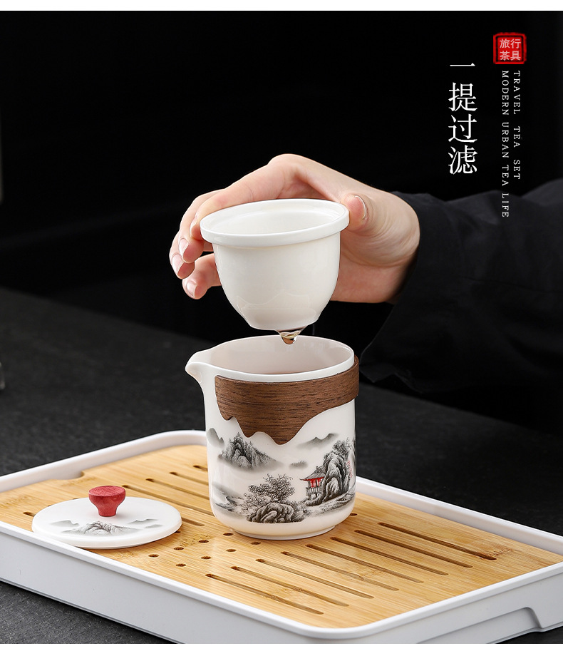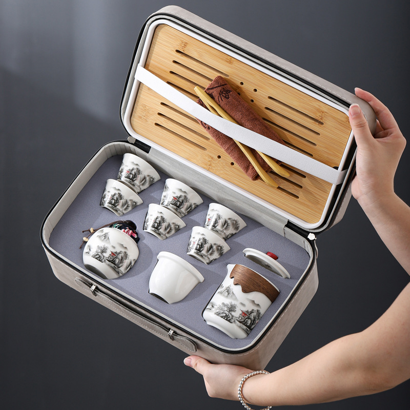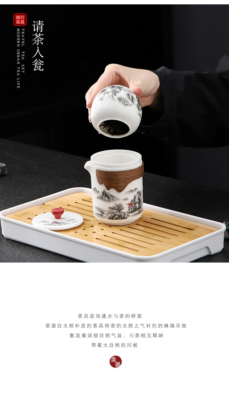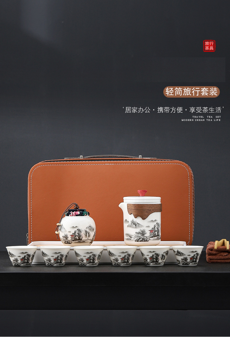 水墨千里江山快客一壶四杯便携旅行茶具套装公司伴手礼品可印logo