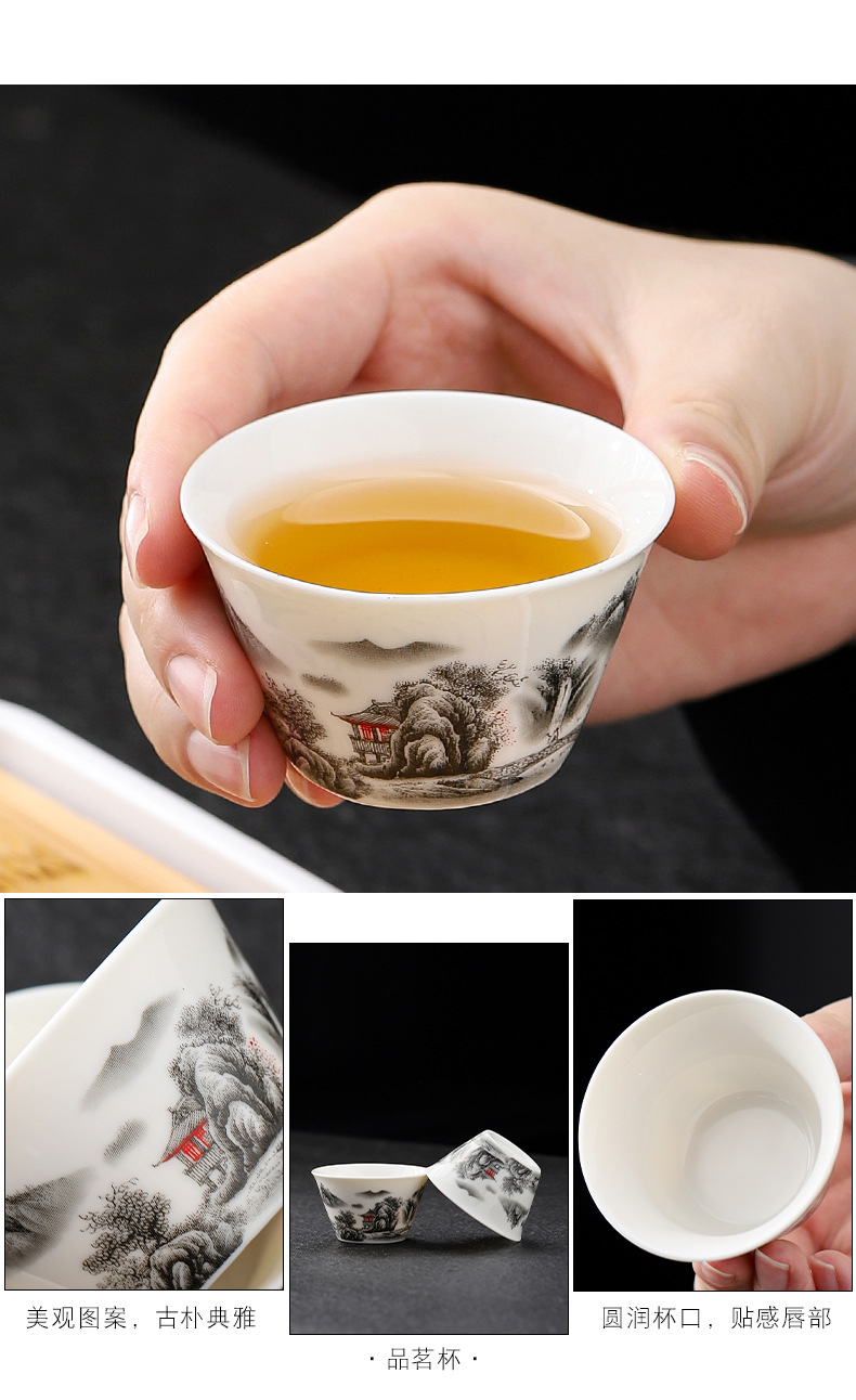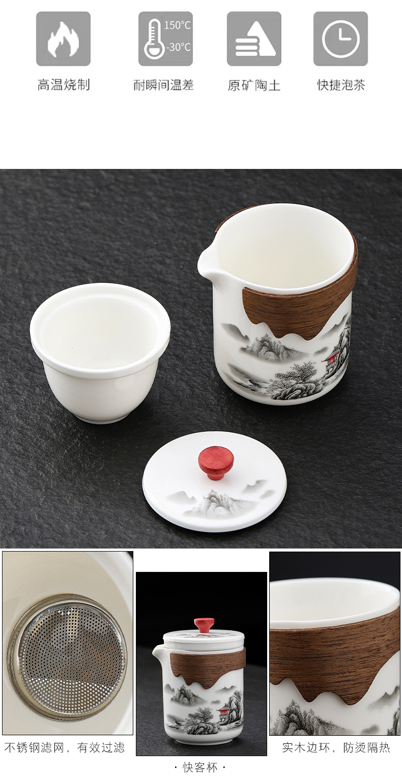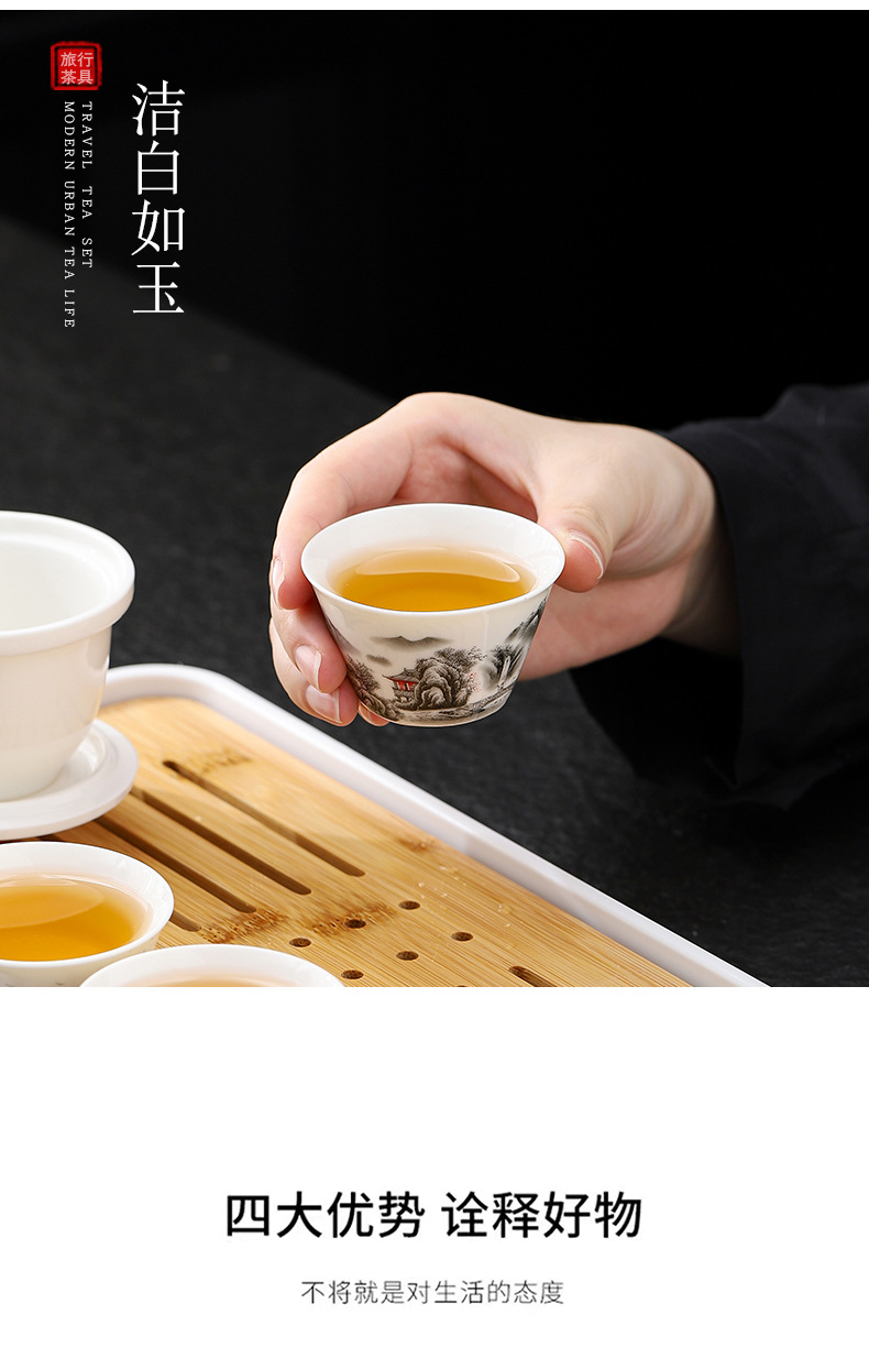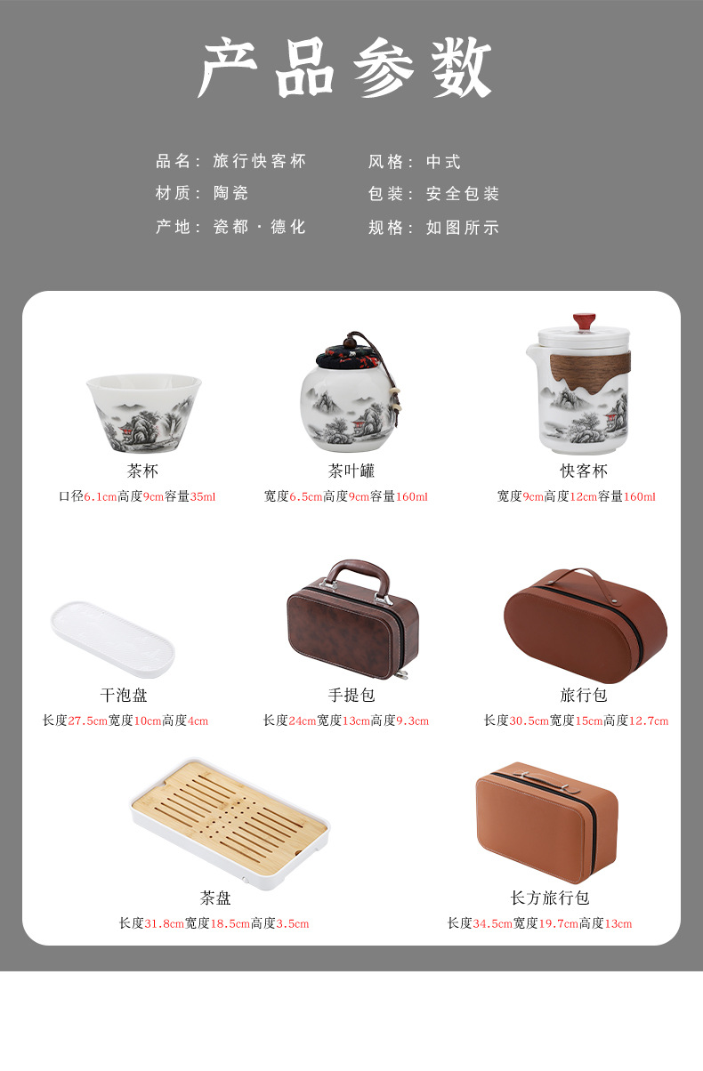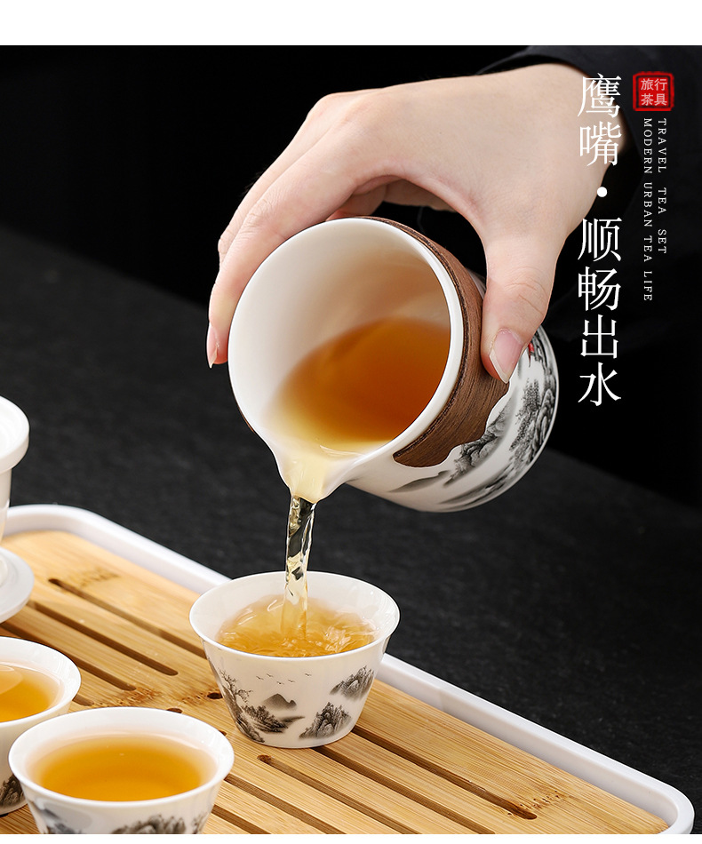水墨千里江山快客一壶四杯便携旅行茶具套装公司伴手礼品可印logo