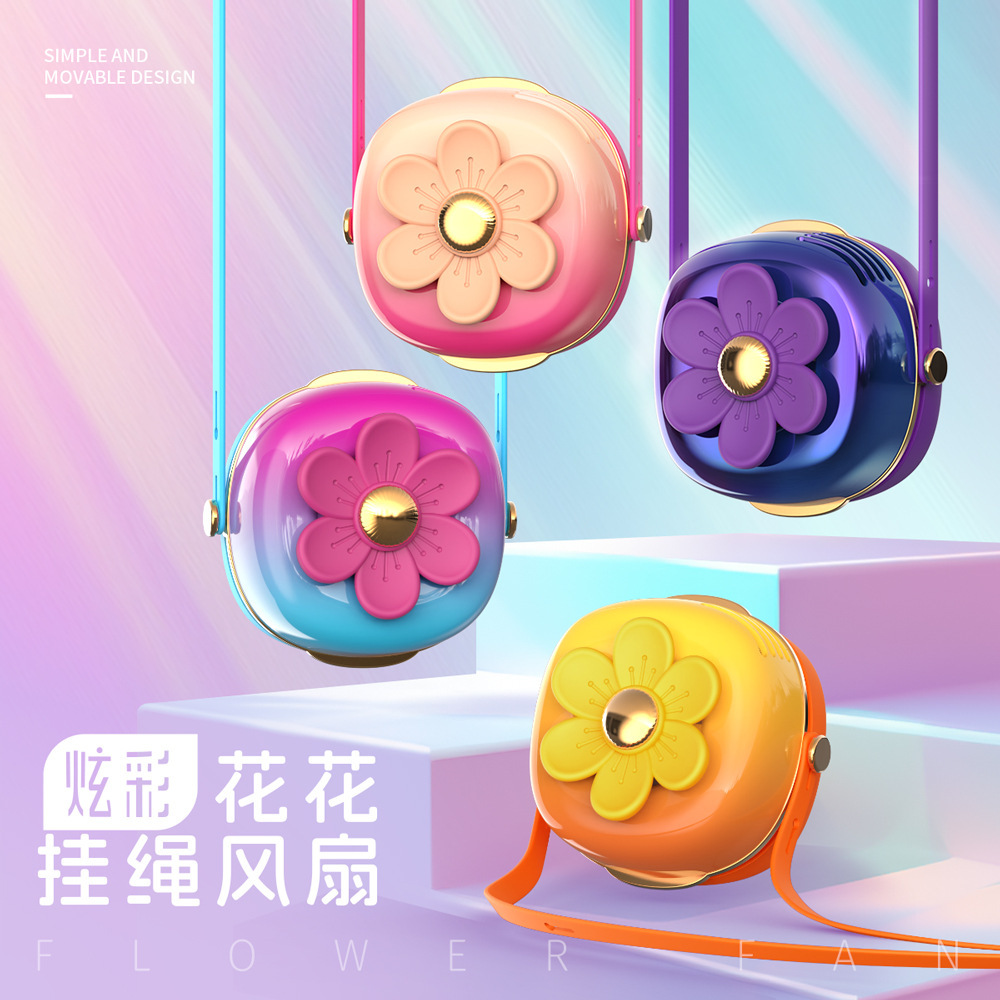 炫彩花朵挂脖无叶风扇usb充电户外懒人小风扇加logo制作儿童电扇