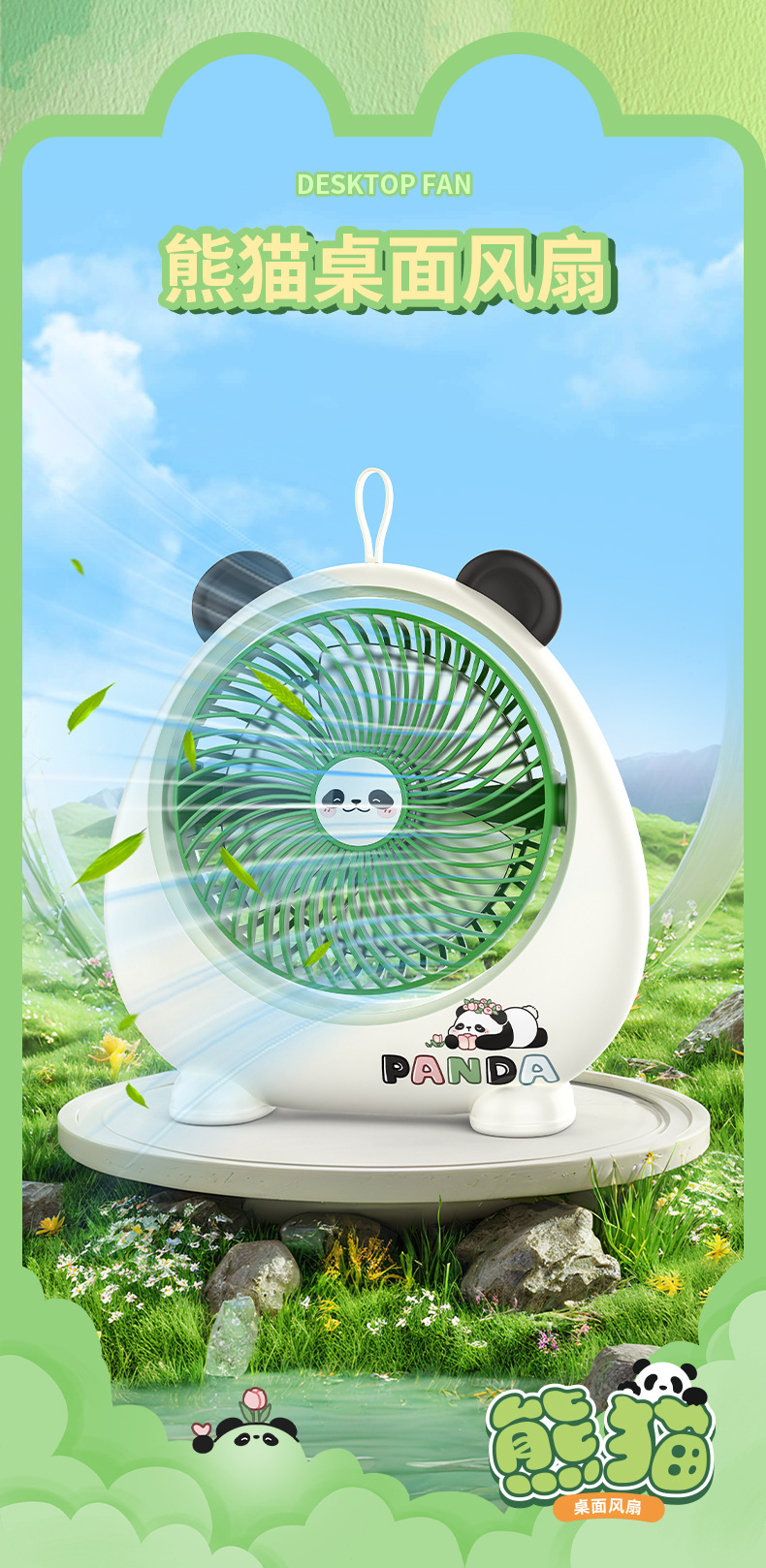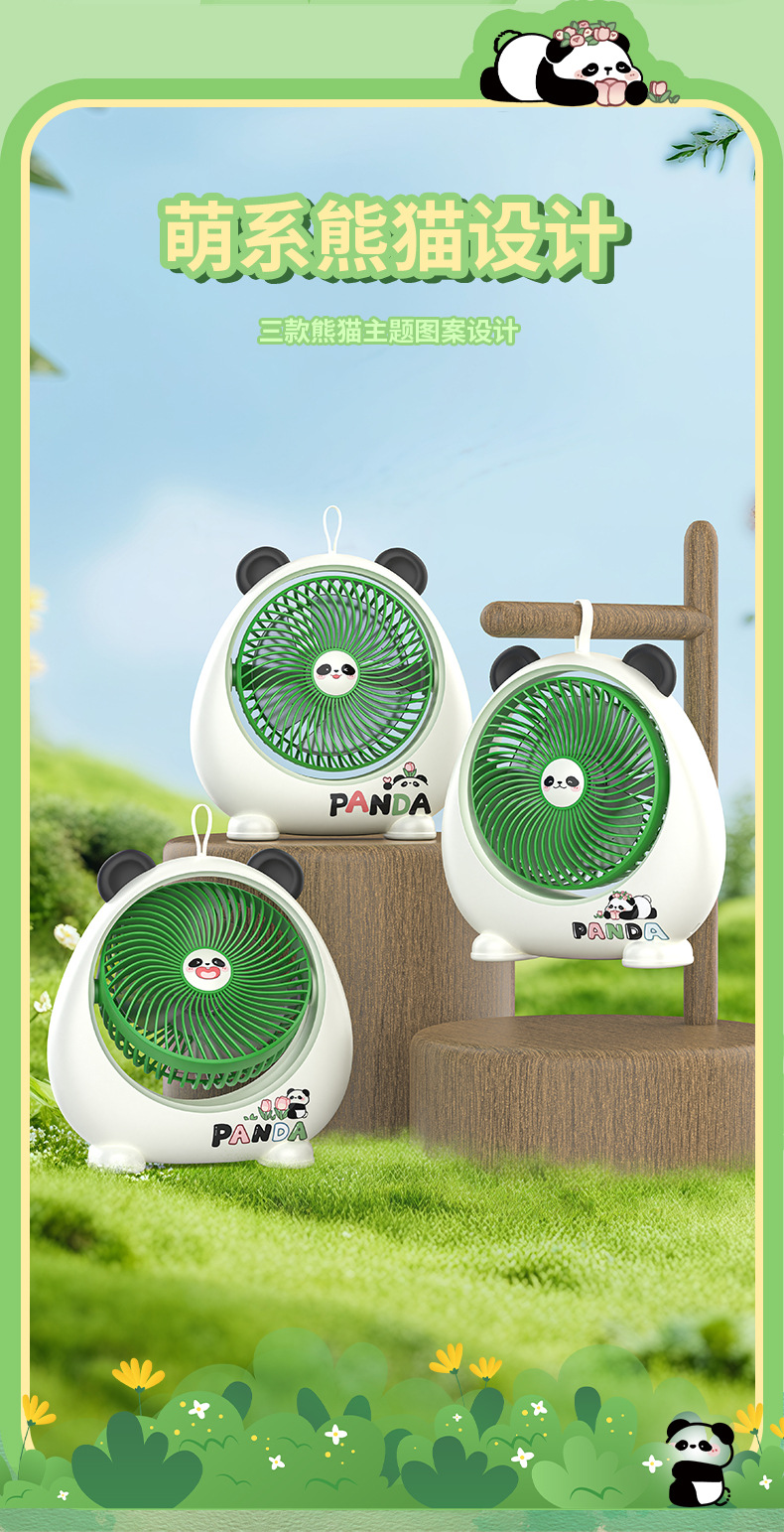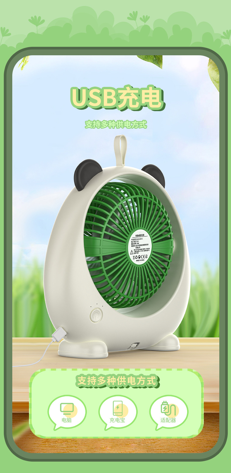 大号桌面熊猫风扇可爱台式电风扇便携式迷你USB充电手拿风扇厂家