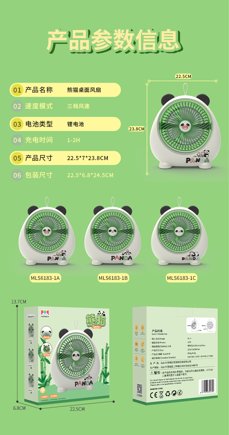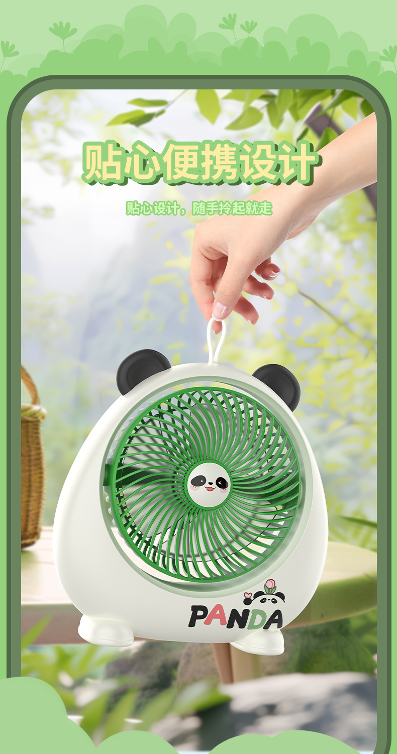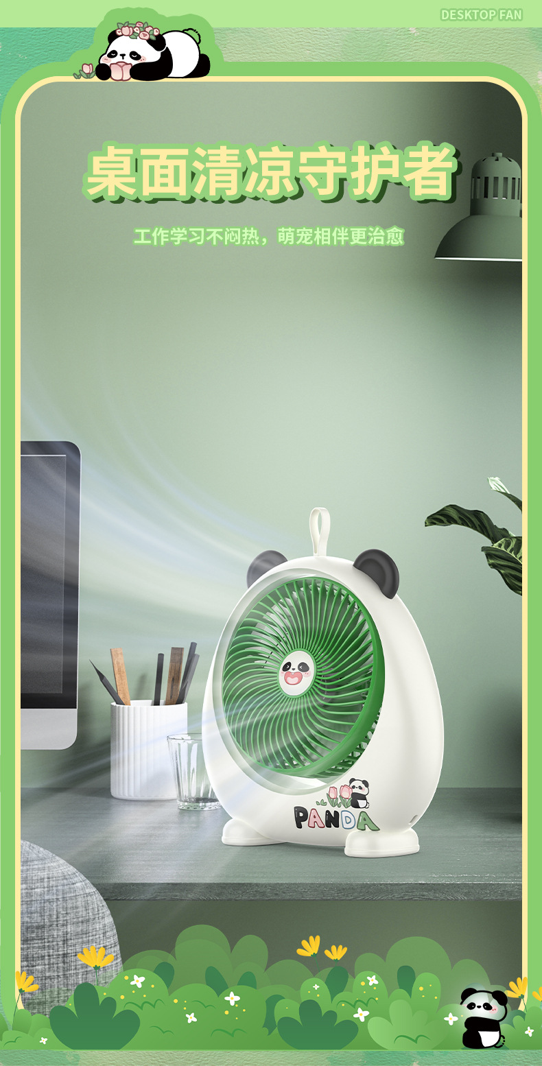 大号桌面熊猫风扇可爱台式电风扇便携式迷你USB充电手拿风扇厂家