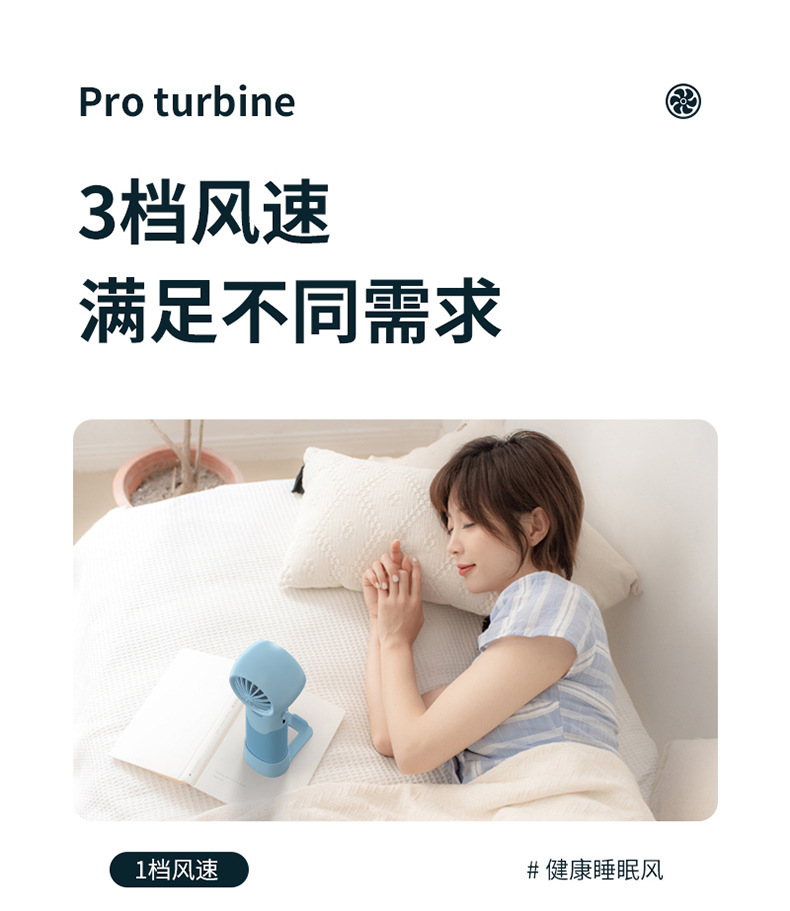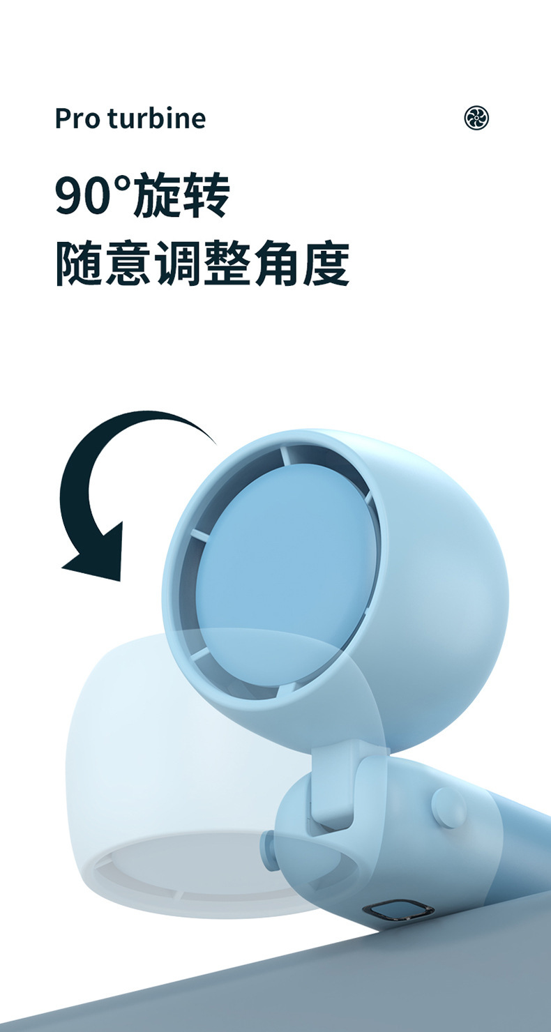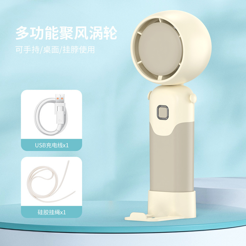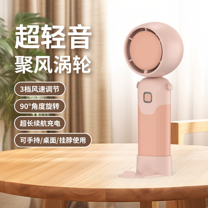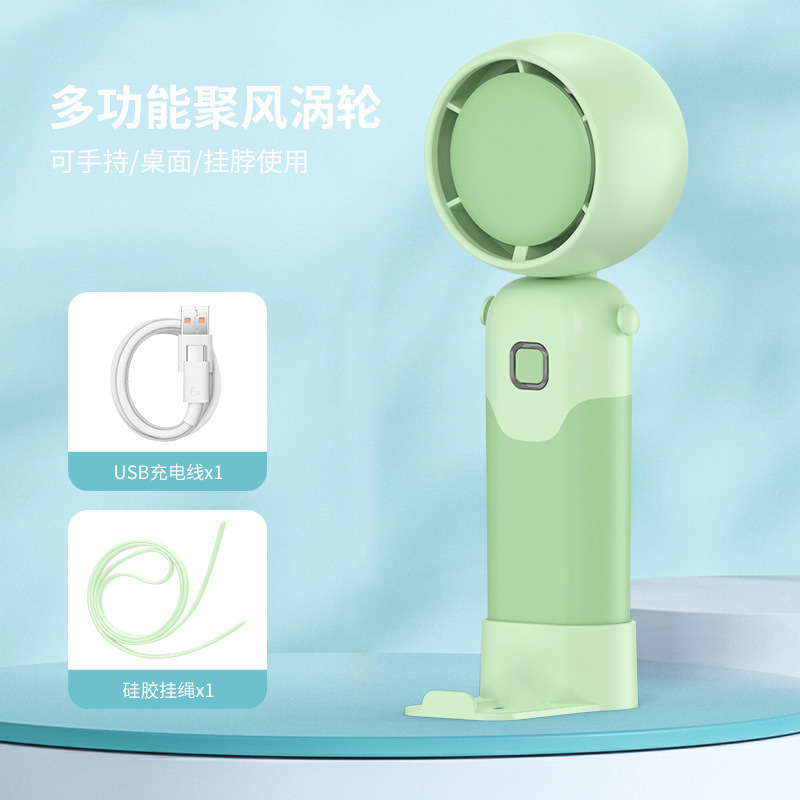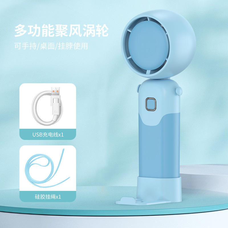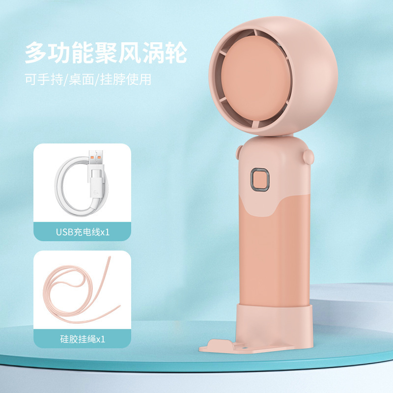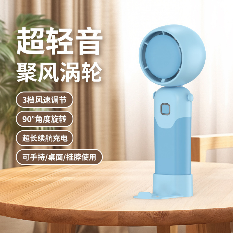 迷你手持折叠聚风涡轮小风扇USB充电内置锂电桌面挂脖三用电风扇