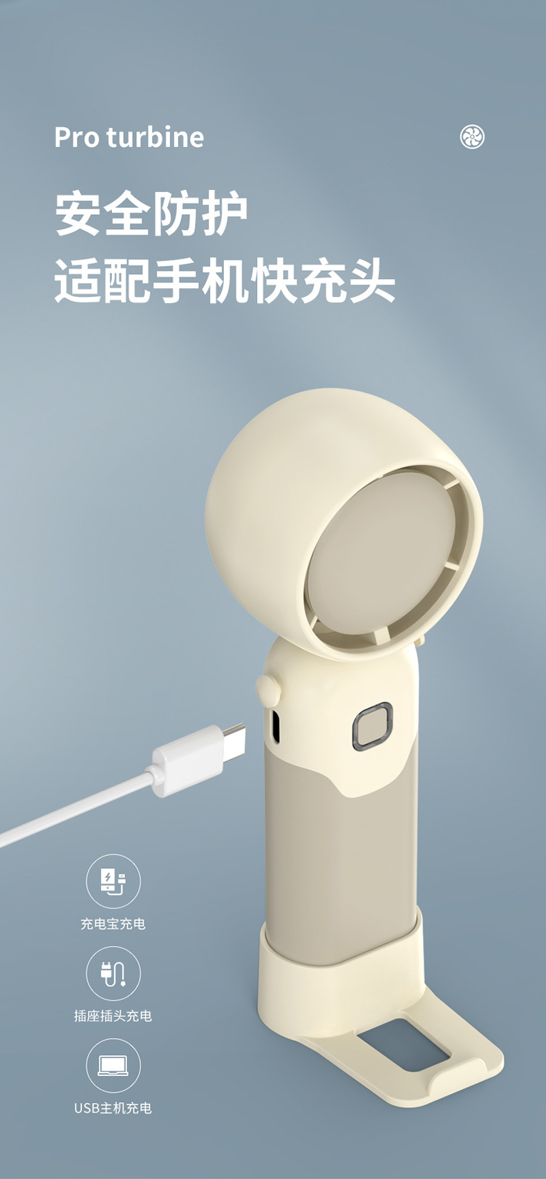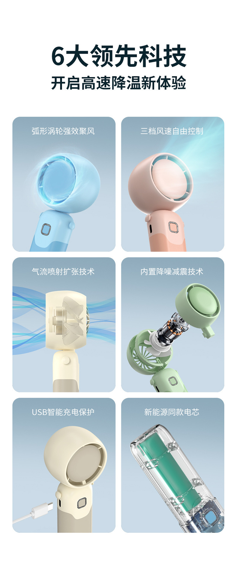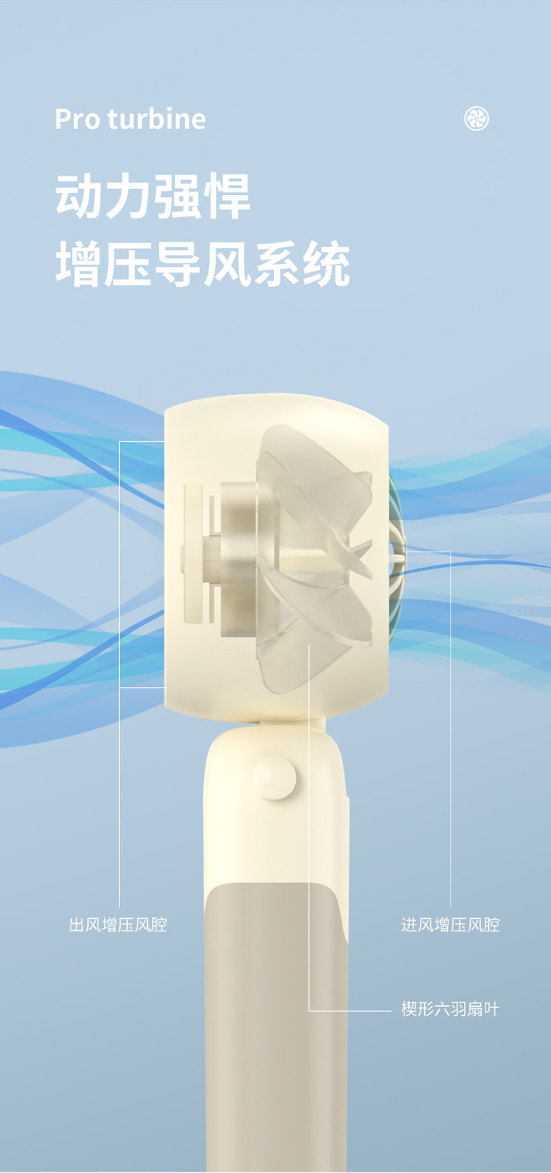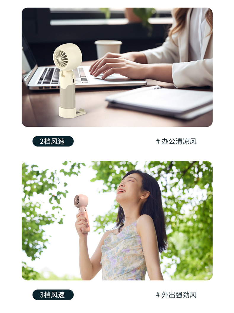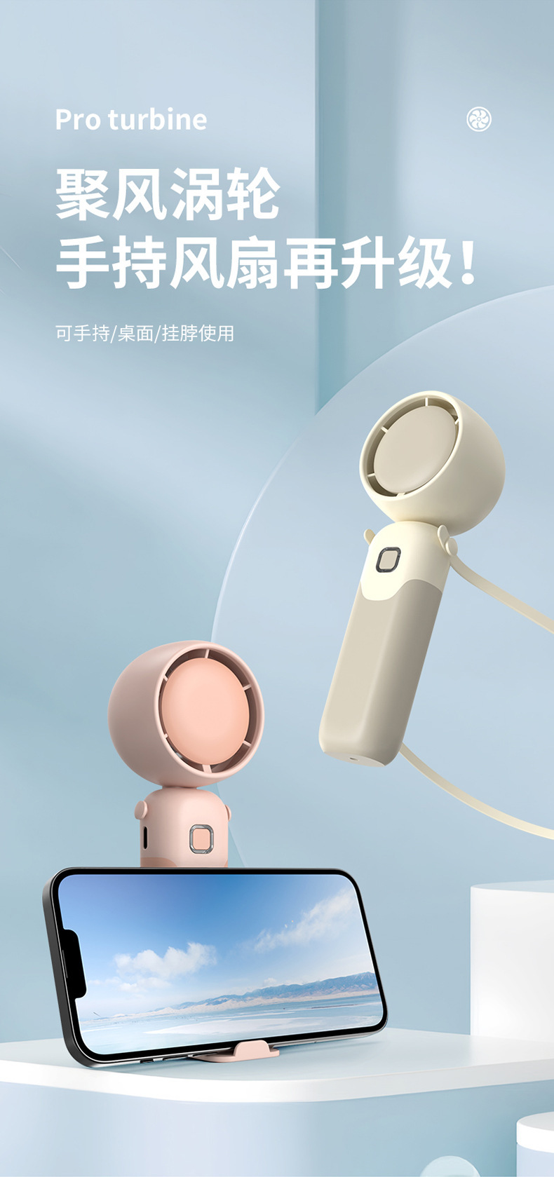 迷你手持折叠聚风涡轮小风扇USB充电内置锂电桌面挂脖三用电风扇