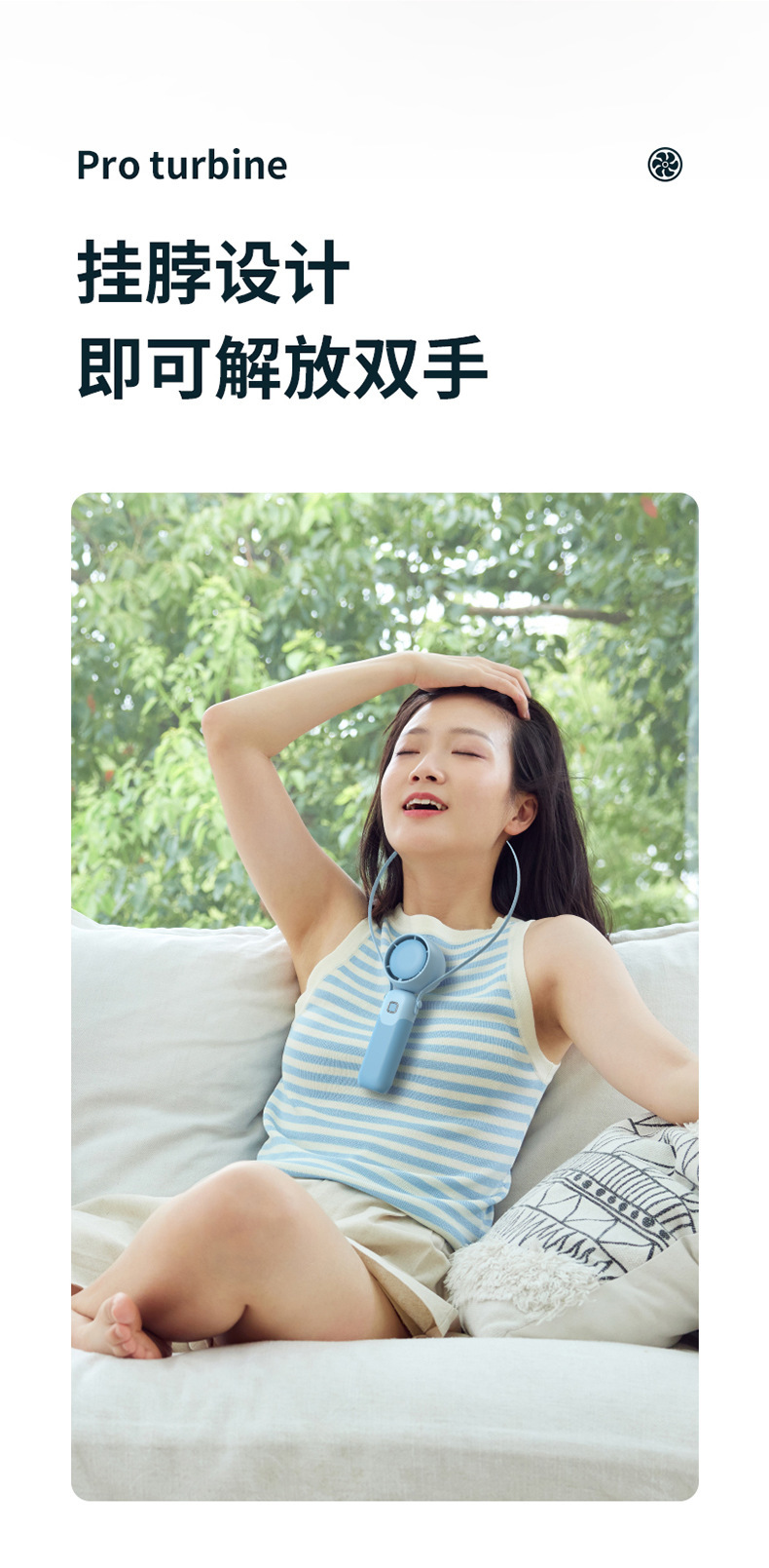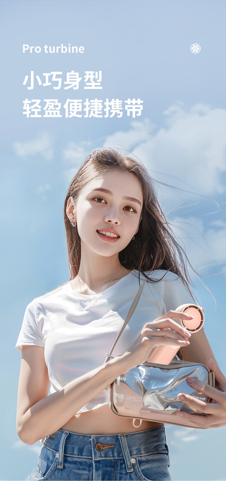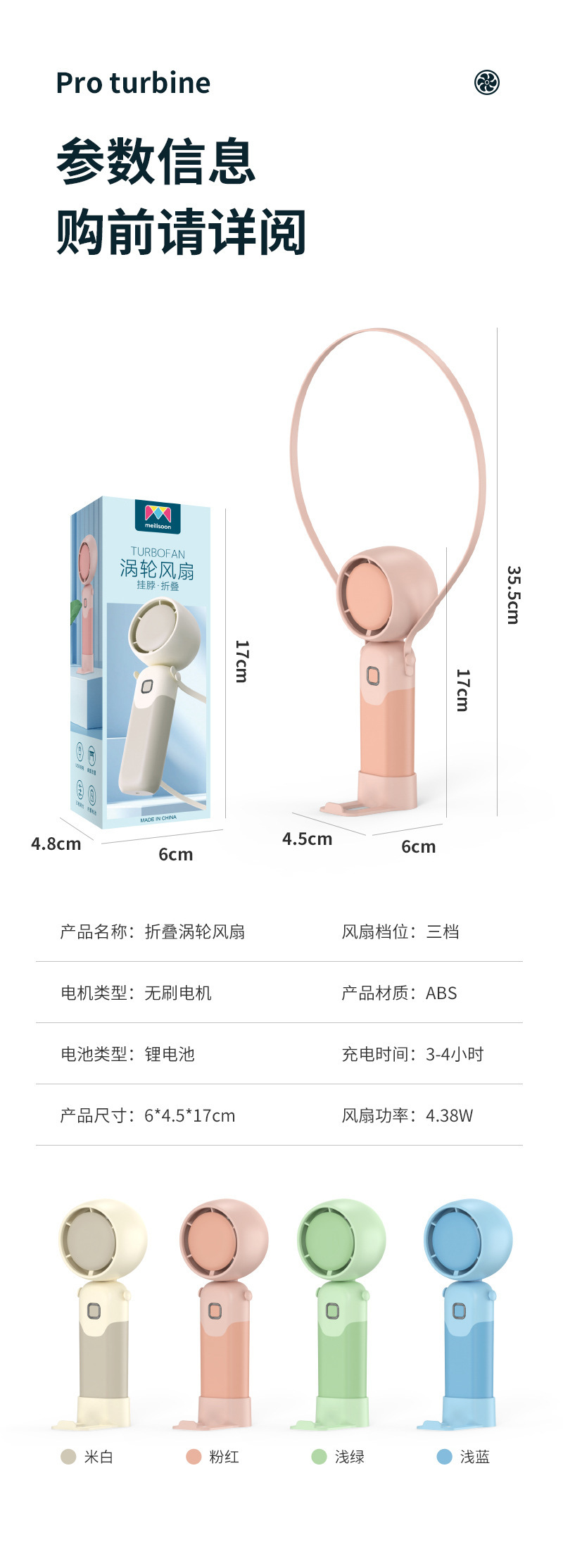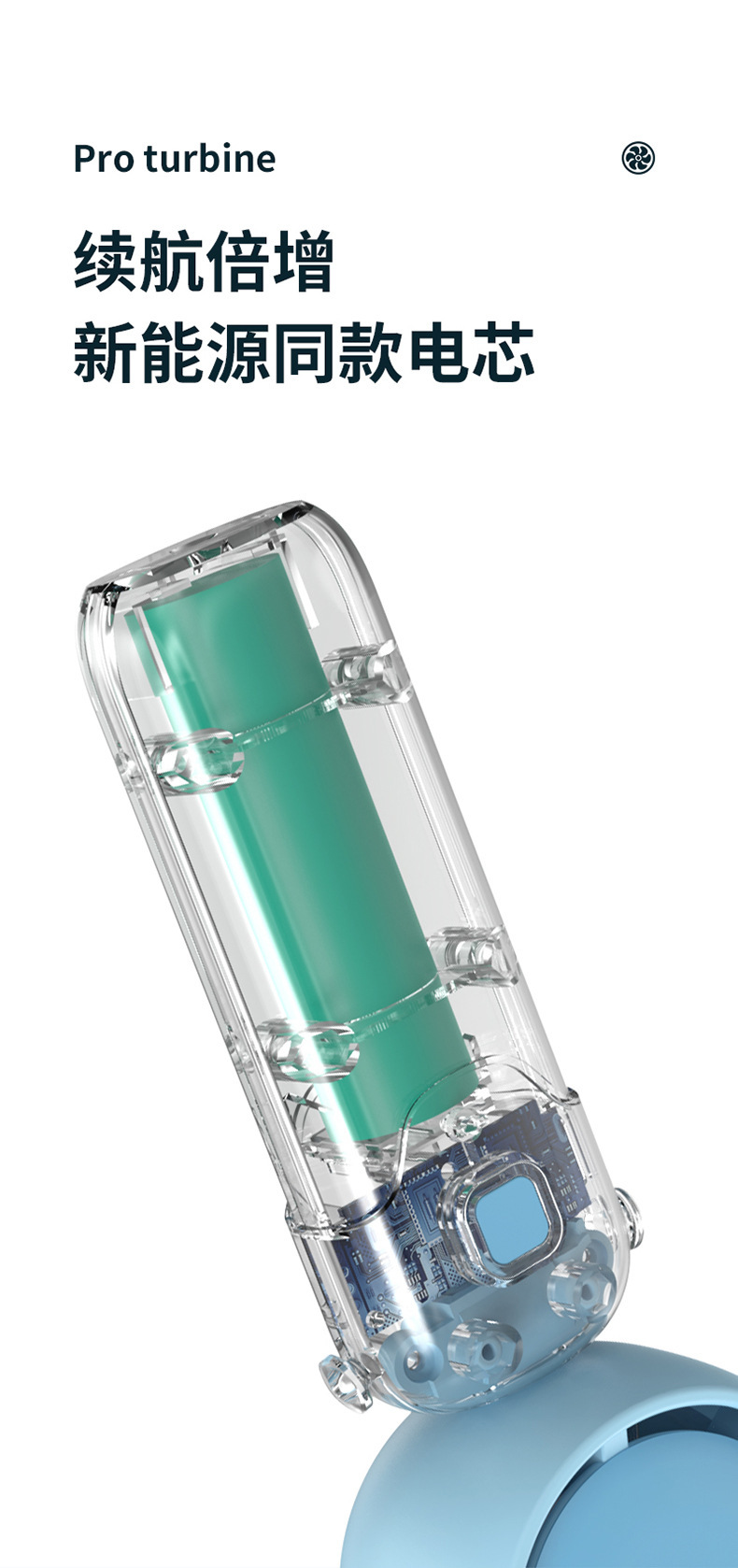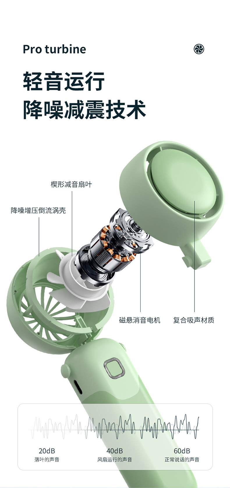 迷你手持折叠聚风涡轮小风扇USB充电内置锂电桌面挂脖三用电风扇