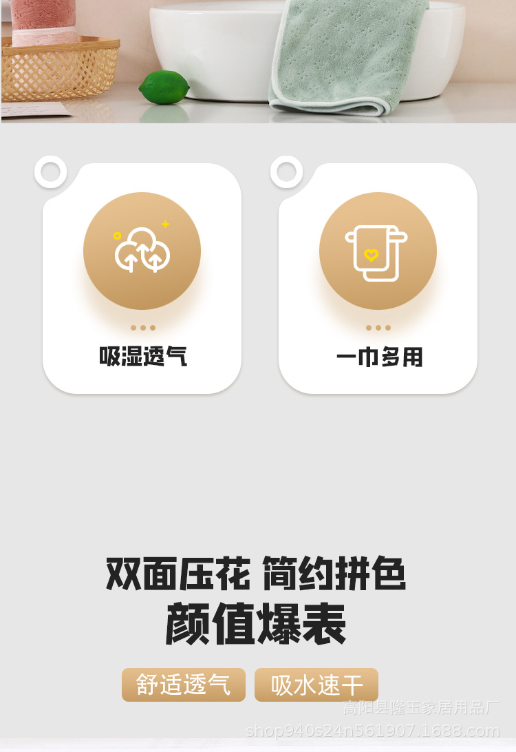 玉颜毛巾珊瑚绒浴巾加厚吸水擦头巾成人洗脸巾非纯棉情侣毛巾批发