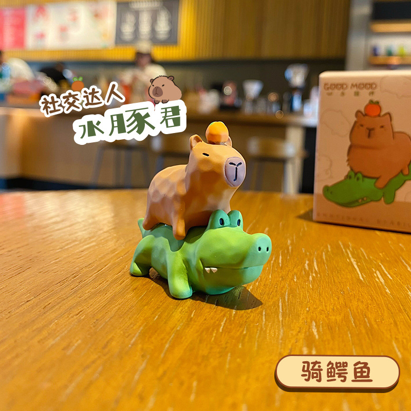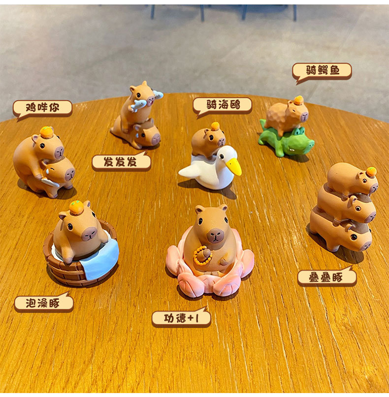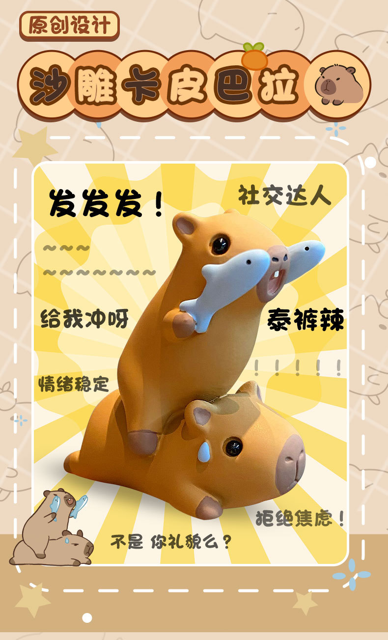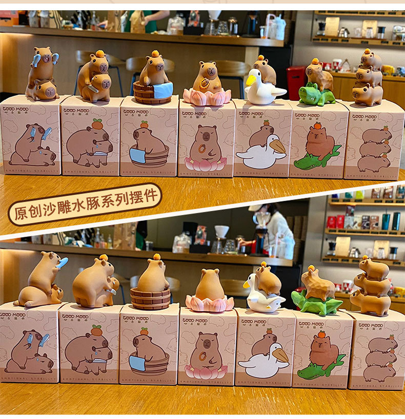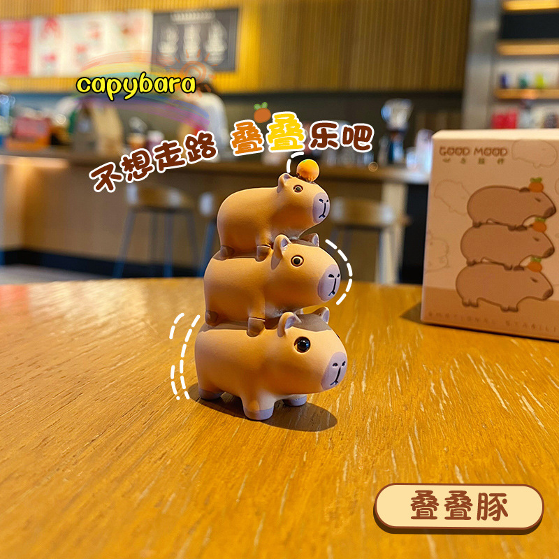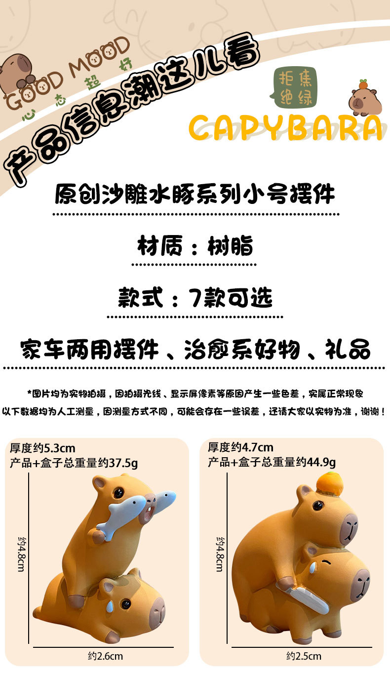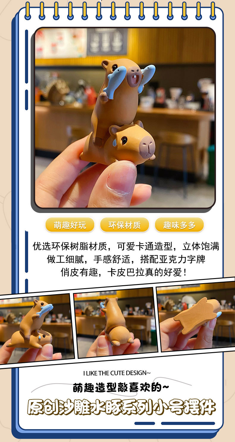 原创佛系水豚可爱时尚创意摆件精致树脂水豚公仔桌面汽车装饰摆件