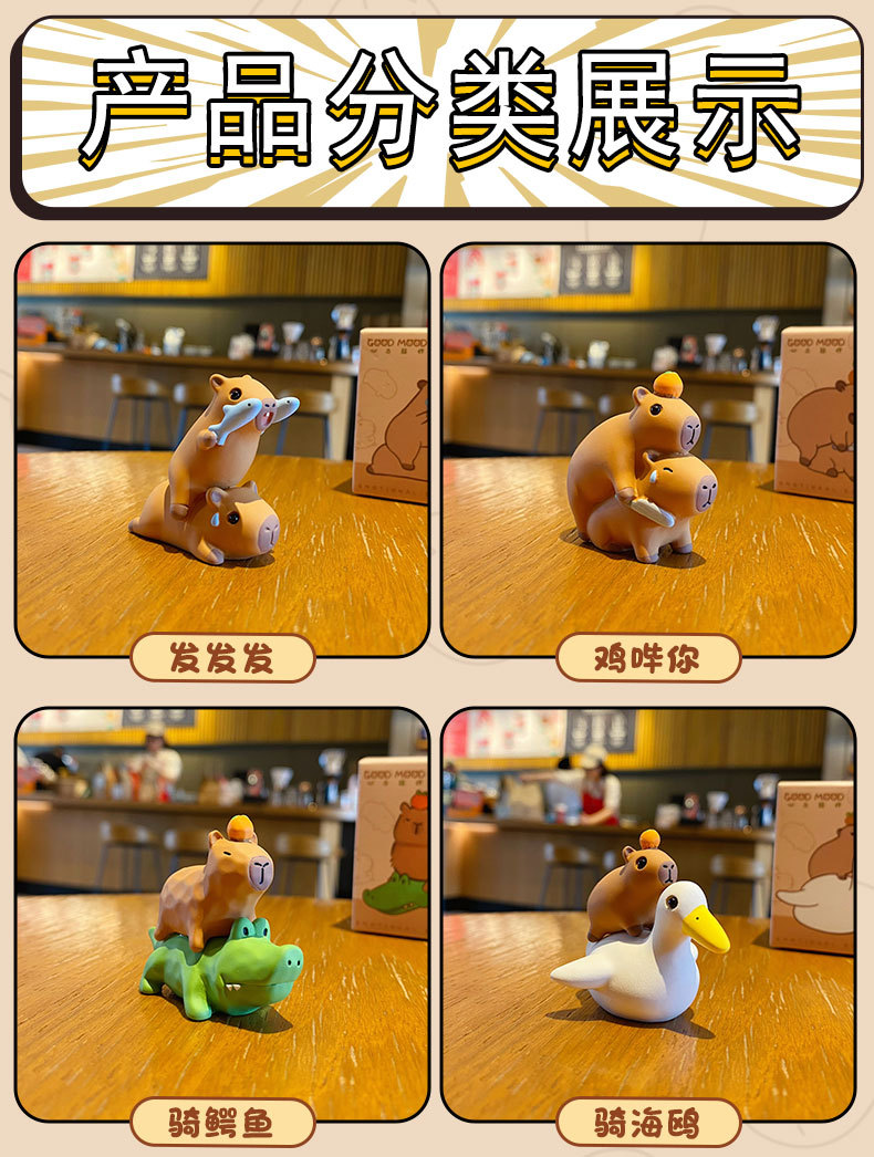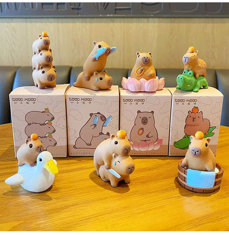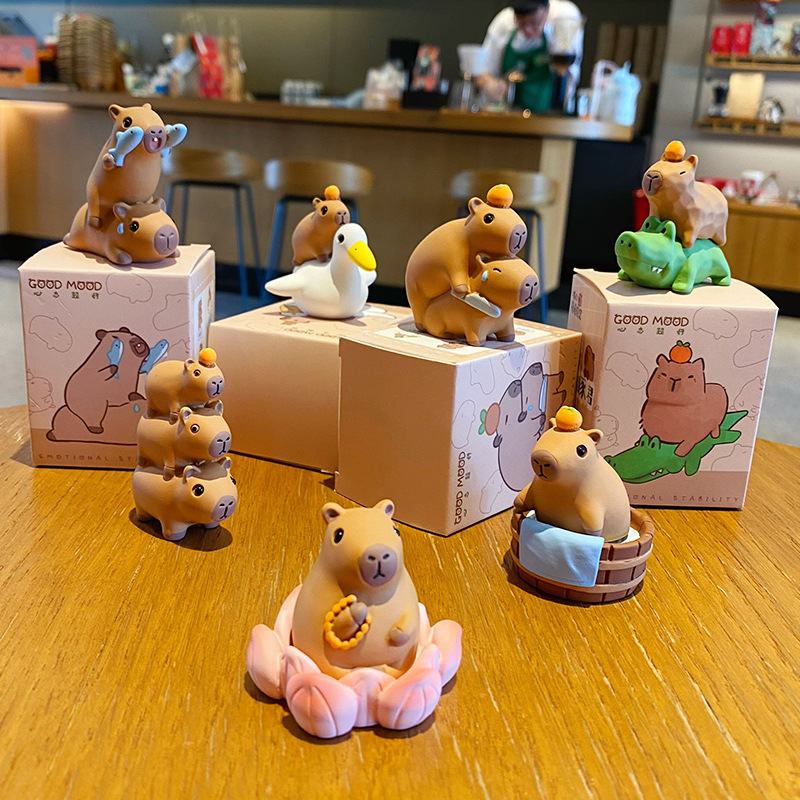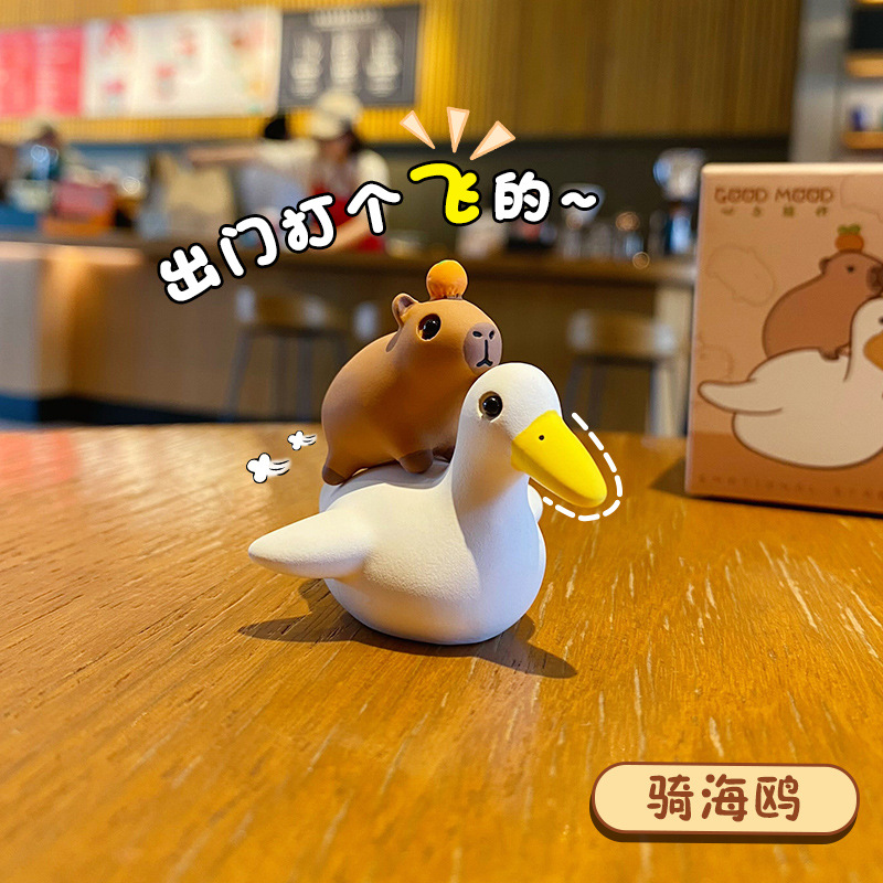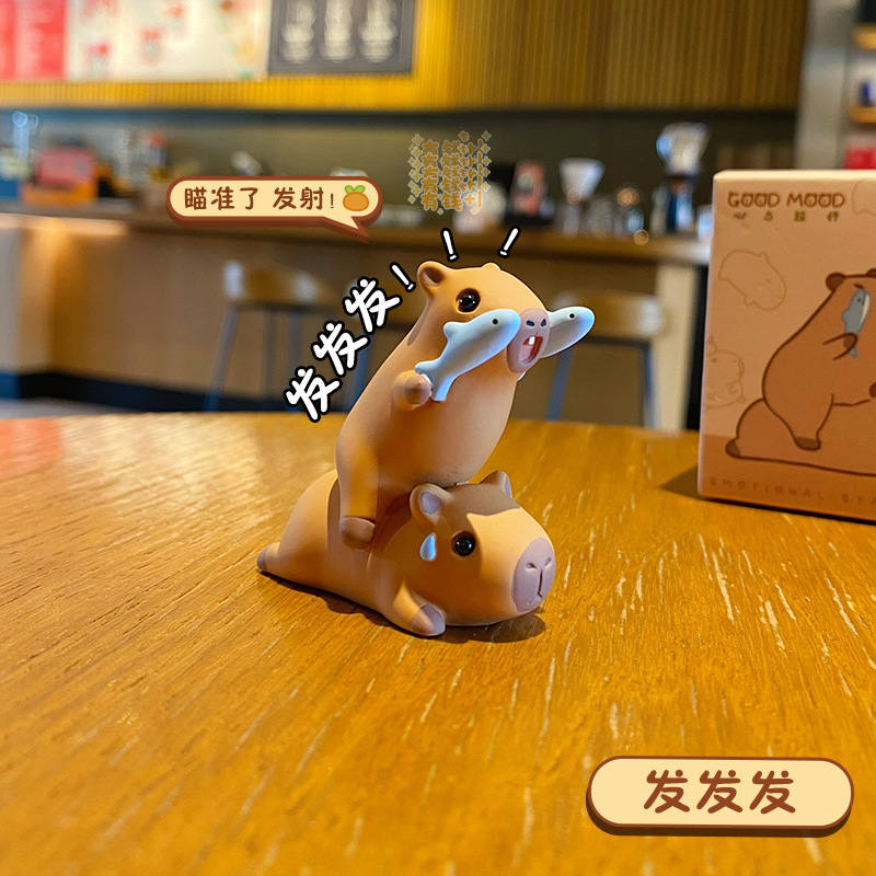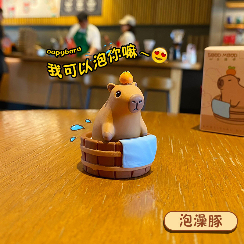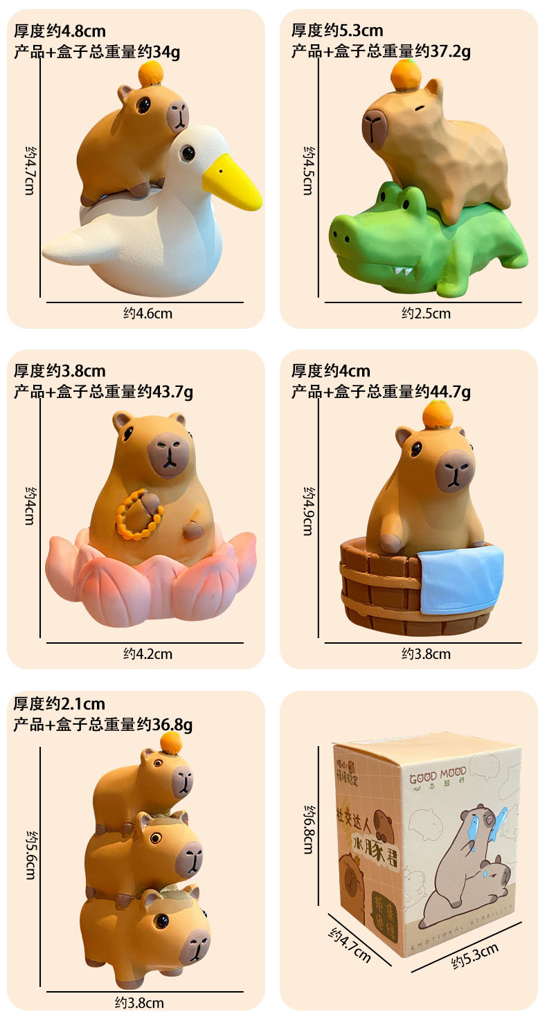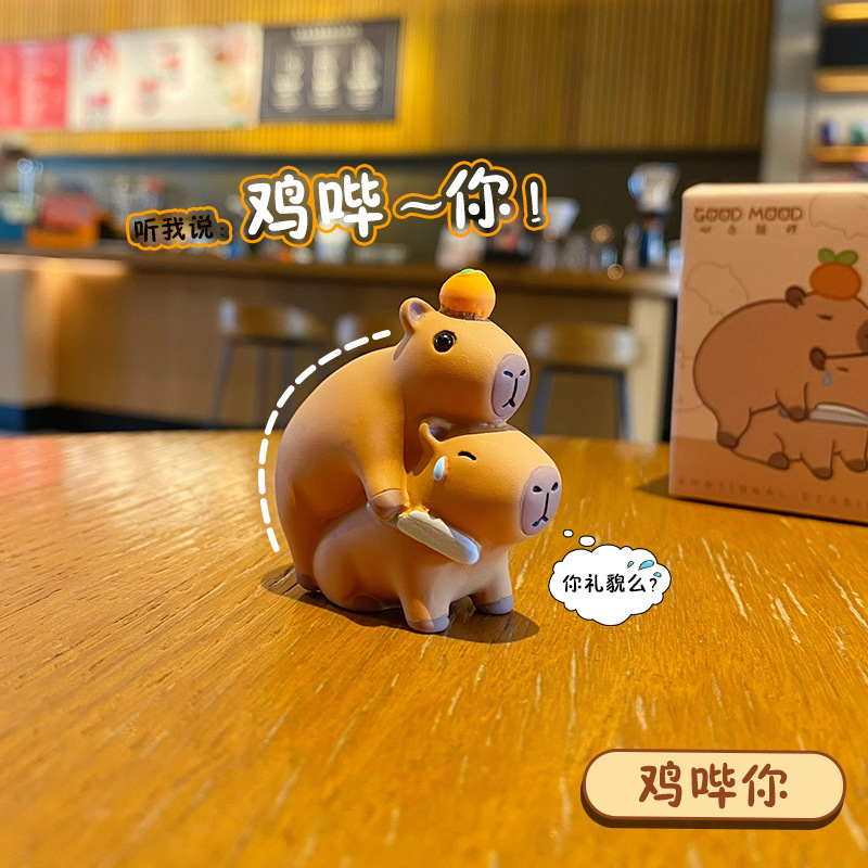 原创佛系水豚可爱时尚创意摆件精致树脂水豚公仔桌面汽车装饰摆件