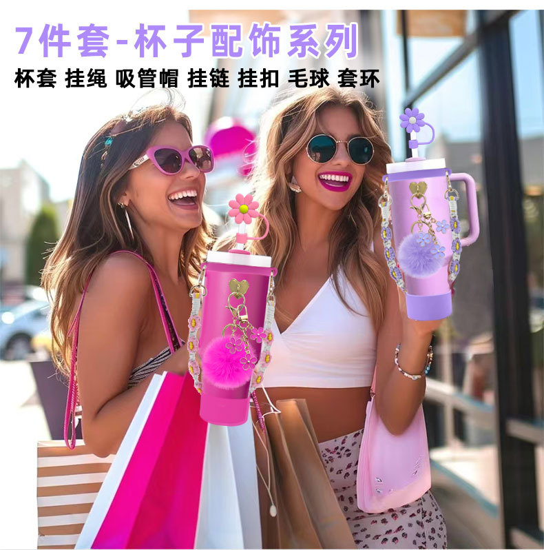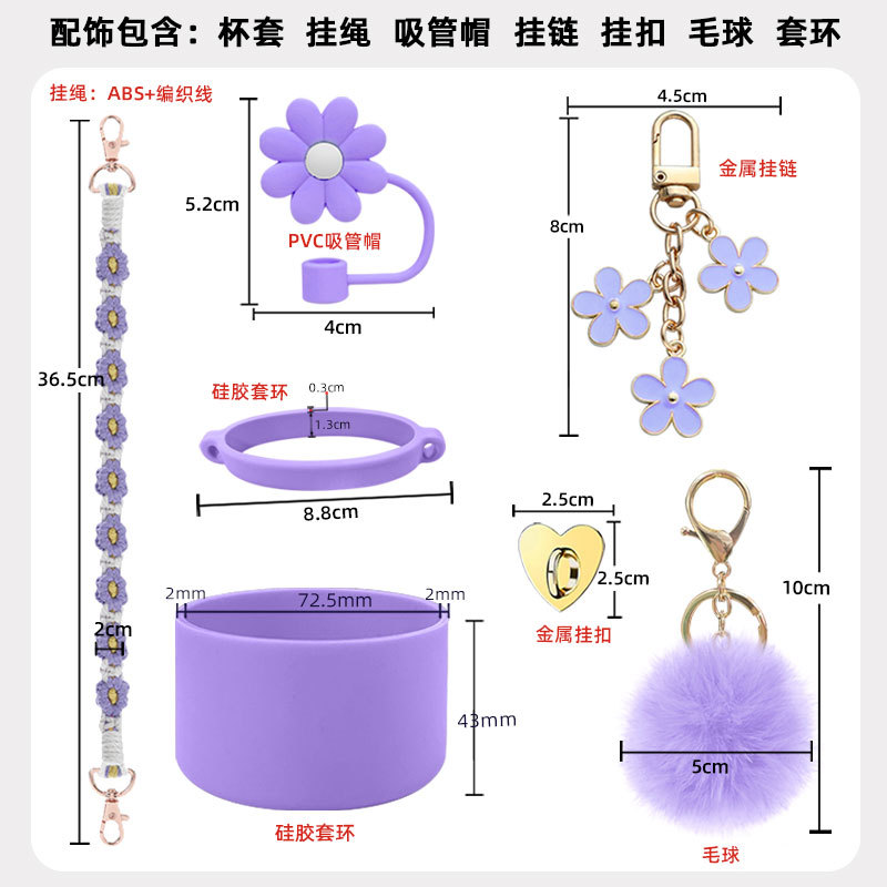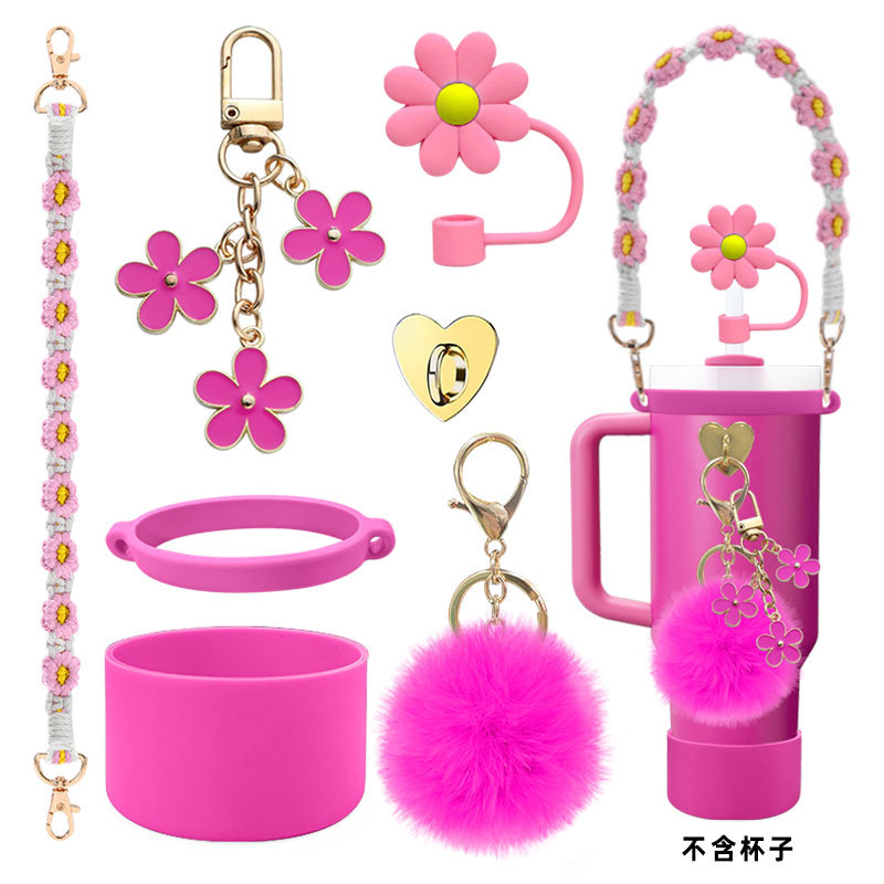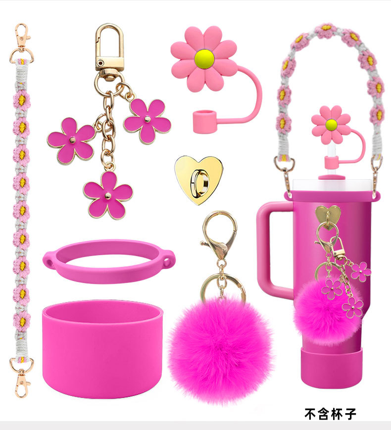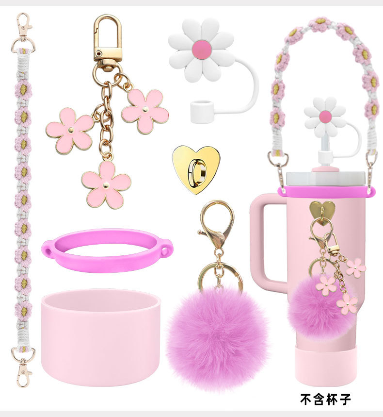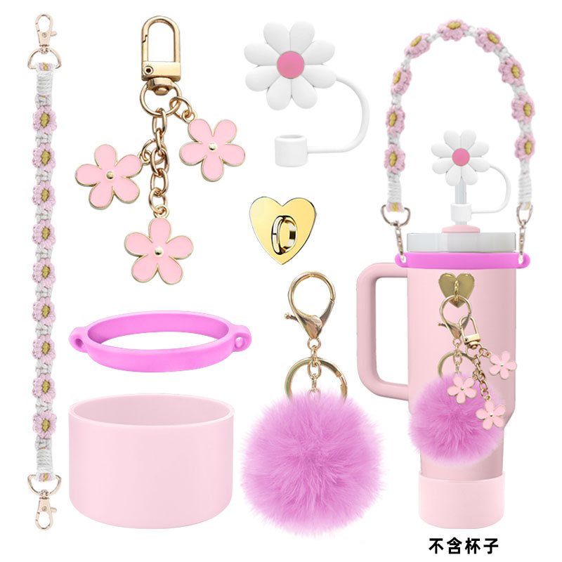 硅胶杯套Stanley水杯套手提绳花朵杯链爱心挂件编织绳套装配饰