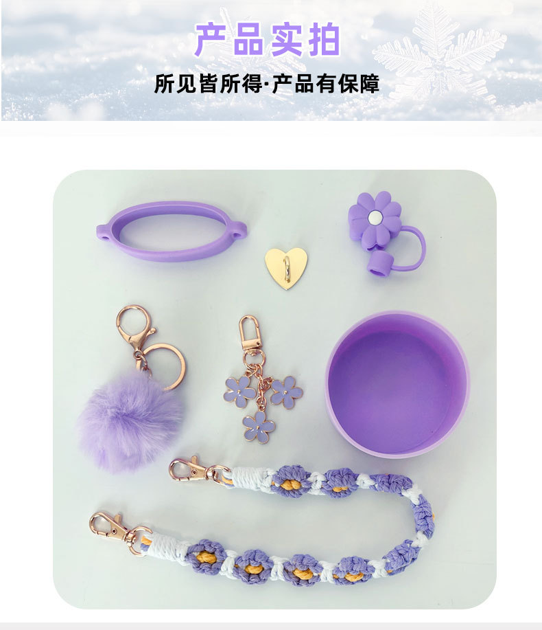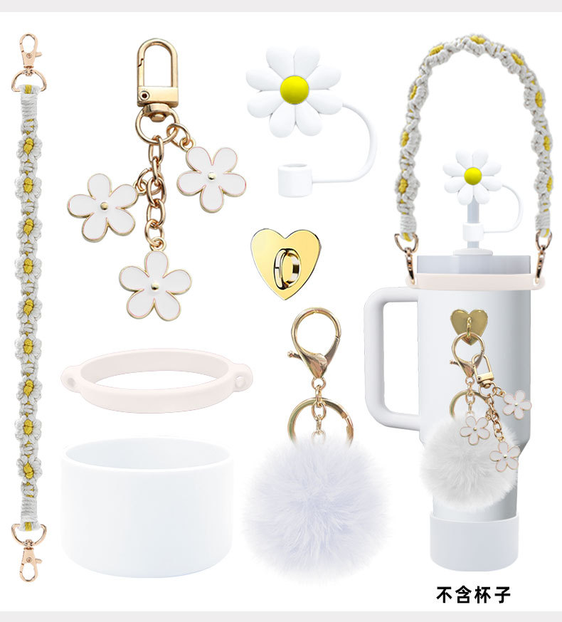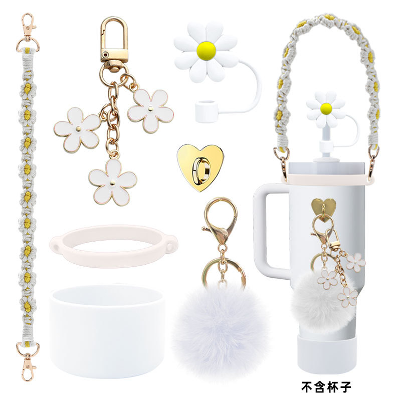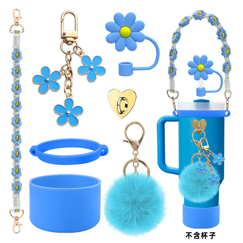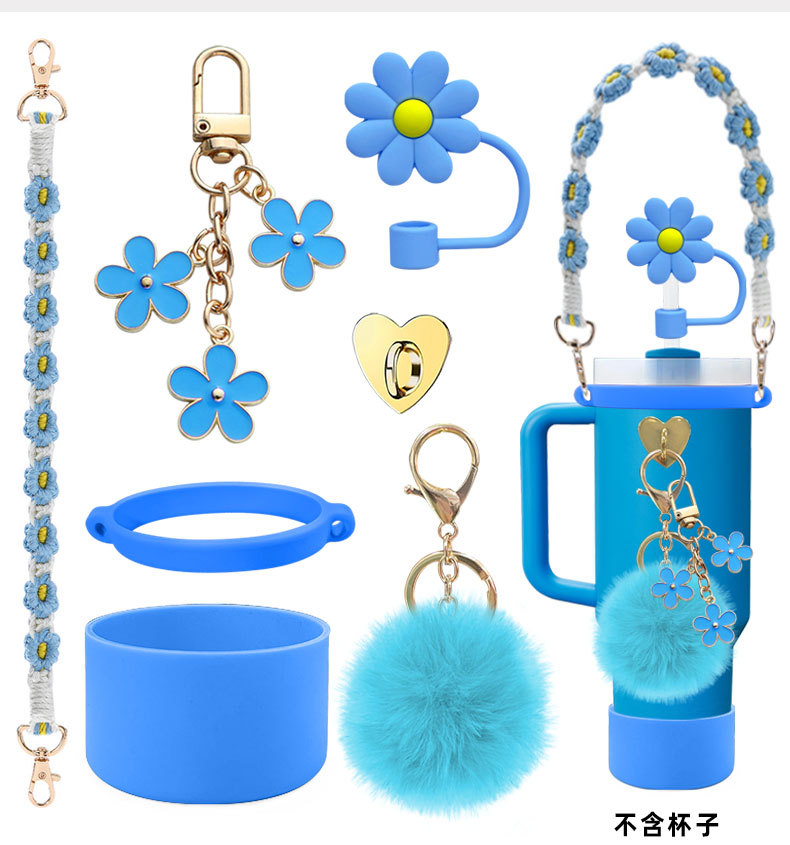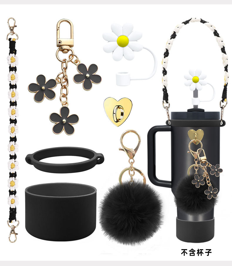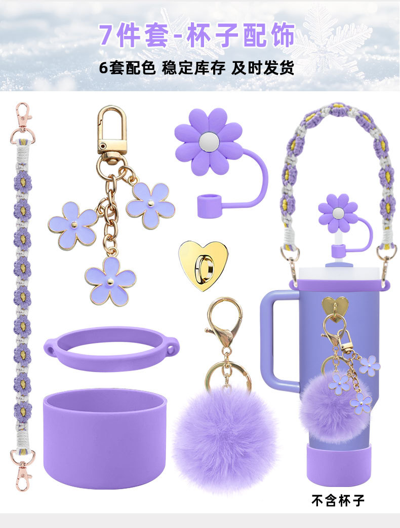 硅胶杯套Stanley水杯套手提绳花朵杯链爱心挂件编织绳套装配饰