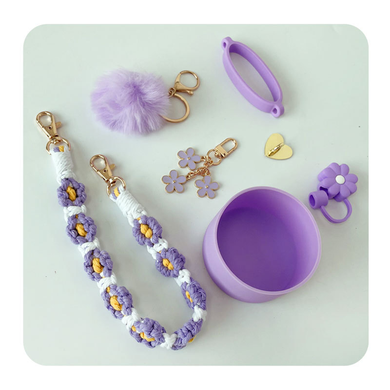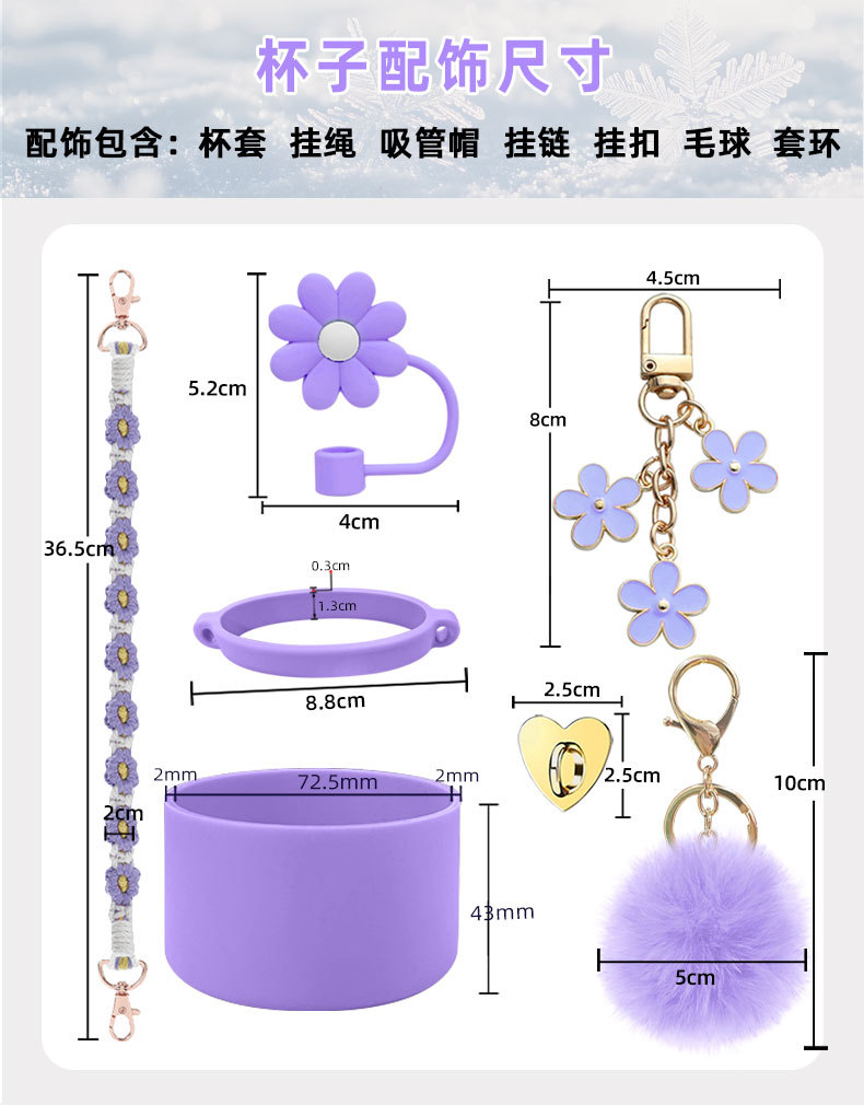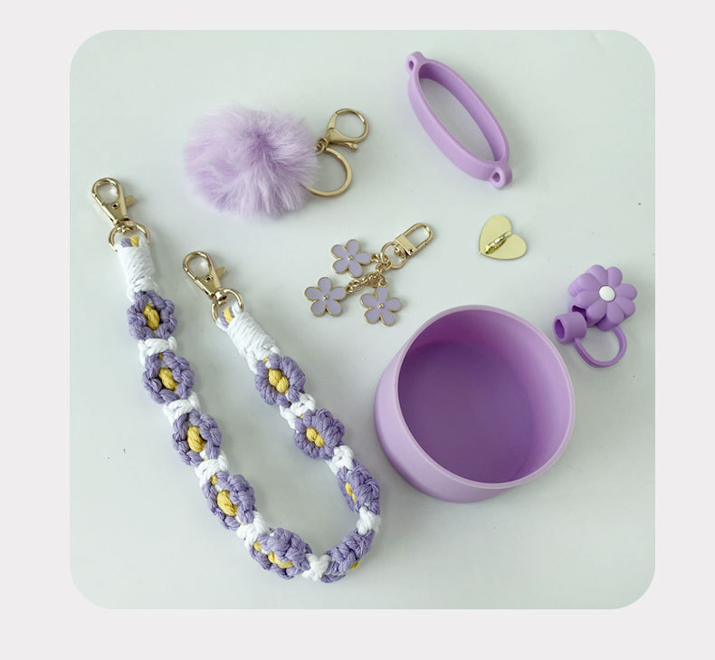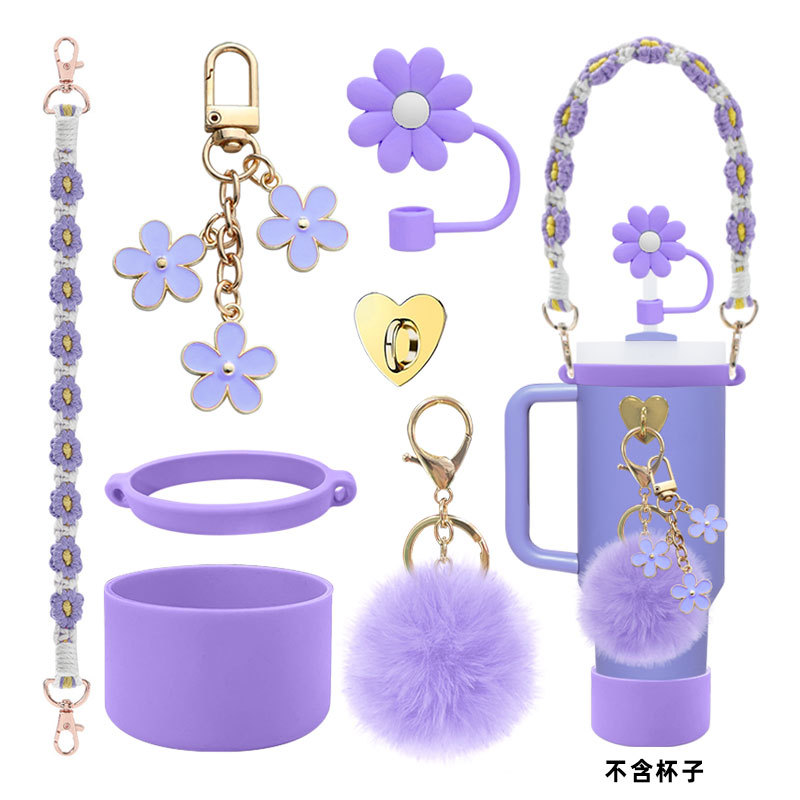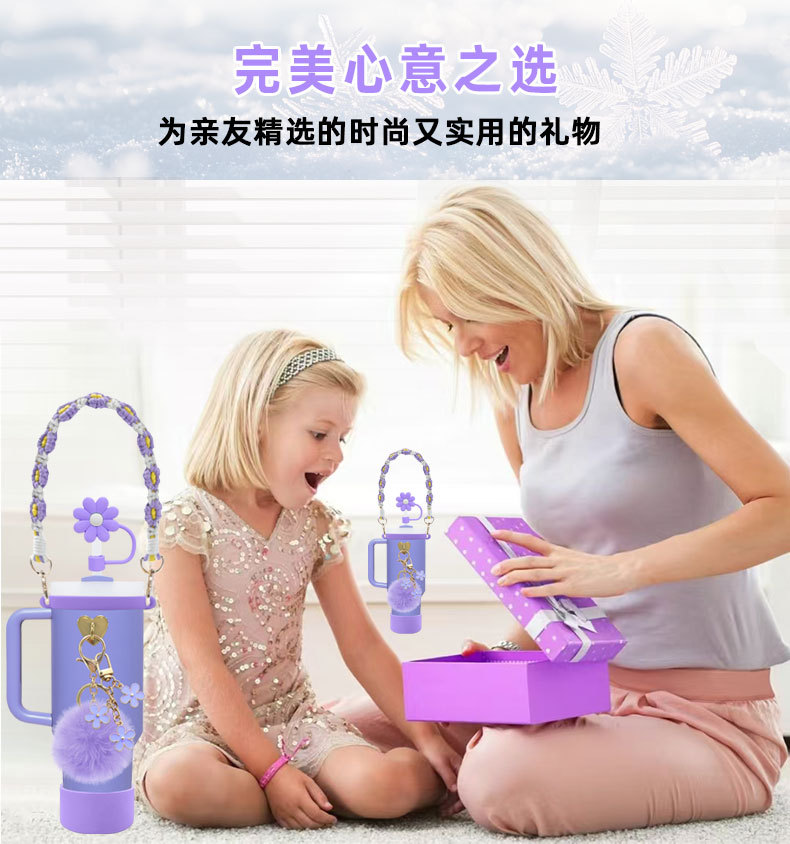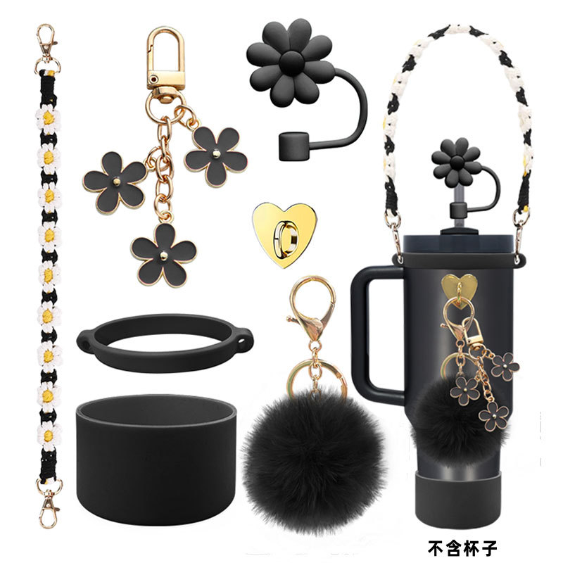 硅胶杯套Stanley水杯套手提绳花朵杯链爱心挂件编织绳套装配饰
