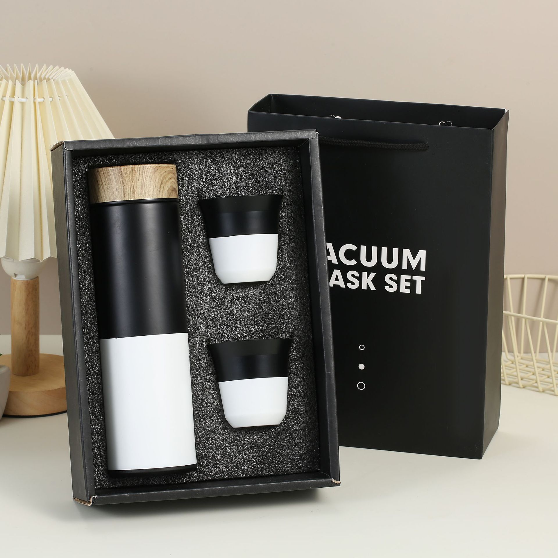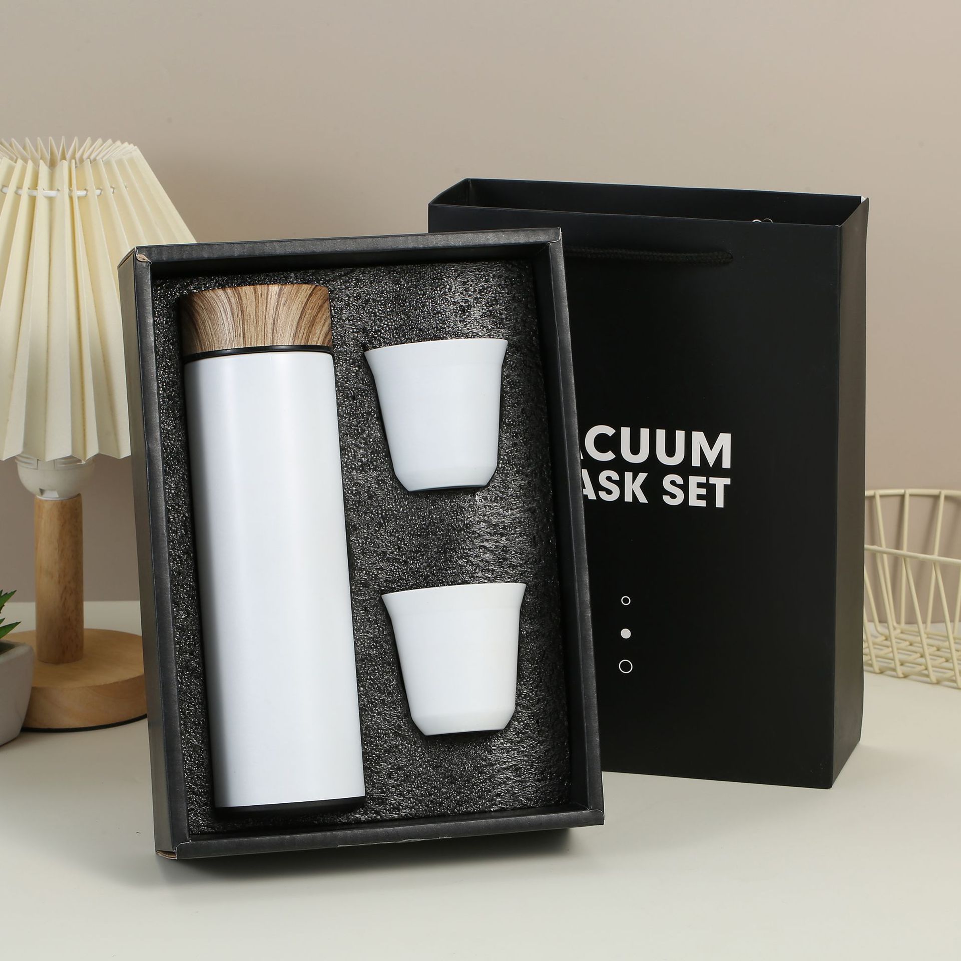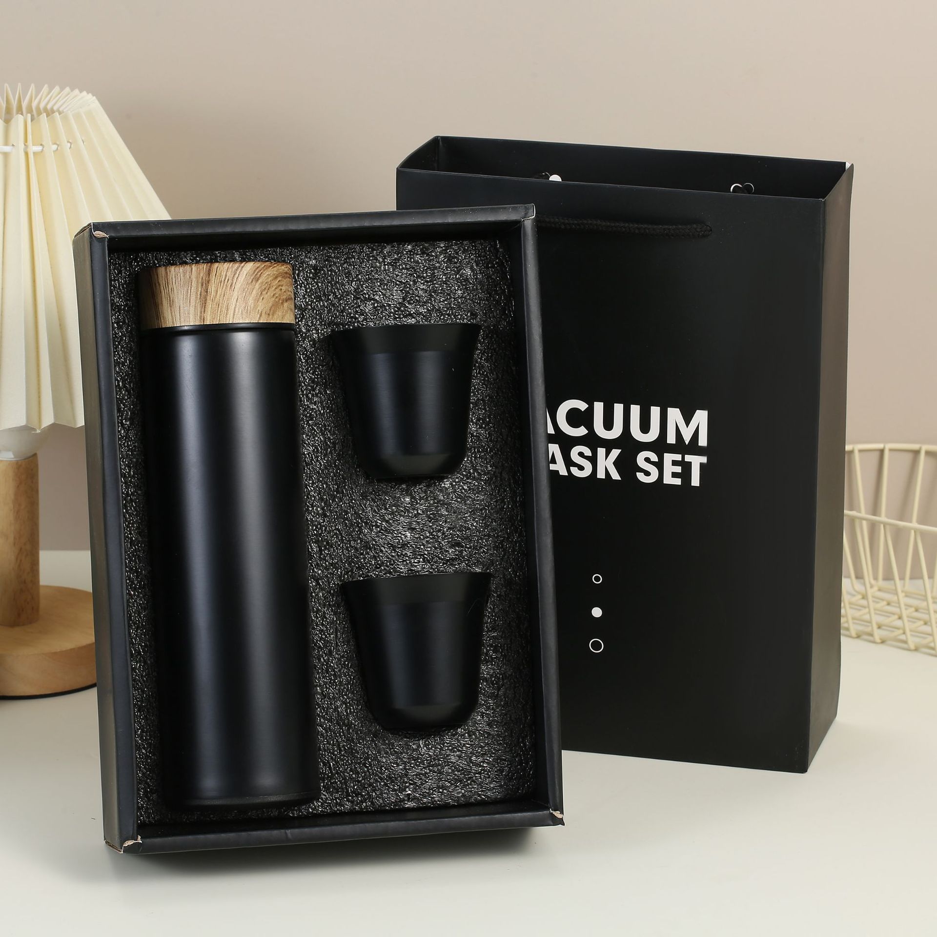 新款304不锈钢三件套男士礼盒套装真空保温杯时尚木纹盖直杯商务