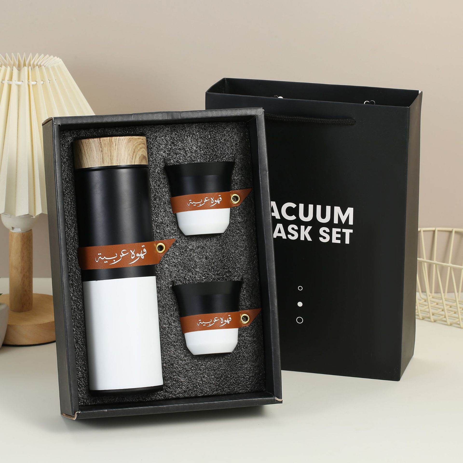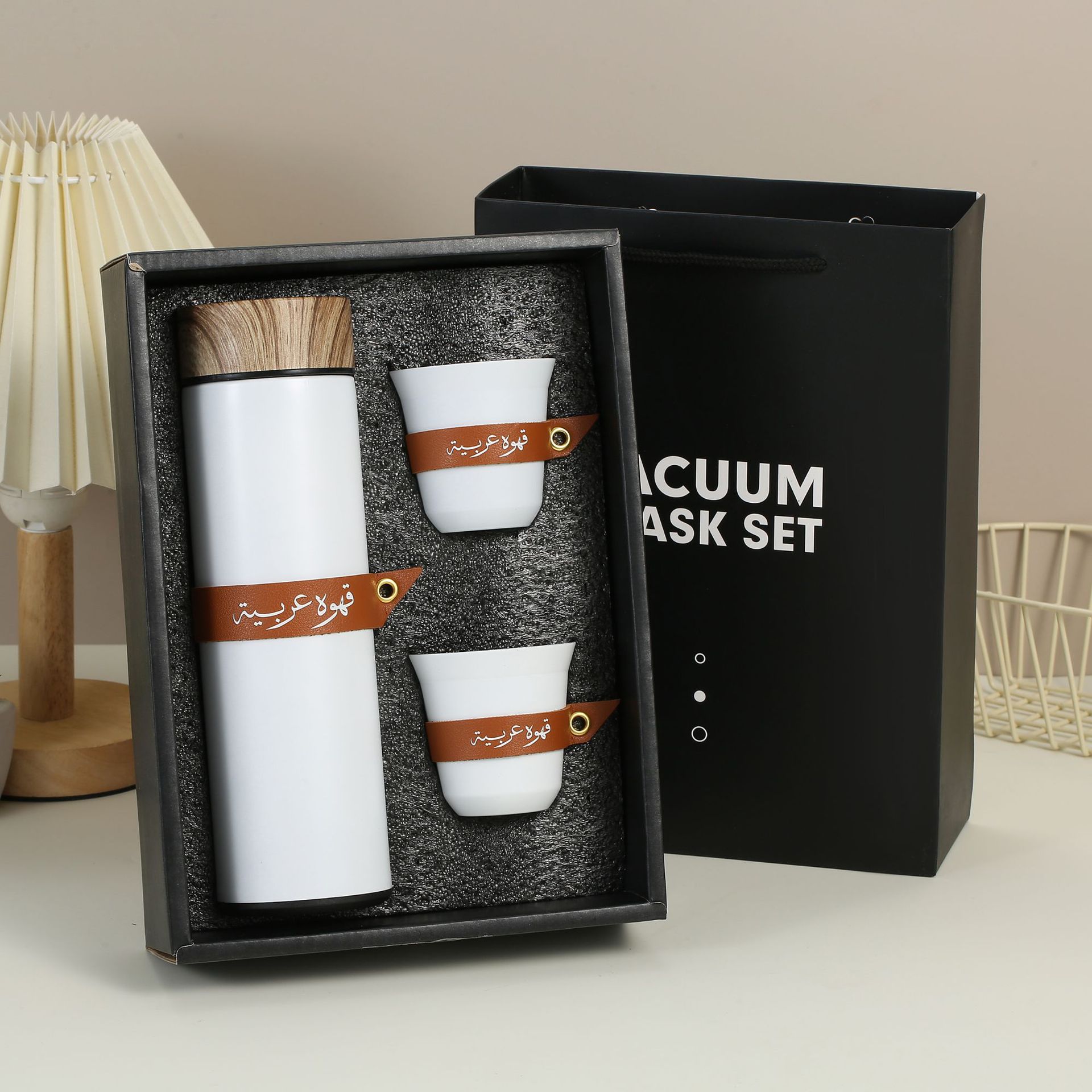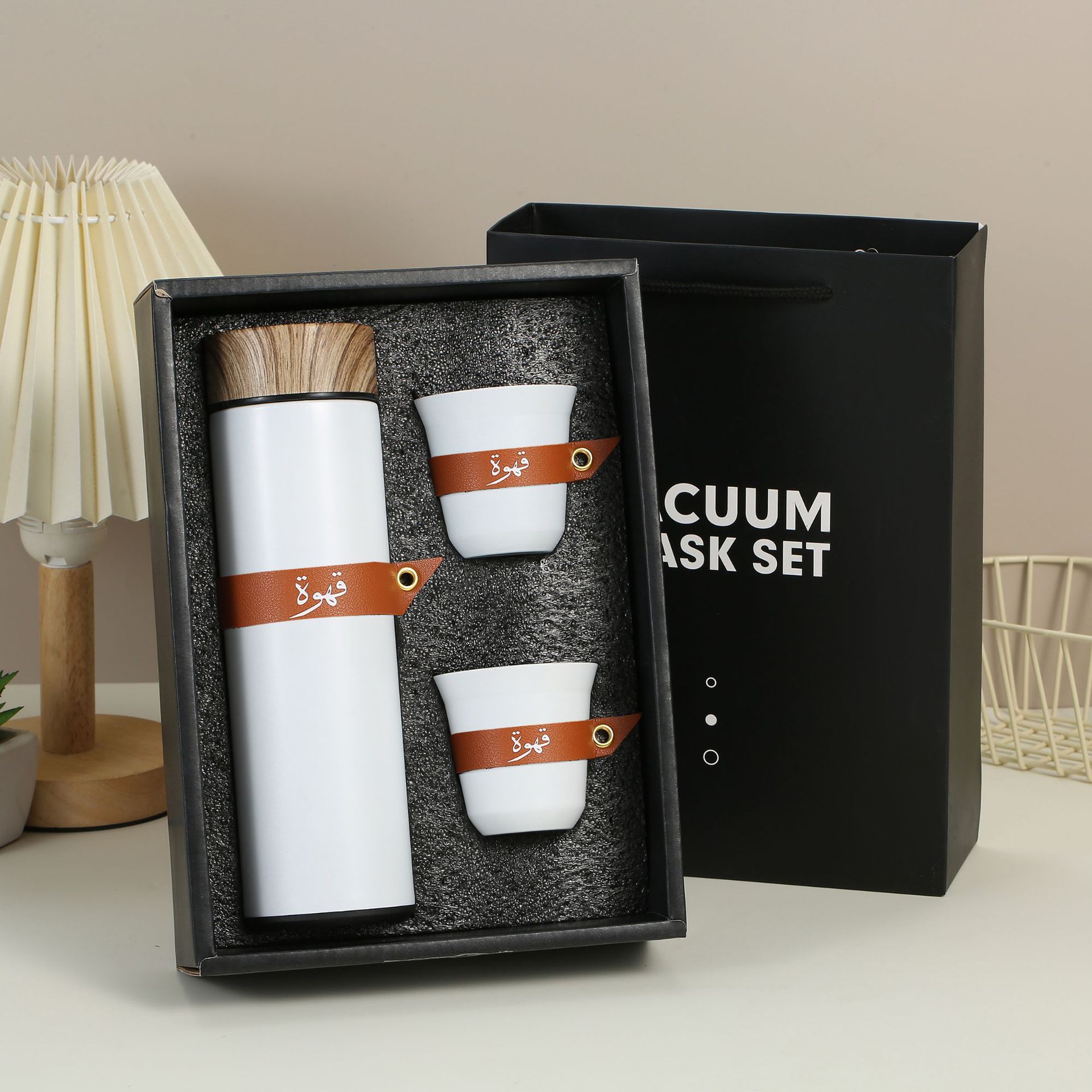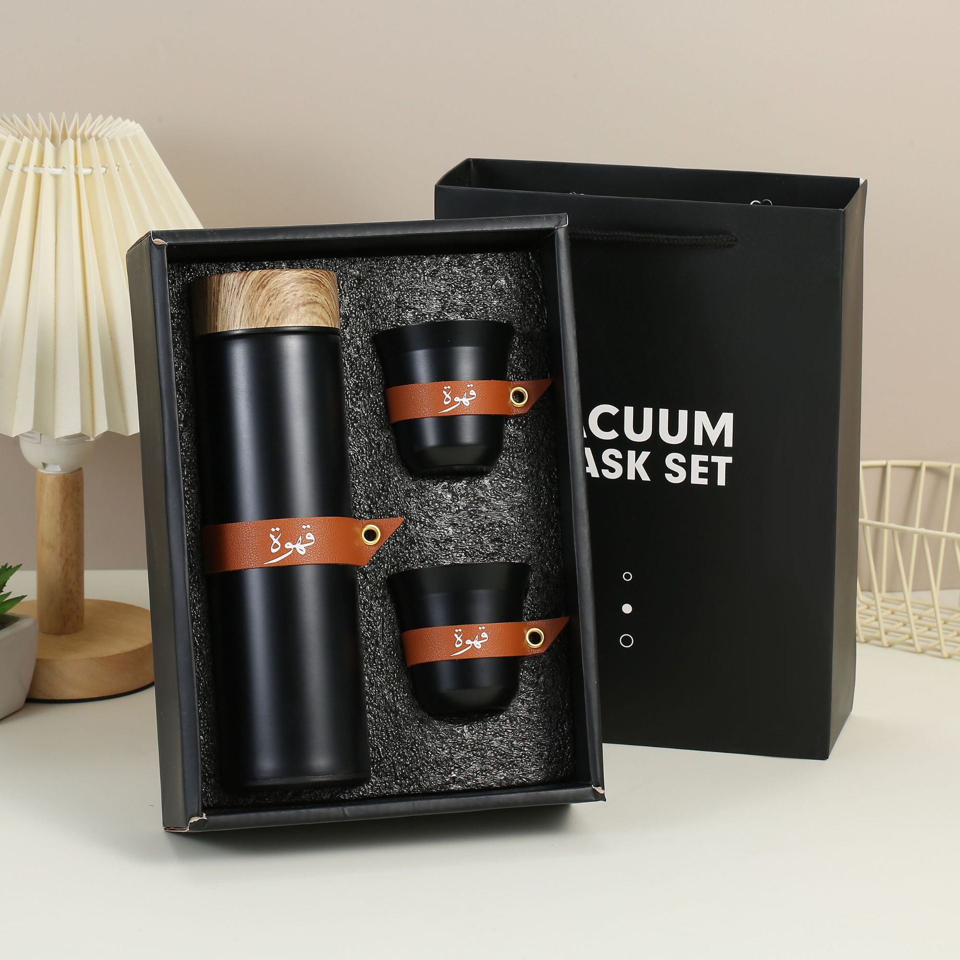 新款304不锈钢三件套男士礼盒套装真空保温杯时尚木纹盖直杯商务