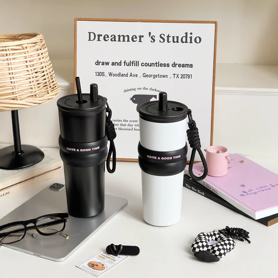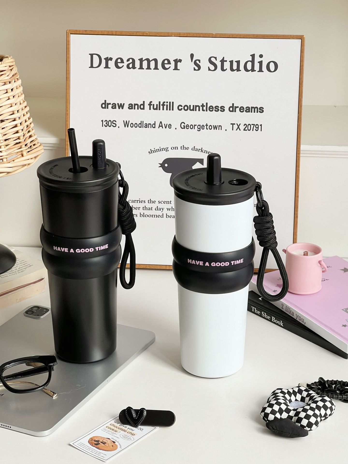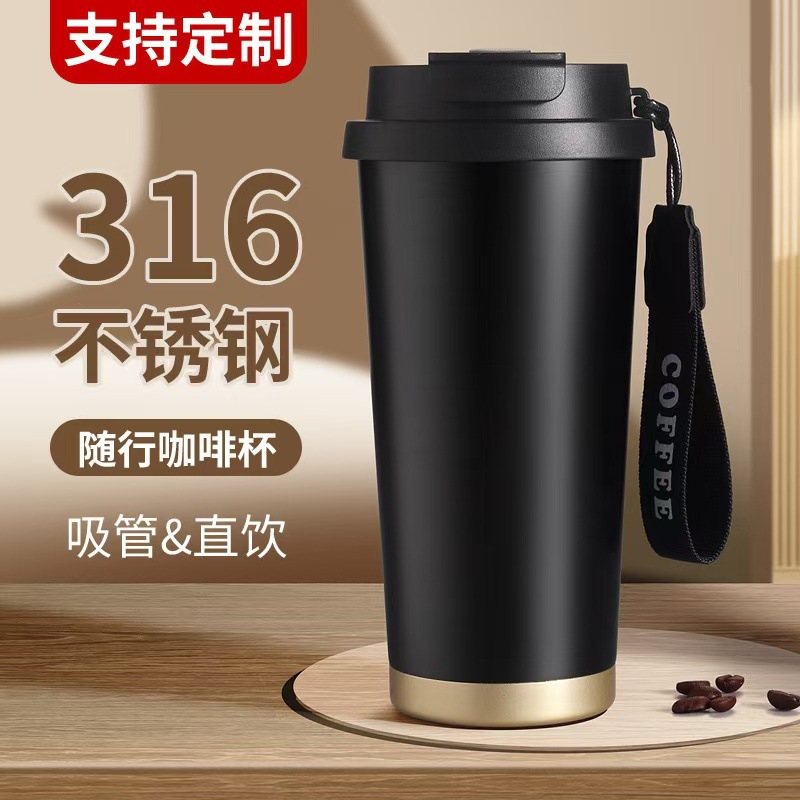 简约便携保温杯大容量女生高颜值吸管杯高档办公户外杯子可定制