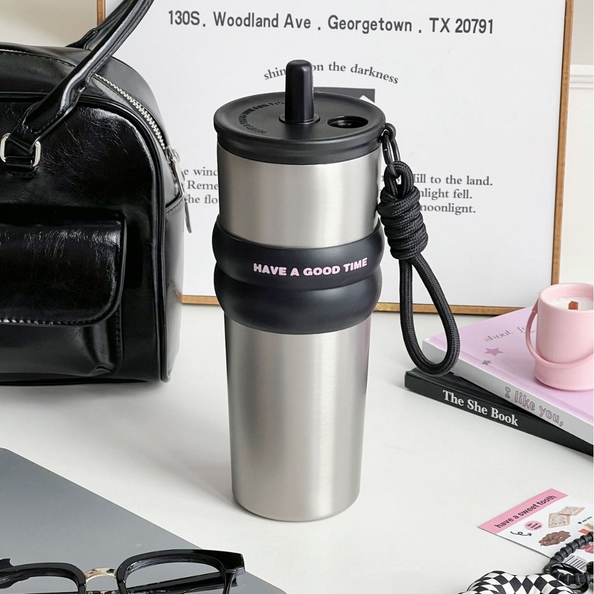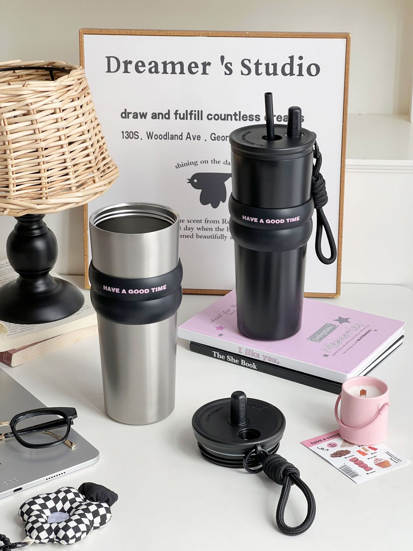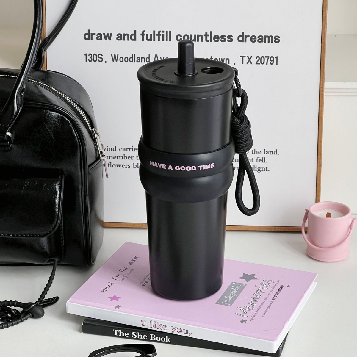 简约便携保温杯大容量女生高颜值吸管杯高档办公户外杯子可定制