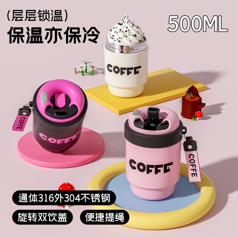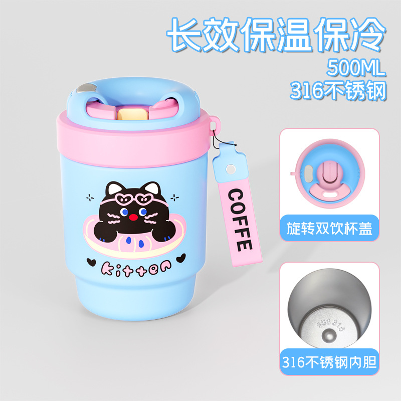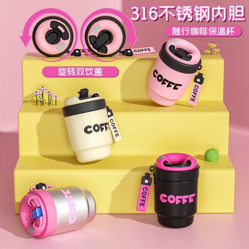 迷你双饮保温杯316不锈钢咖啡杯学生礼品陶瓷杯子定制伴手礼水杯