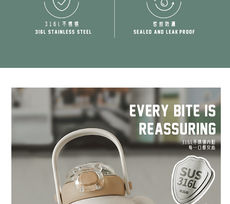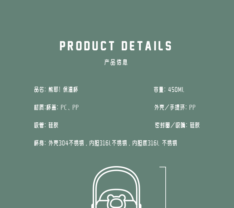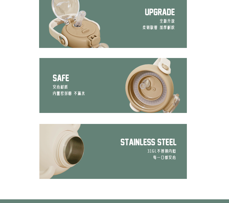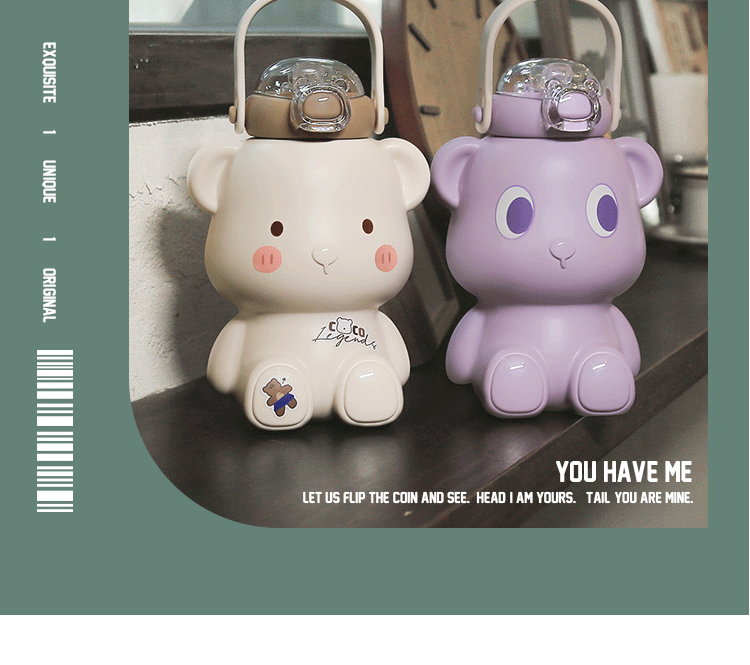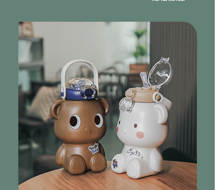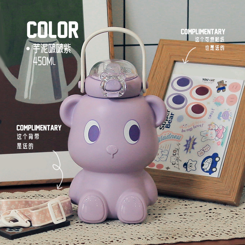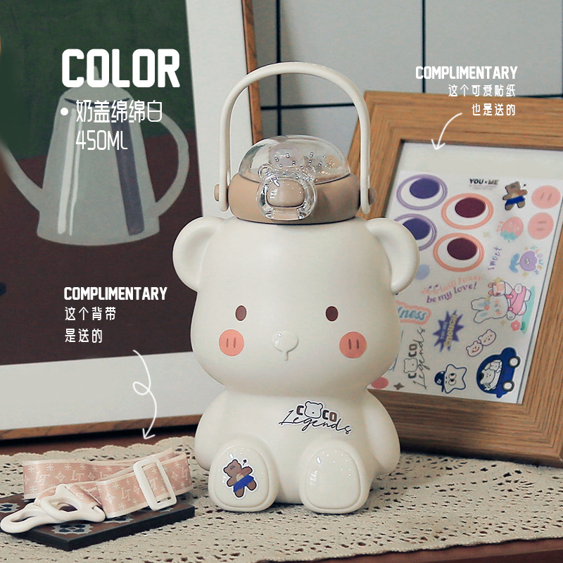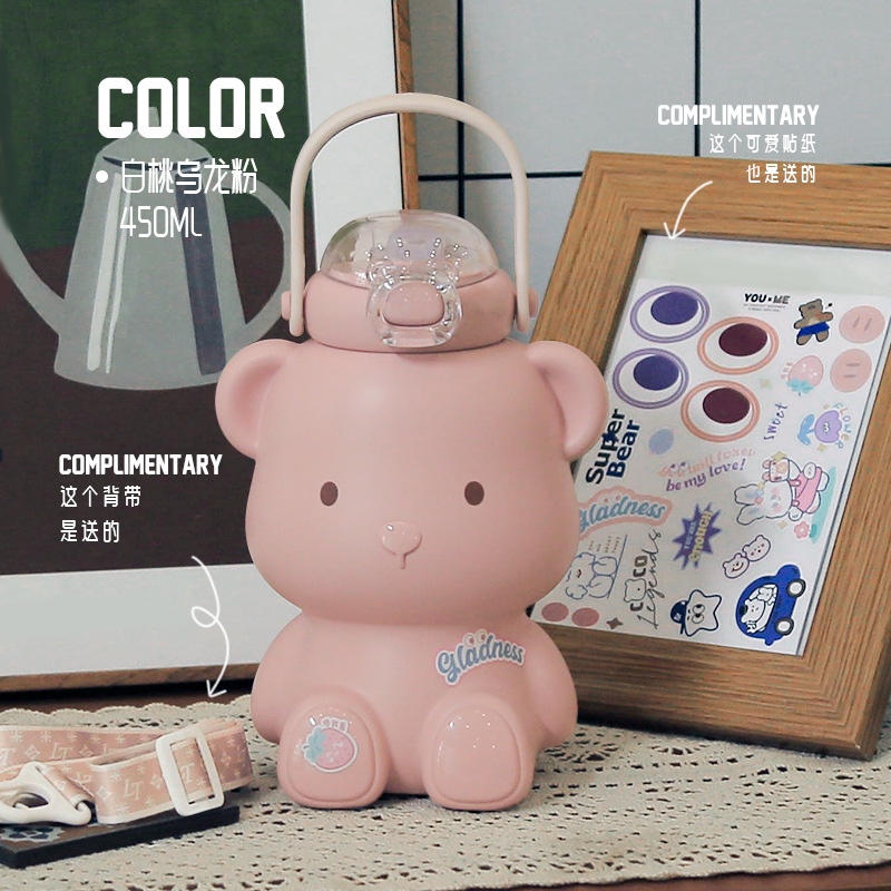 新款熊耶保温杯女高颜值吸管儿童水杯食品级316学生便携防摔杯子