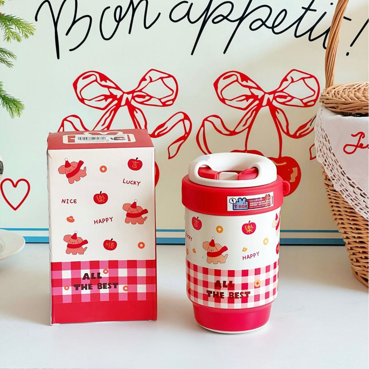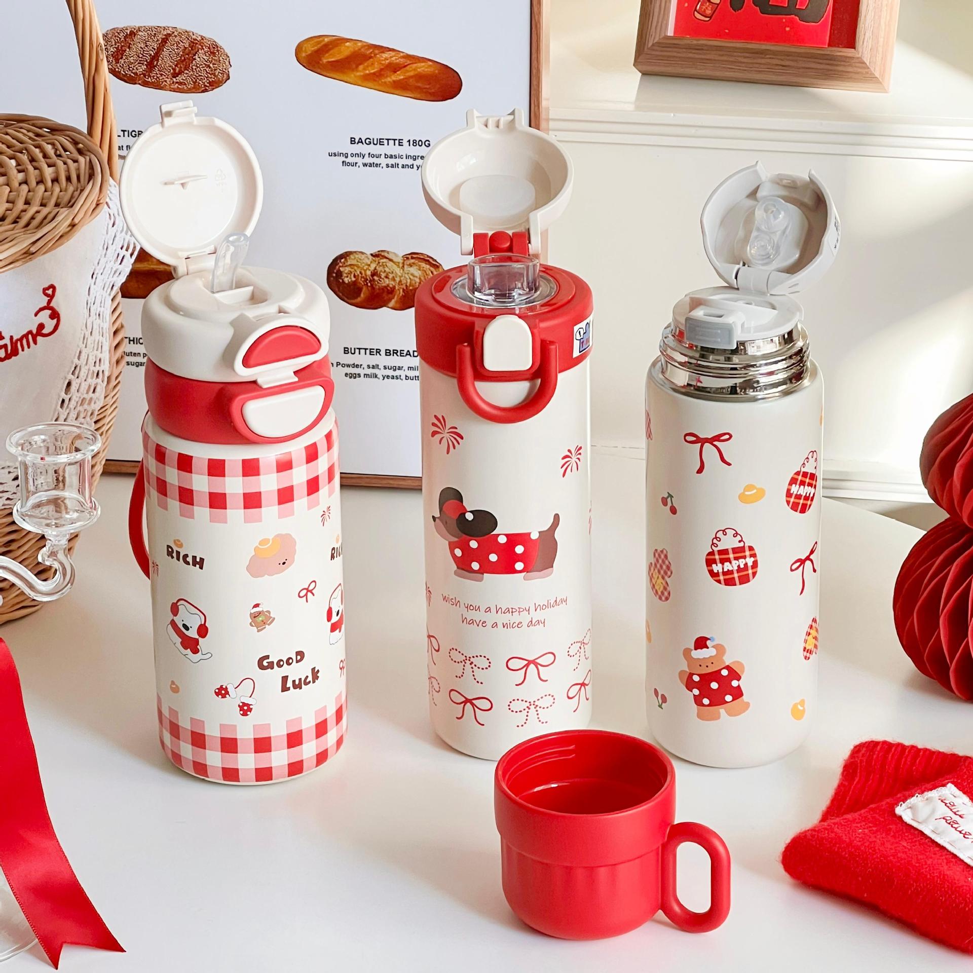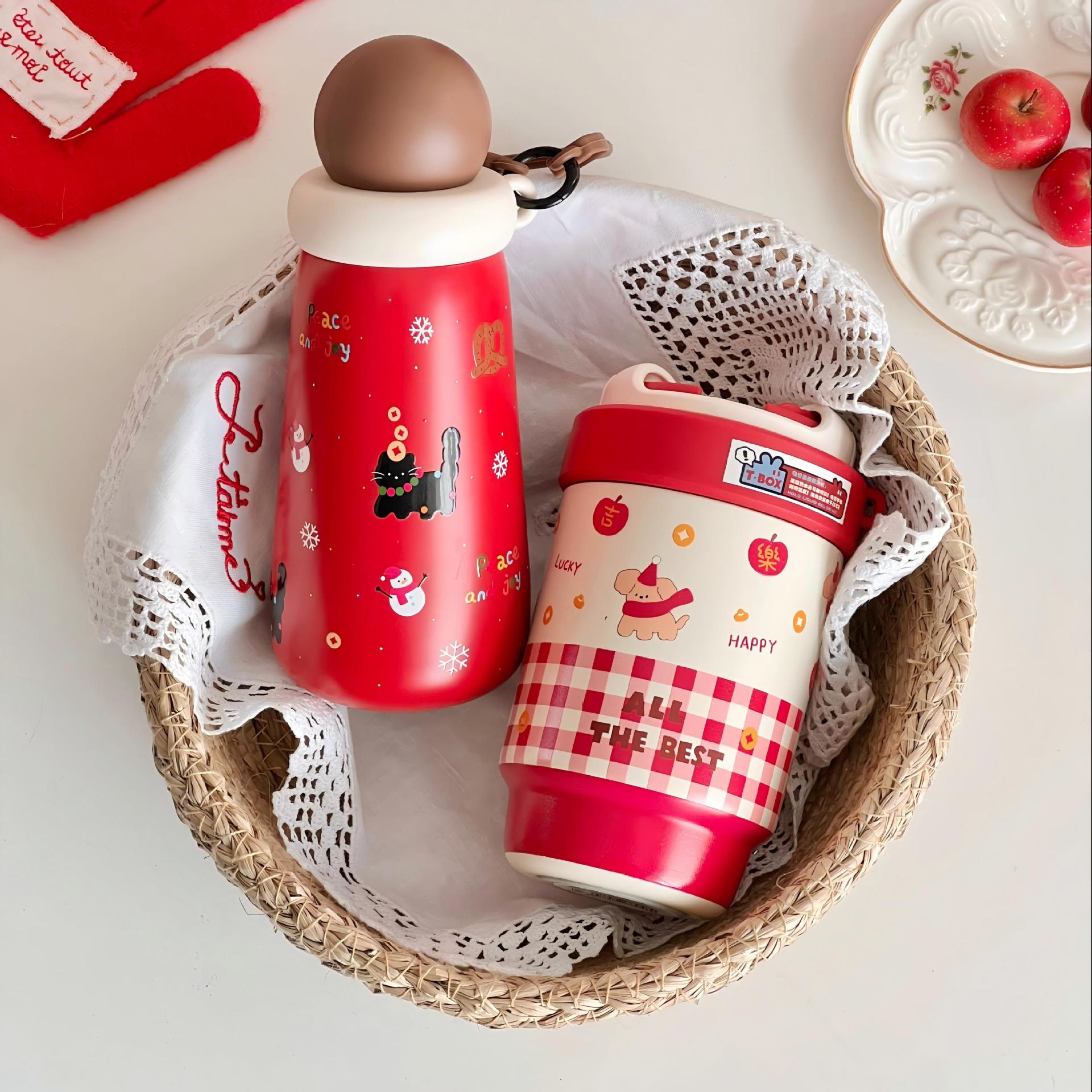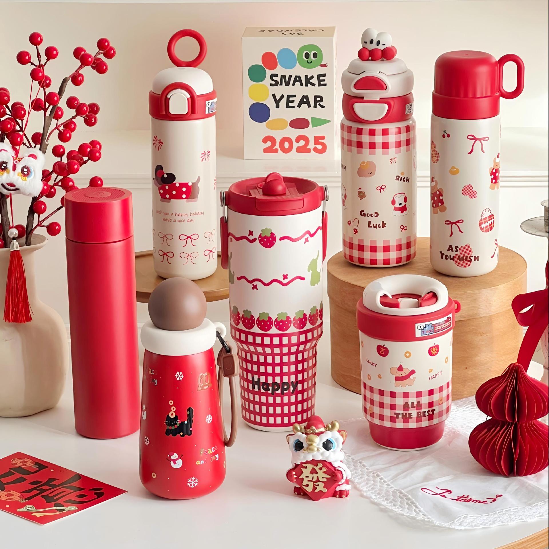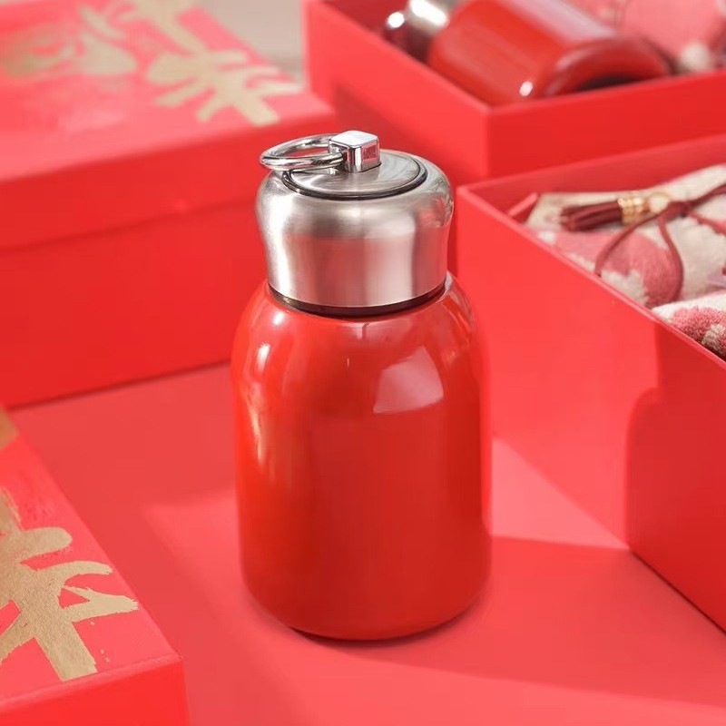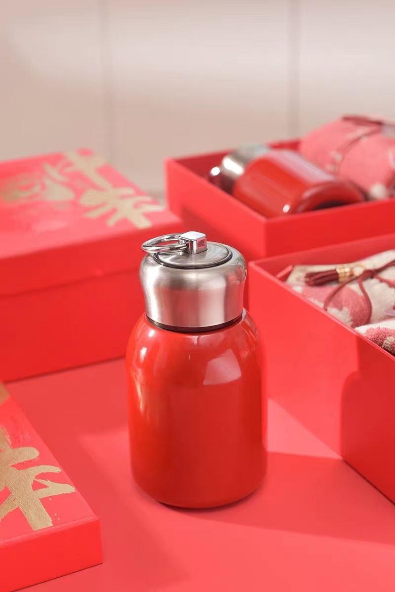 新年中国红保温杯喜庆用品陶瓷杯子年会礼品送员工迷你水杯高颜值