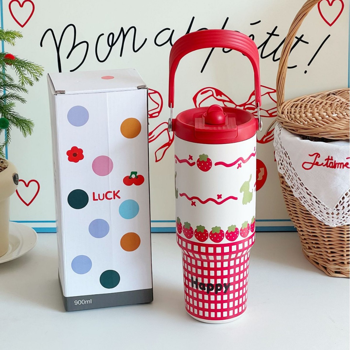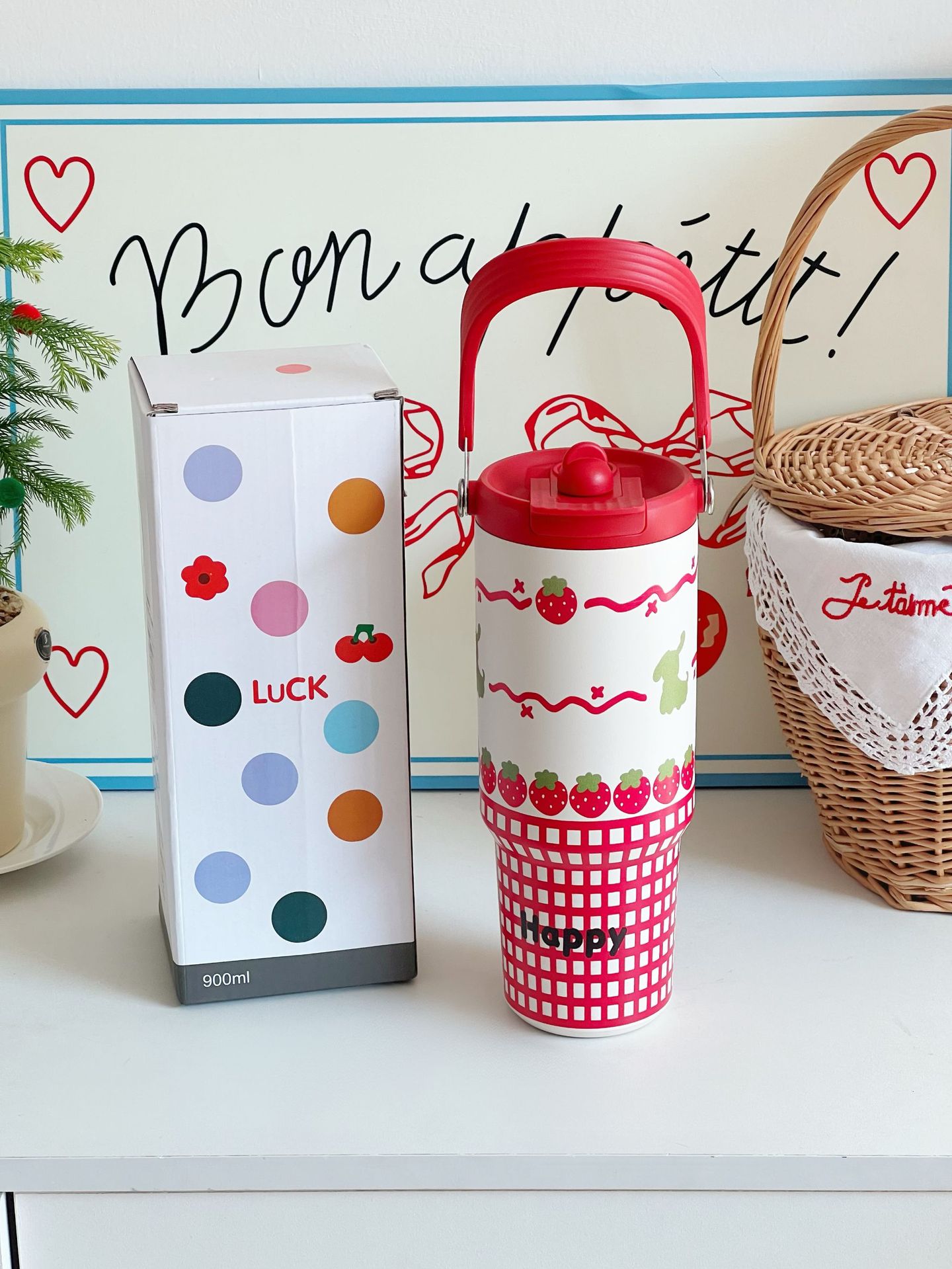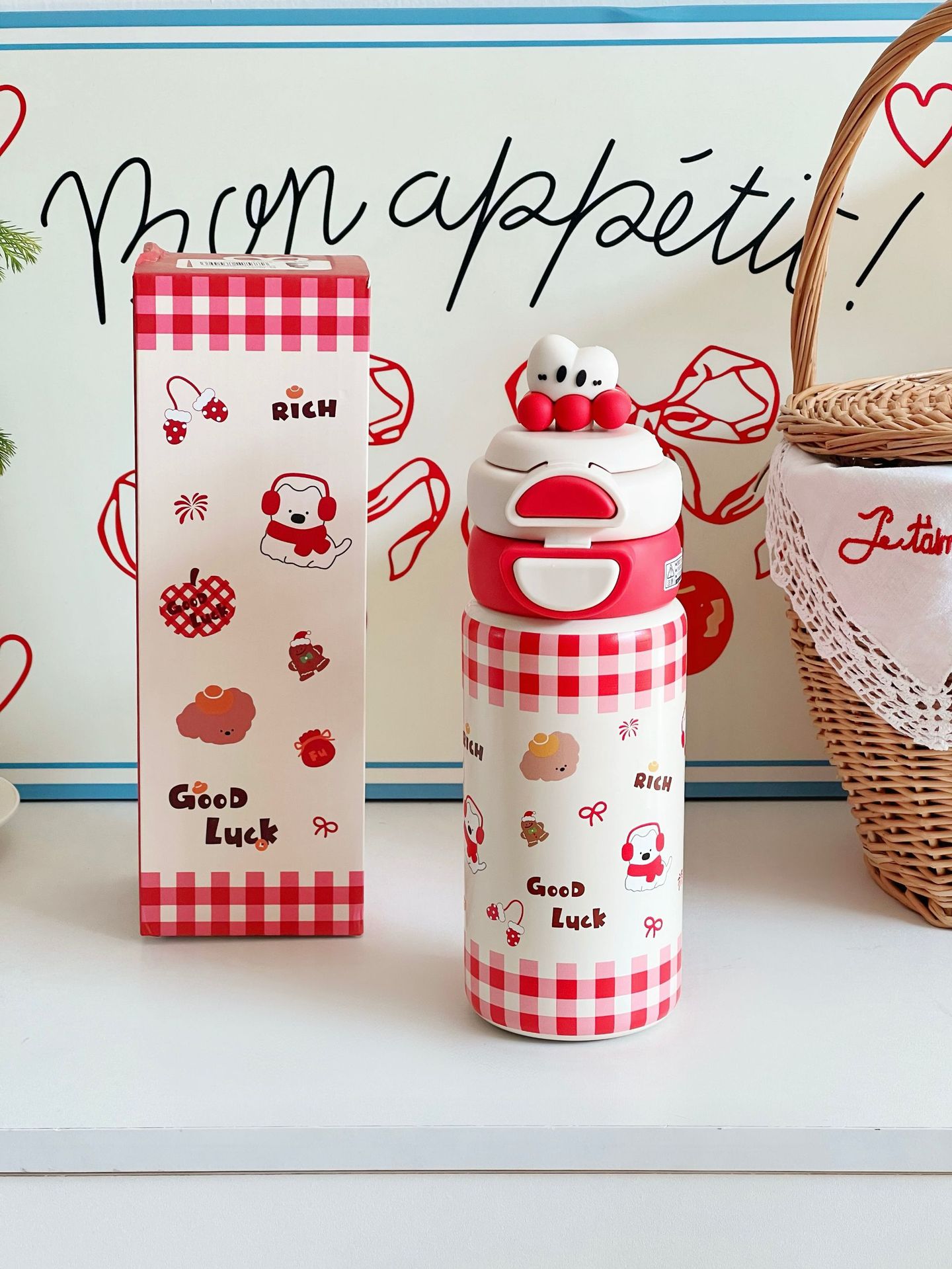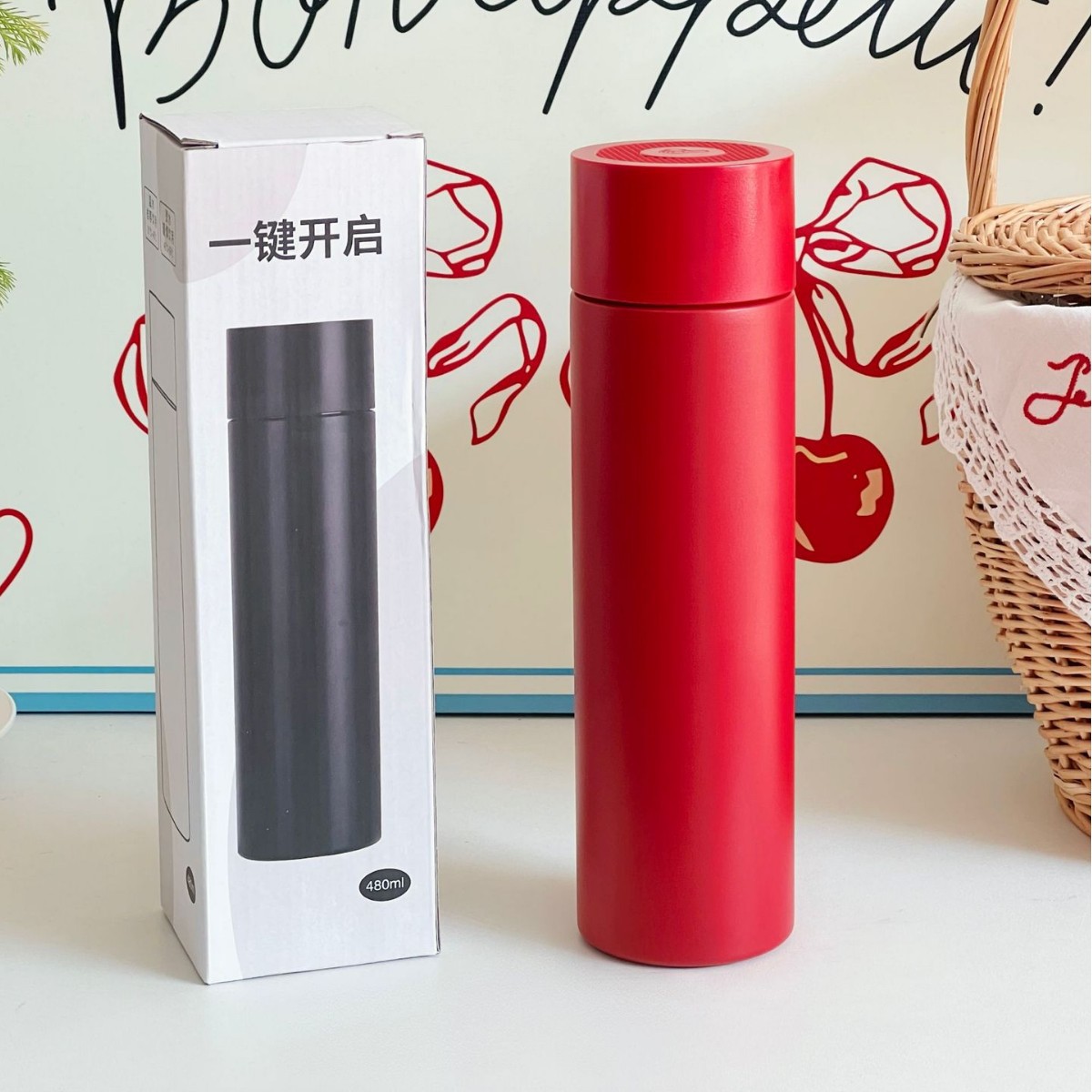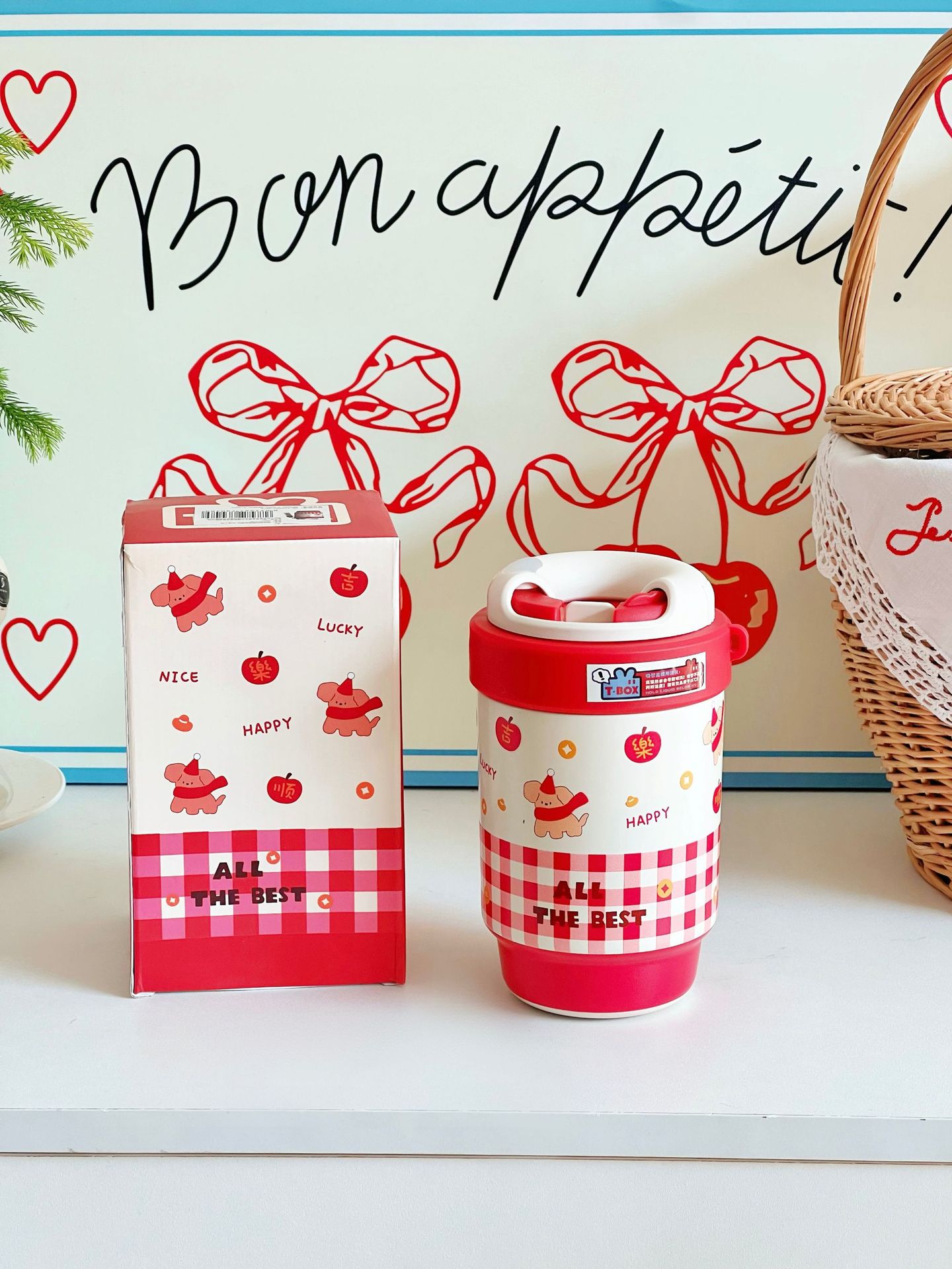 新年中国红保温杯喜庆用品陶瓷杯子年会礼品送员工迷你水杯高颜值