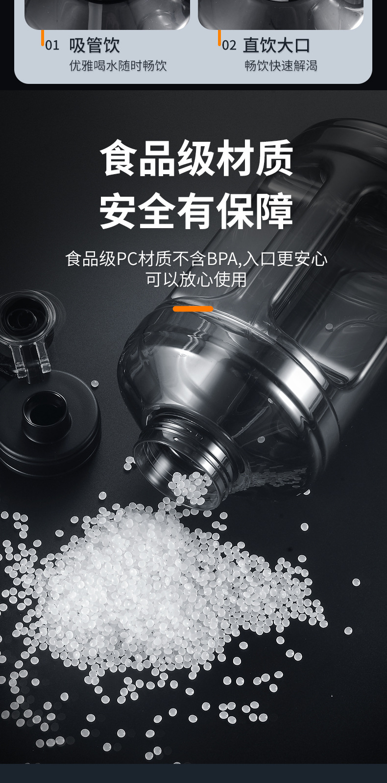 大容量水杯 耐高温带吸管塑料杯运动水壶便携吨吨杯子夏天高颜值