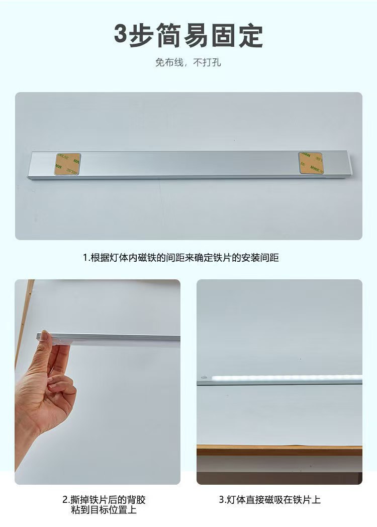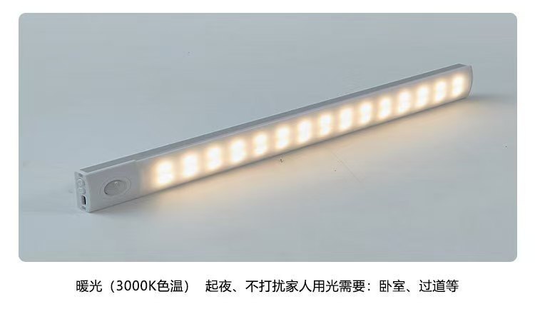 智能led超薄三色人体感应灯磁吸长条橱柜衣柜酒柜床头充电小夜灯