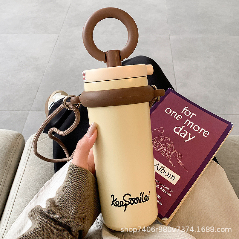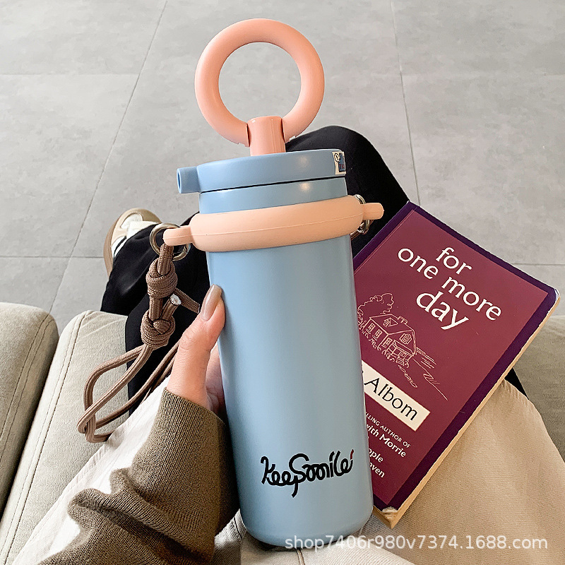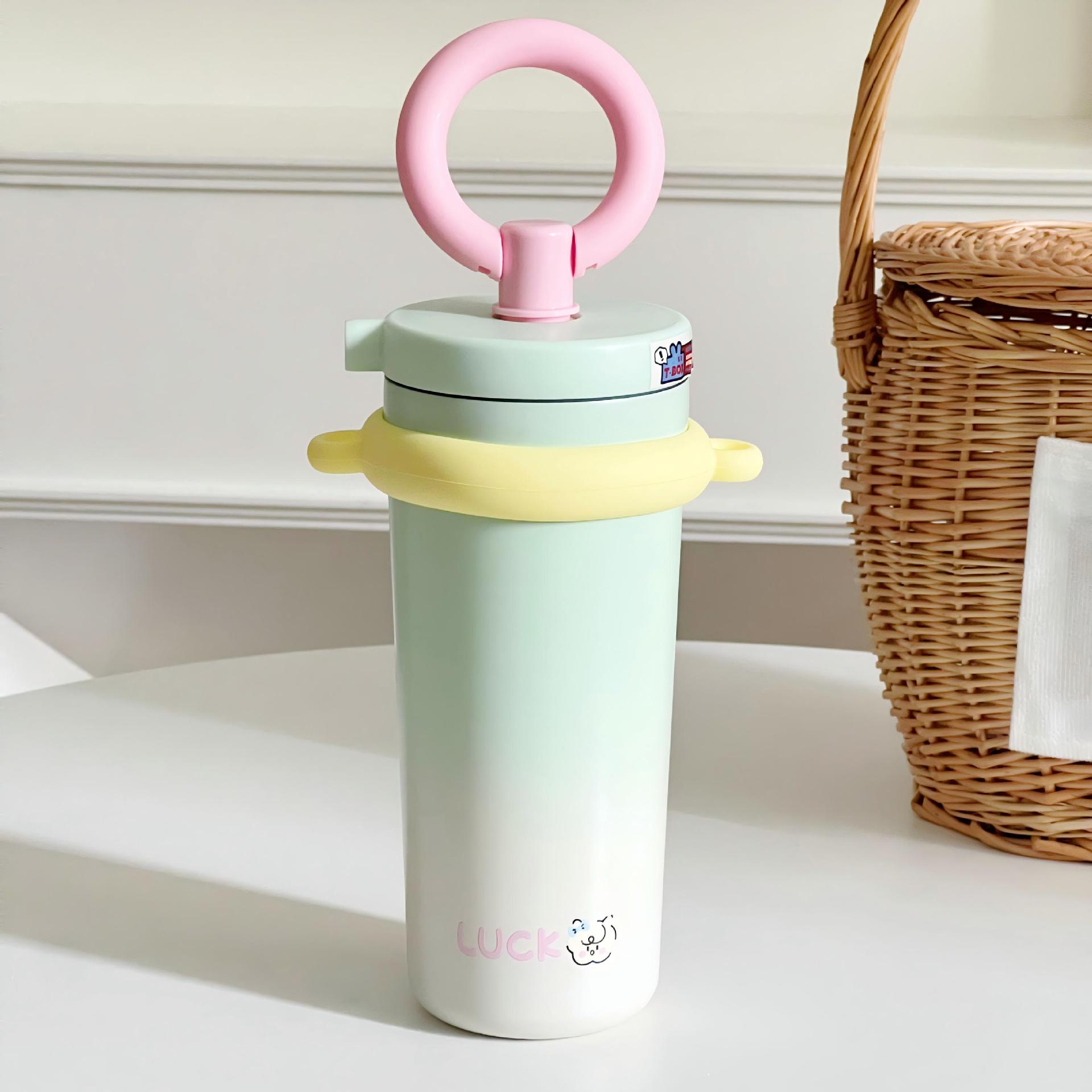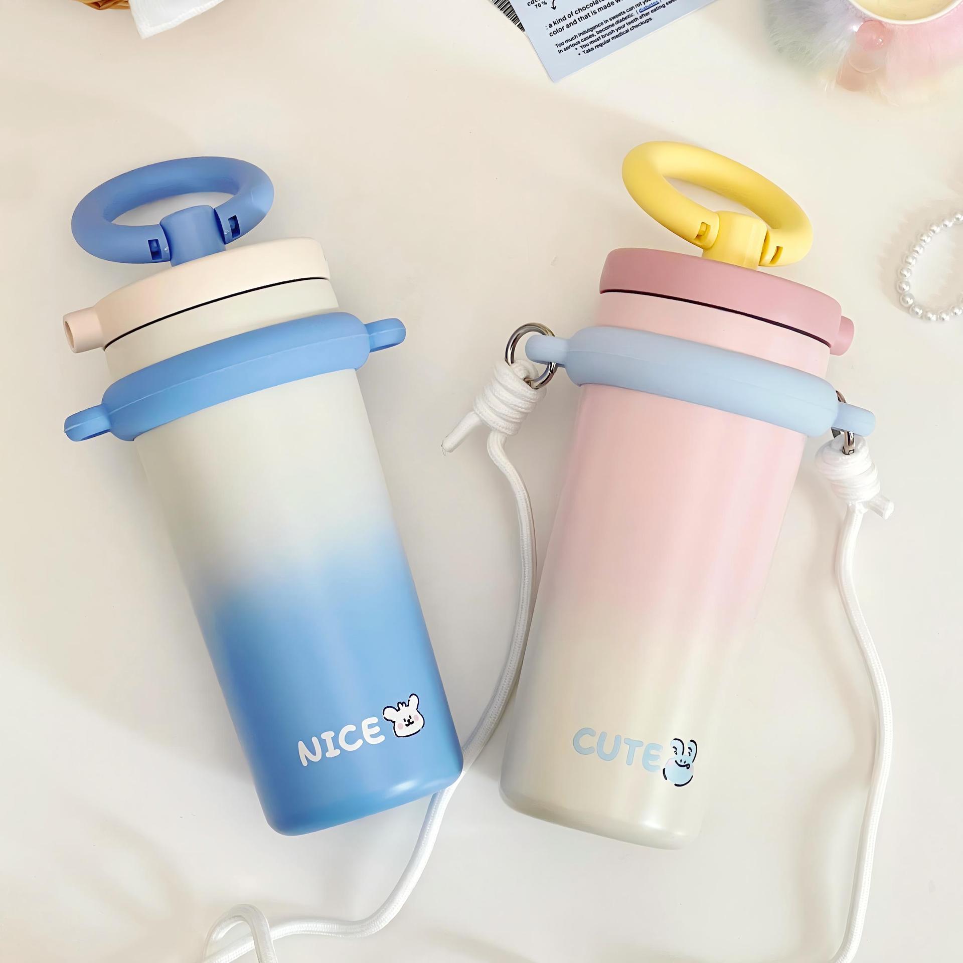 2024新款保温杯女生高颜值吸管杯大容量便携简约炫彩水杯学生少女