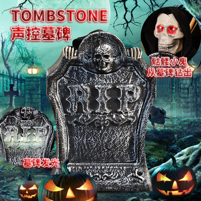 万圣节鬼节装饰墓碑鬼屋酒吧布景发光发声电动墓碑升降鬼摄影道具