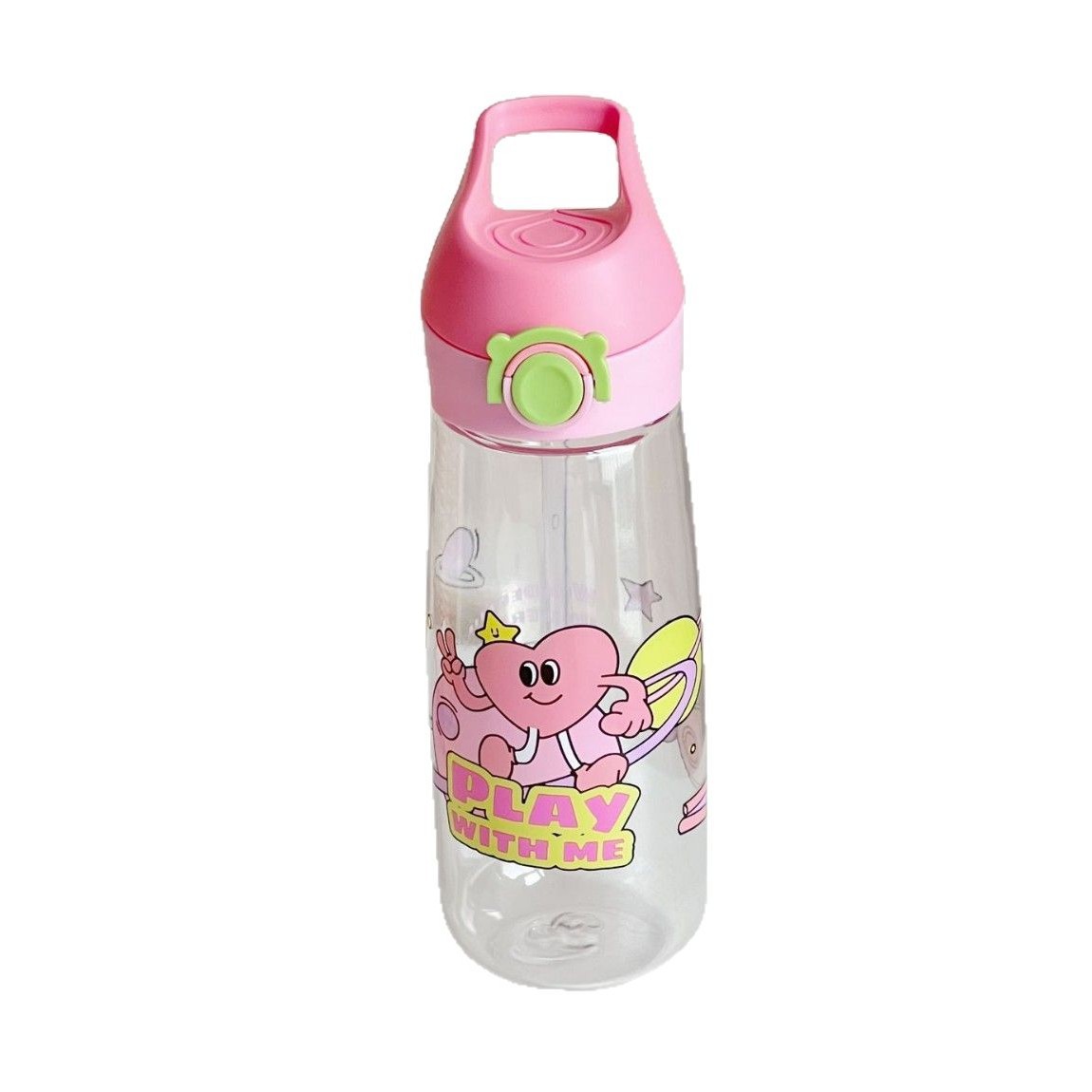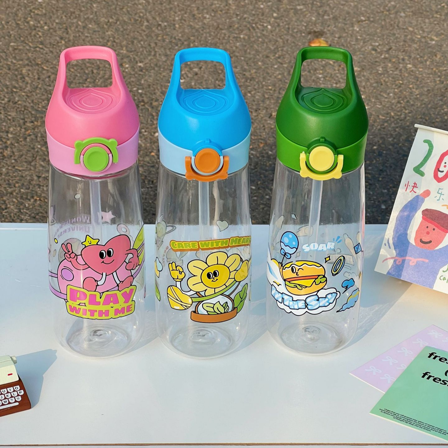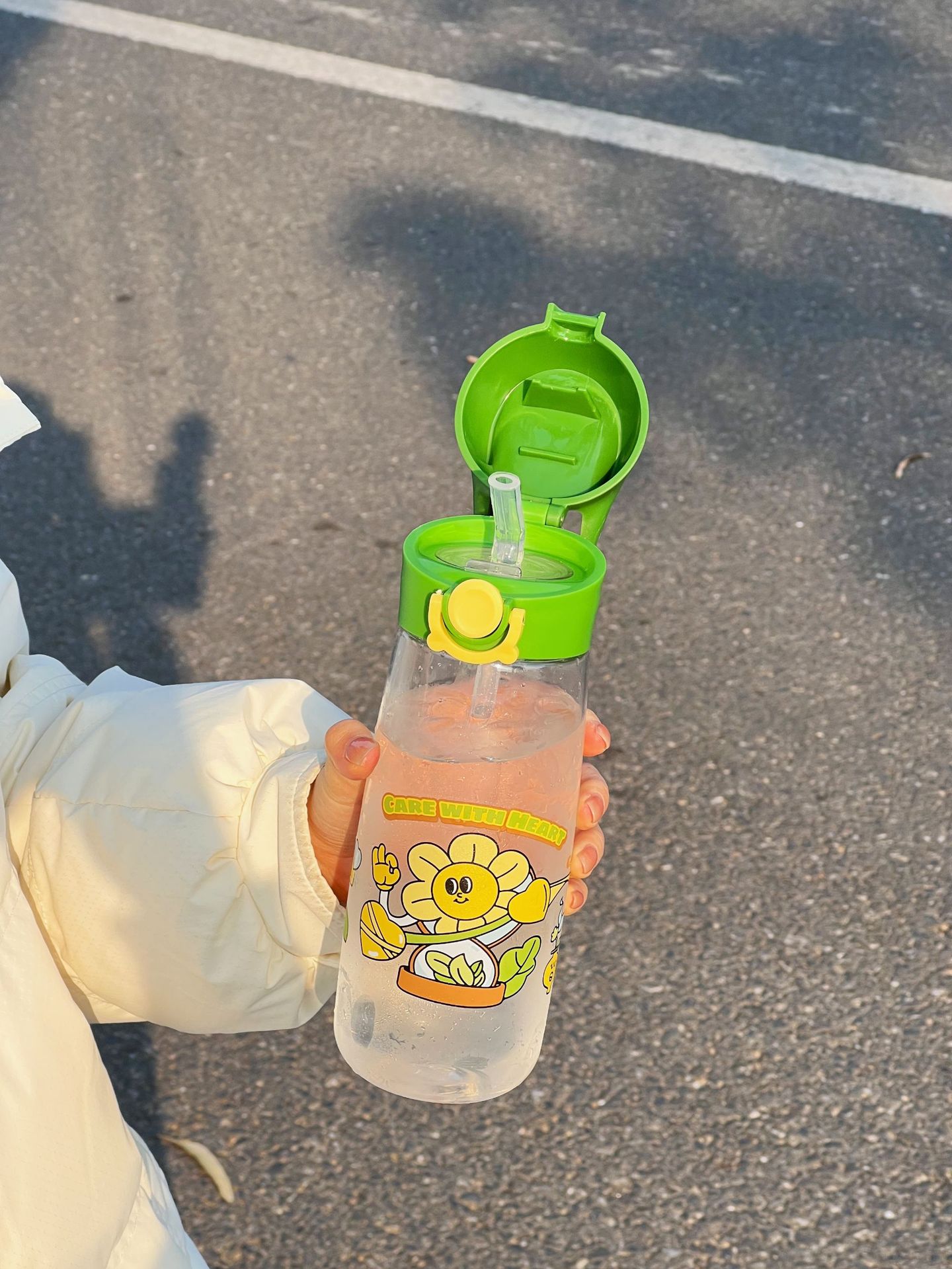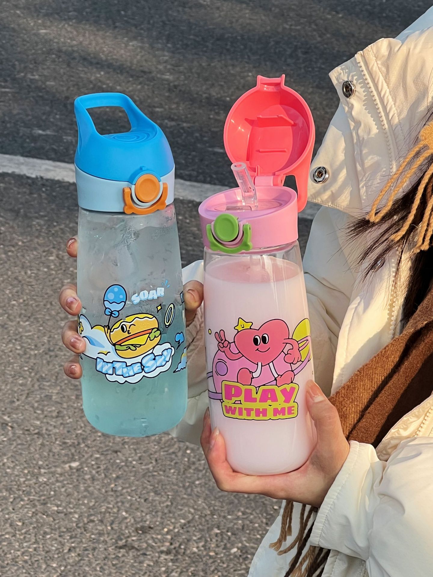 塑料水杯带吸管儿童水瓶可爱学生高颜值春夏手提携便女夏网红杯子