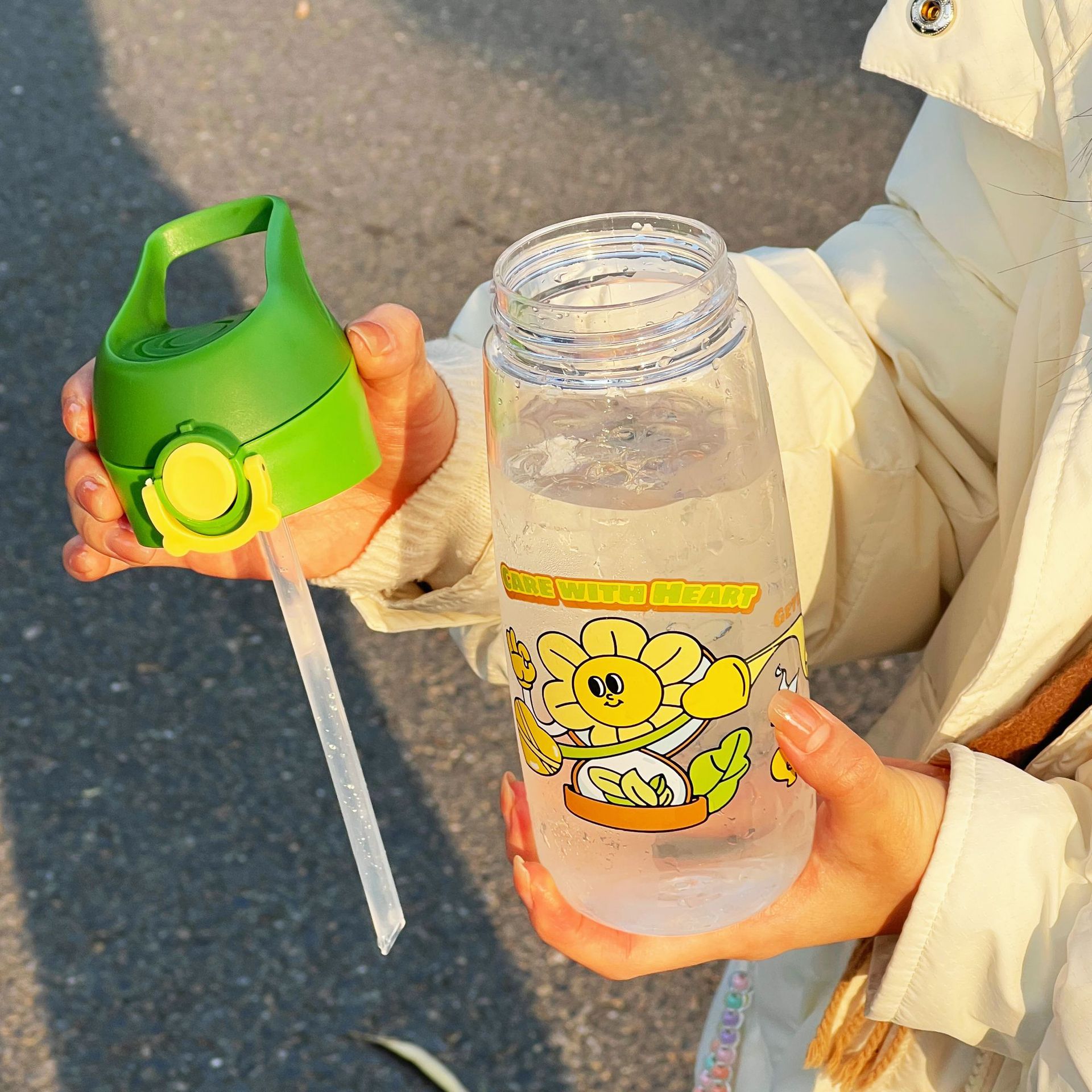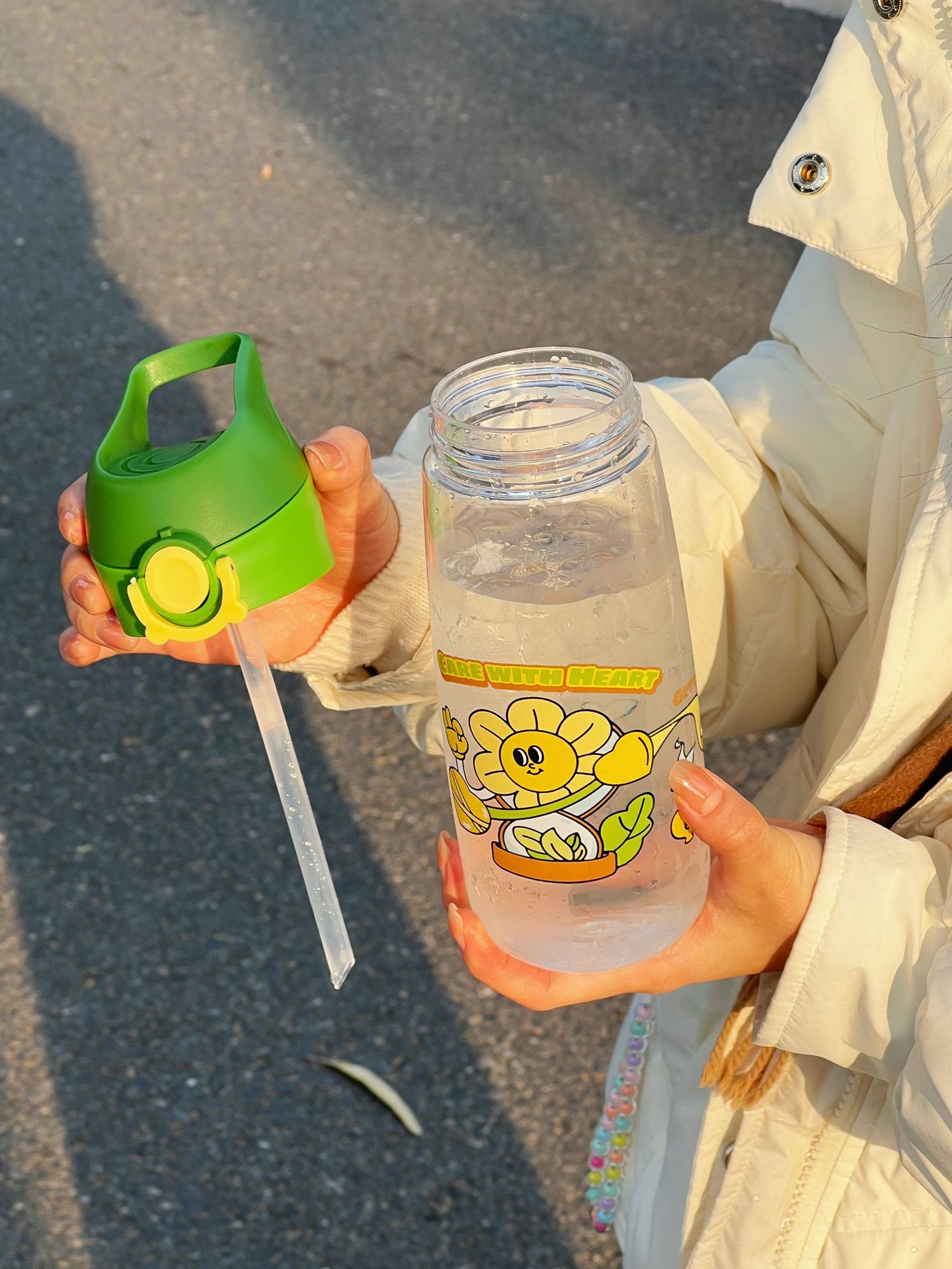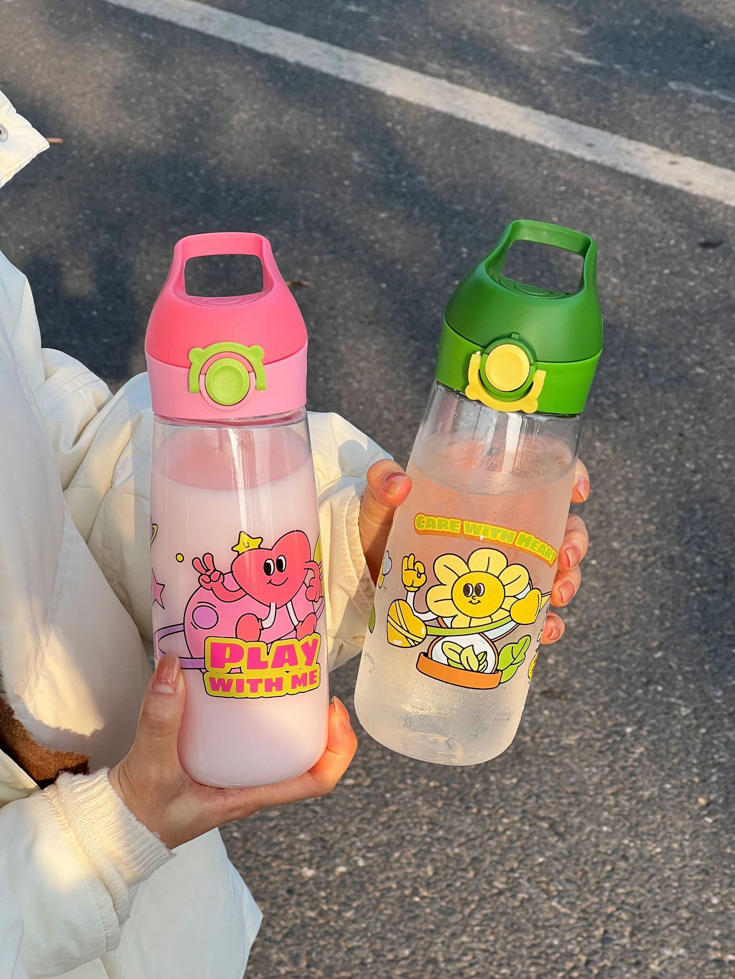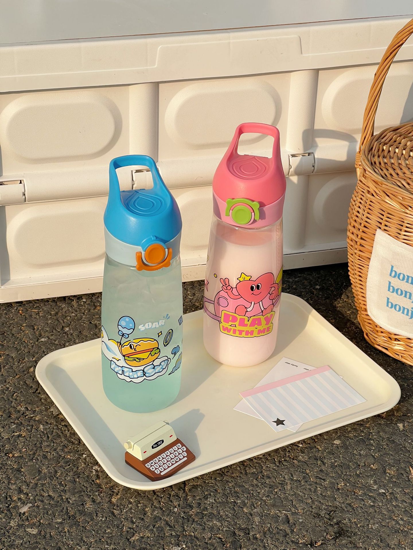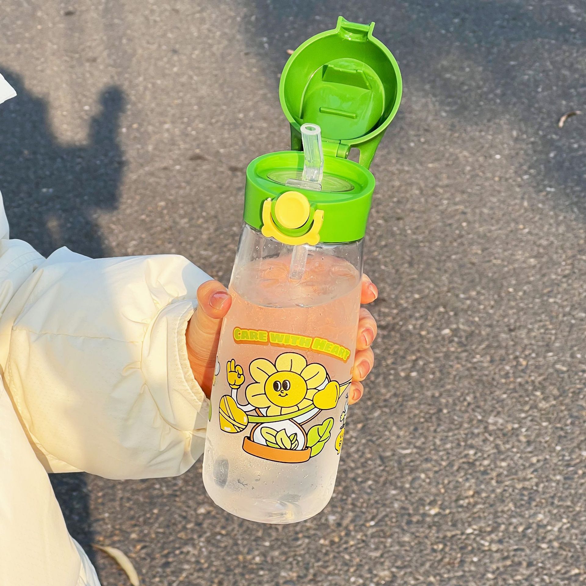 塑料水杯带吸管儿童水瓶可爱学生高颜值春夏手提携便女夏网红杯子