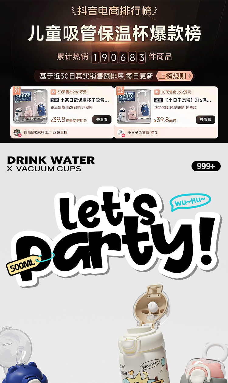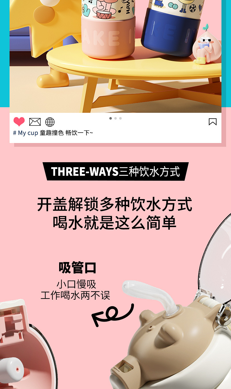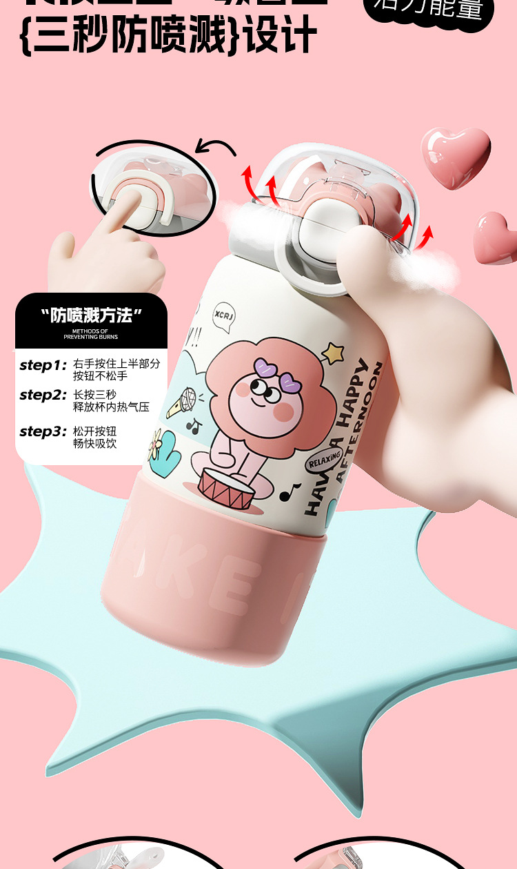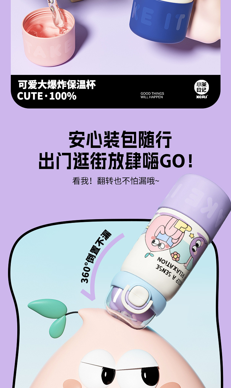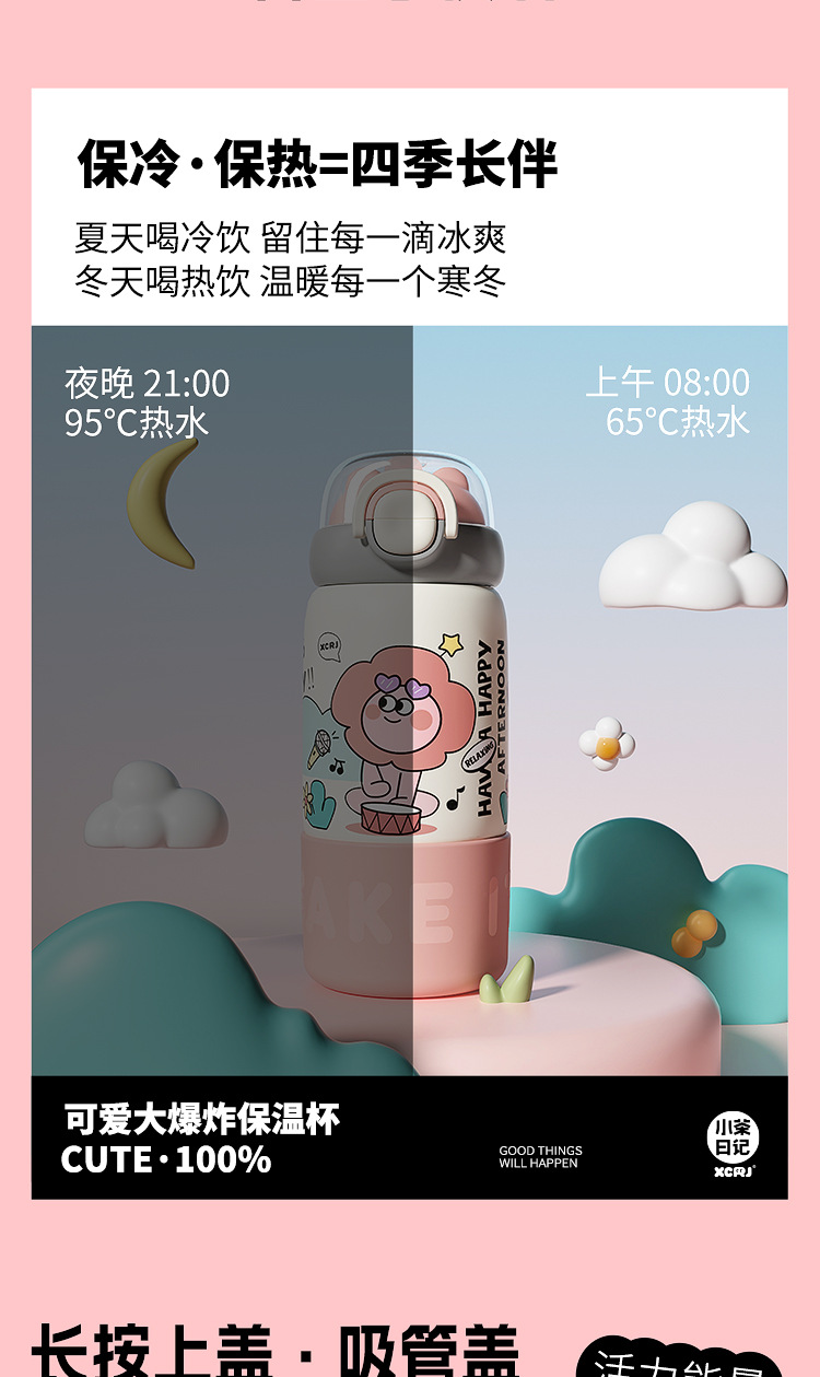 双饮儿童保温杯不锈钢316杯子学生可爱大容量便携小茶日记水杯