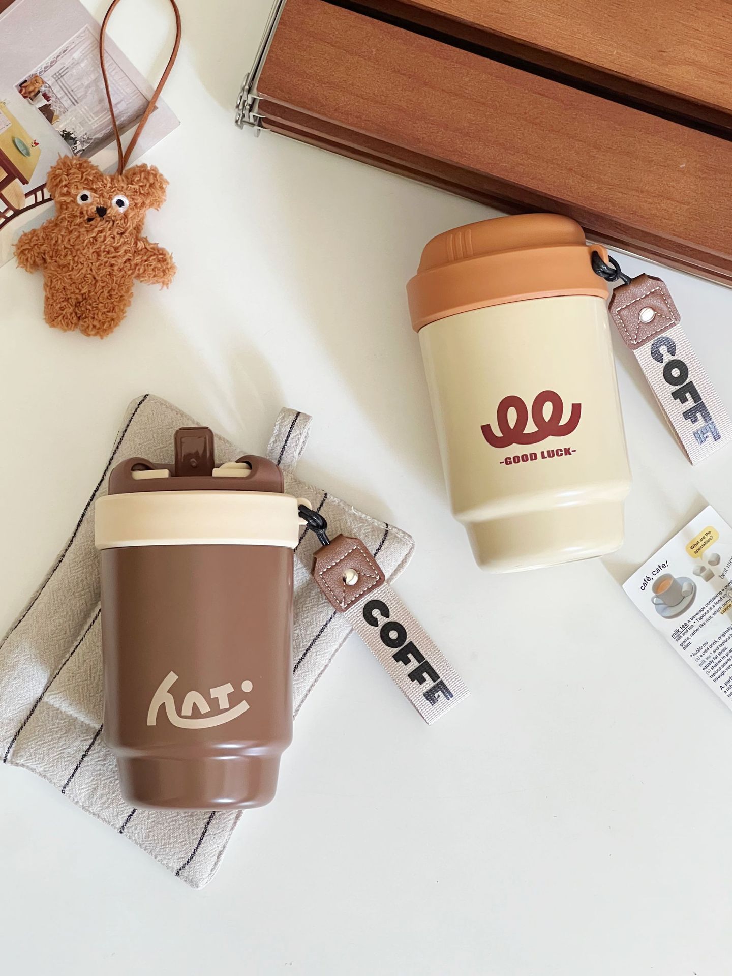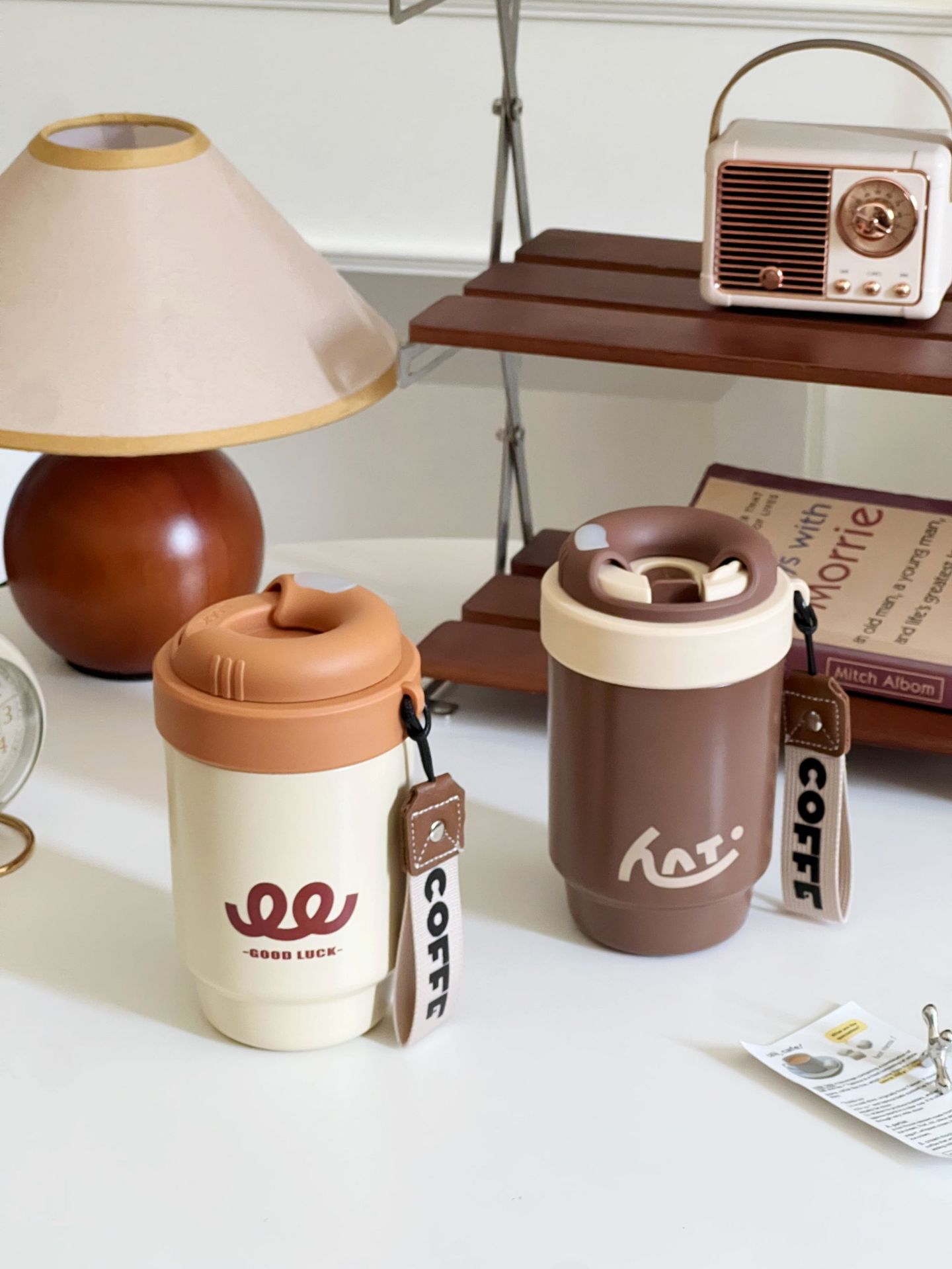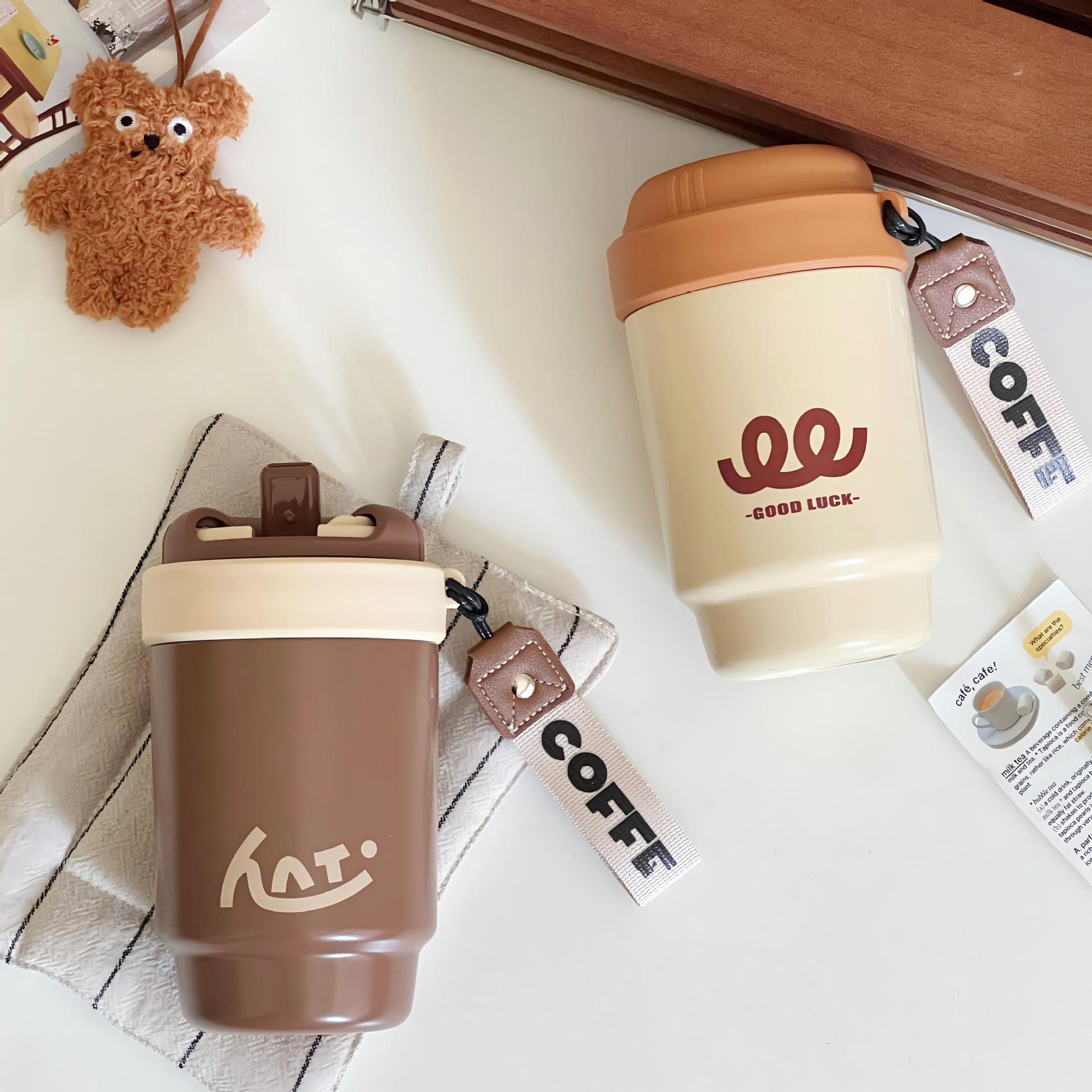 韩式ins保温杯不锈钢车载吸管咖啡杯情侣女生随行便捷 新款水杯