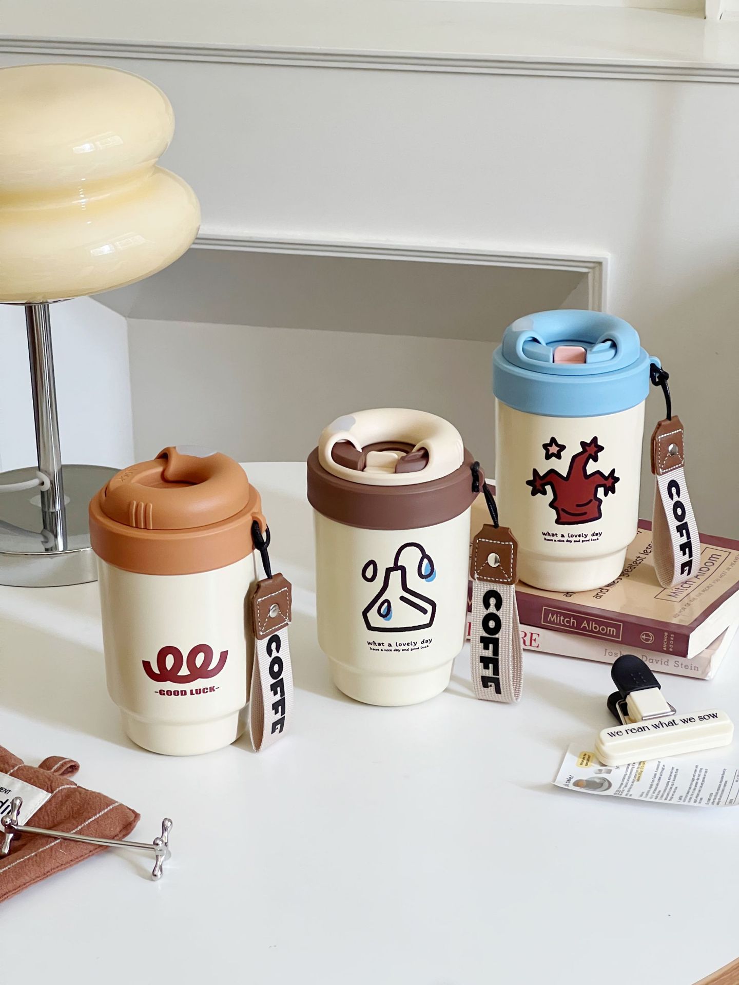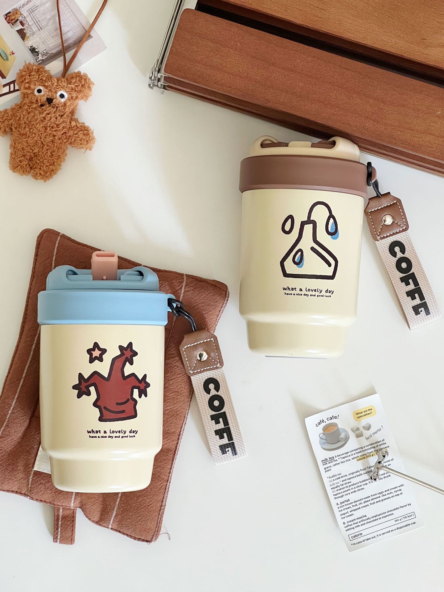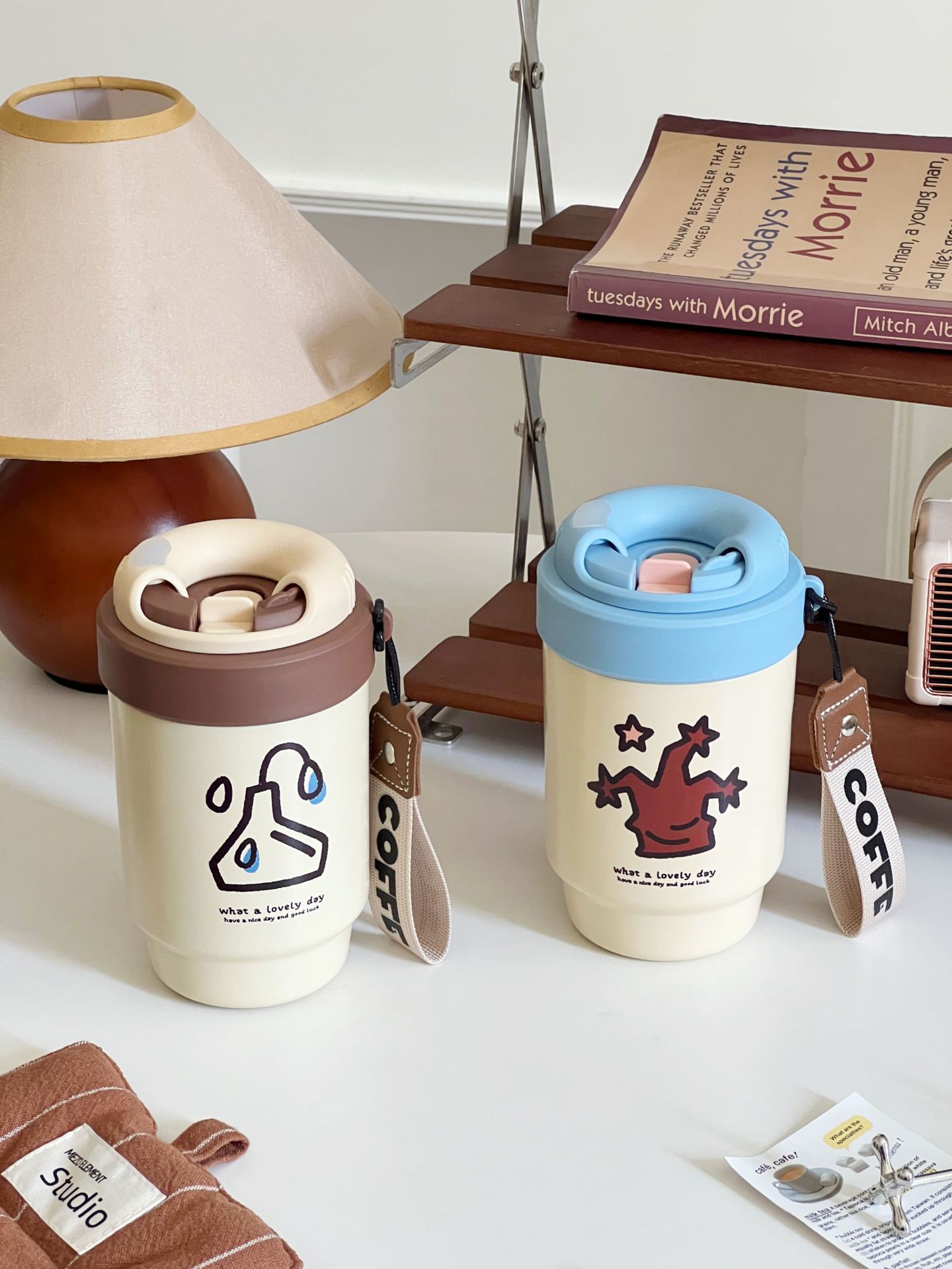 韩式ins保温杯不锈钢车载吸管咖啡杯情侣女生随行便捷 新款水杯