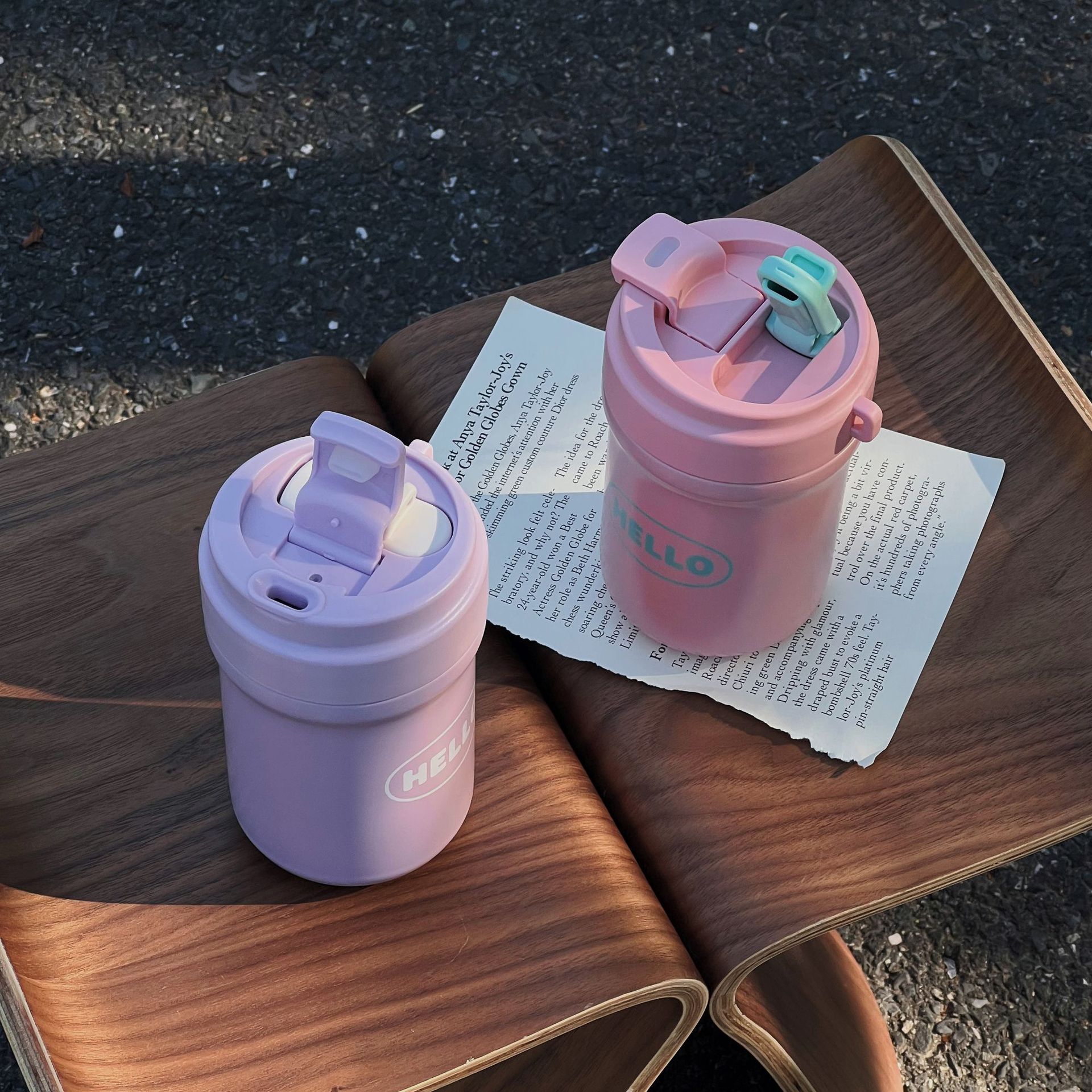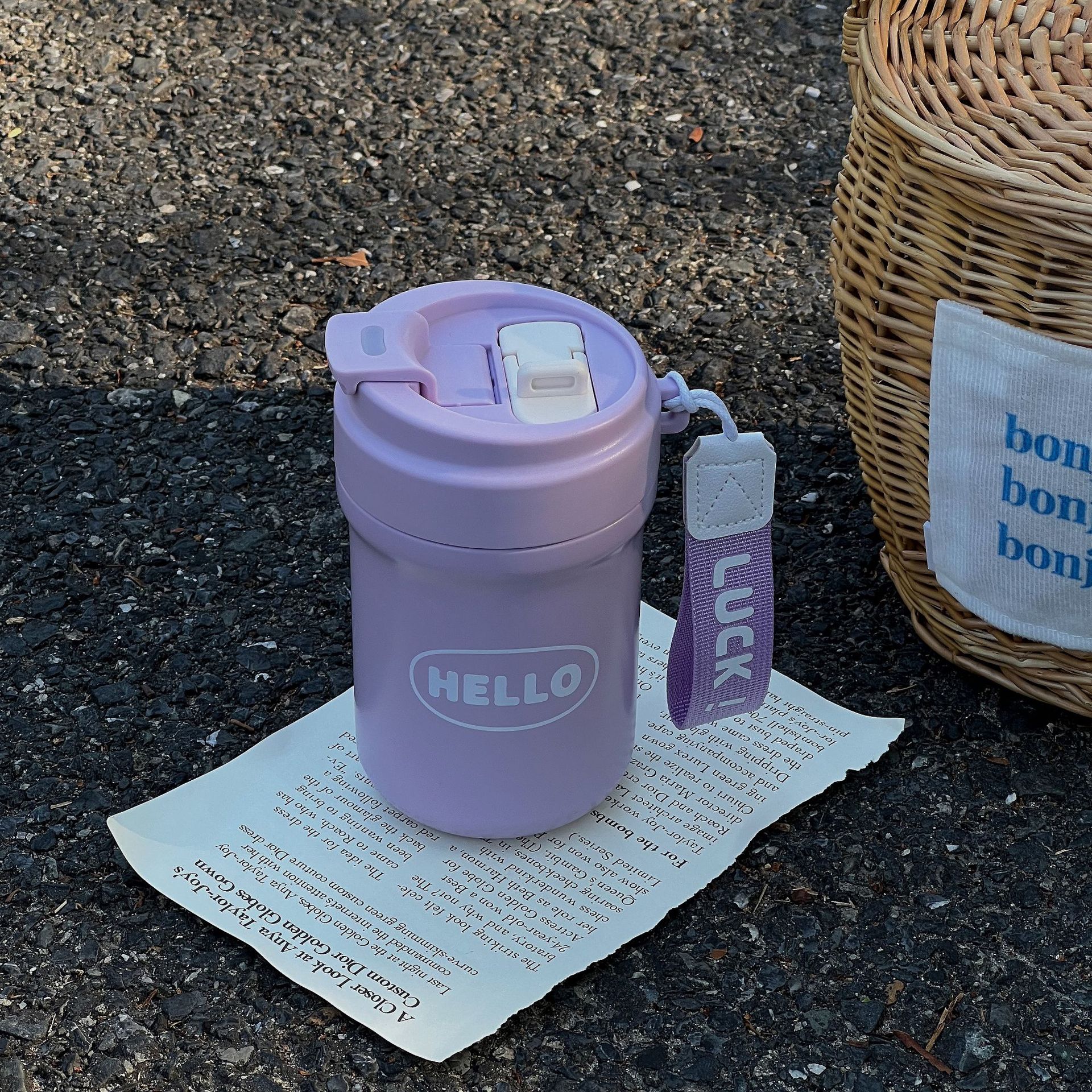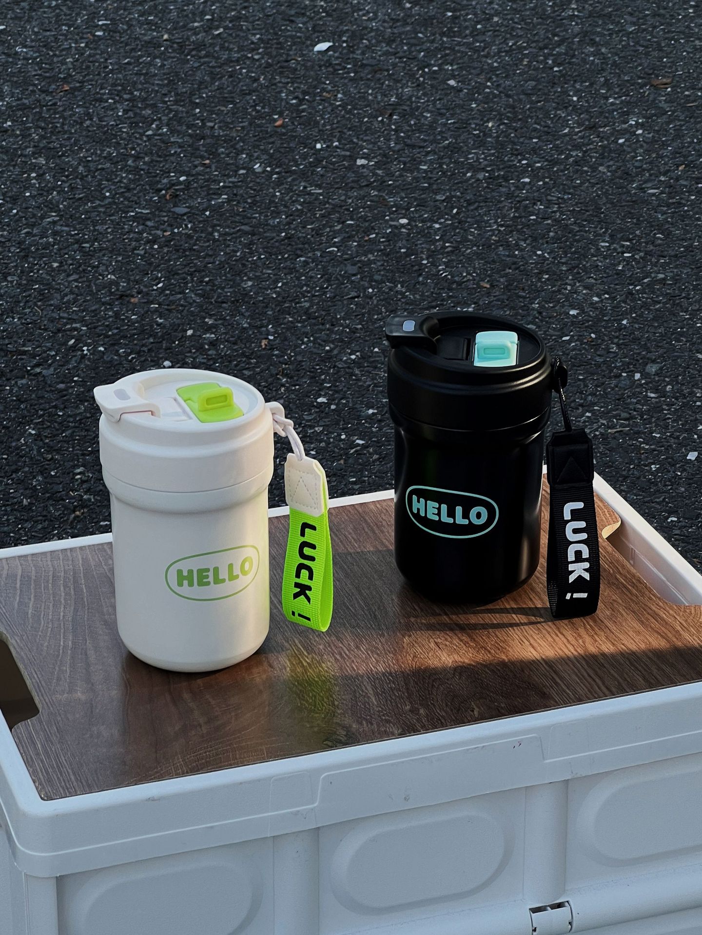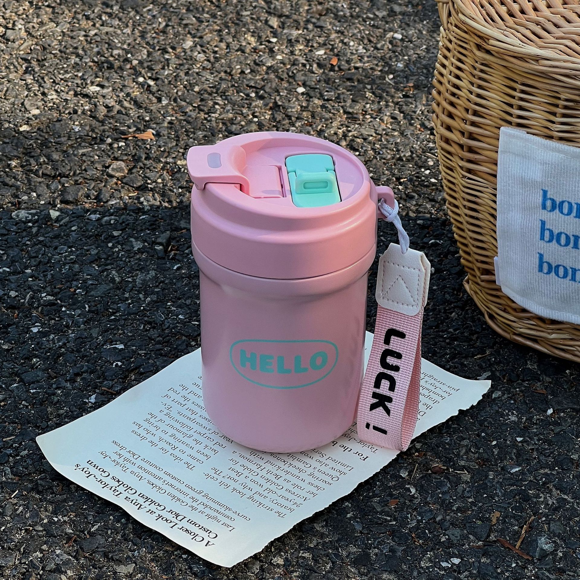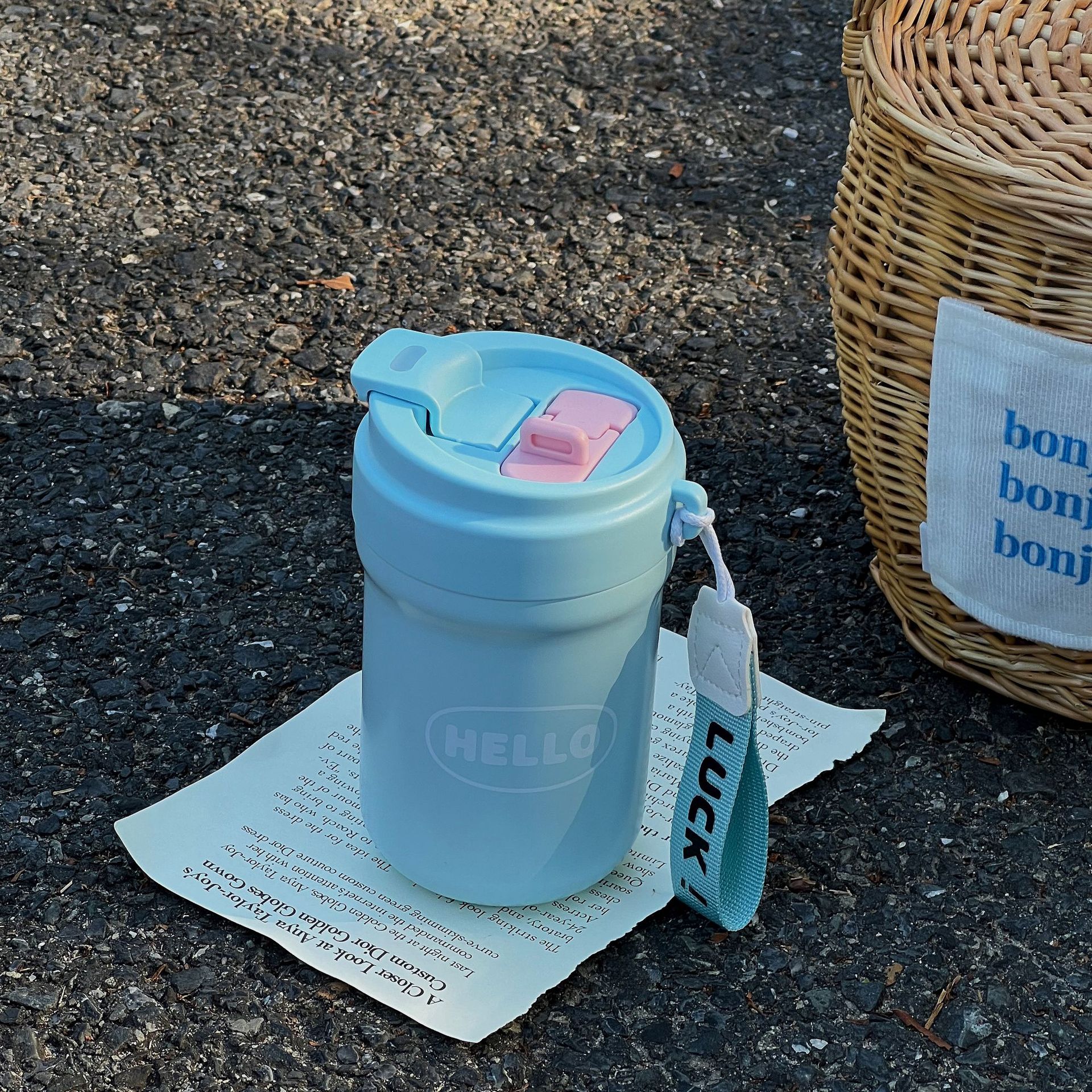 双饮咖啡杯高颜值保温杯316不锈钢 女生便携可爱提绳便携水杯ins