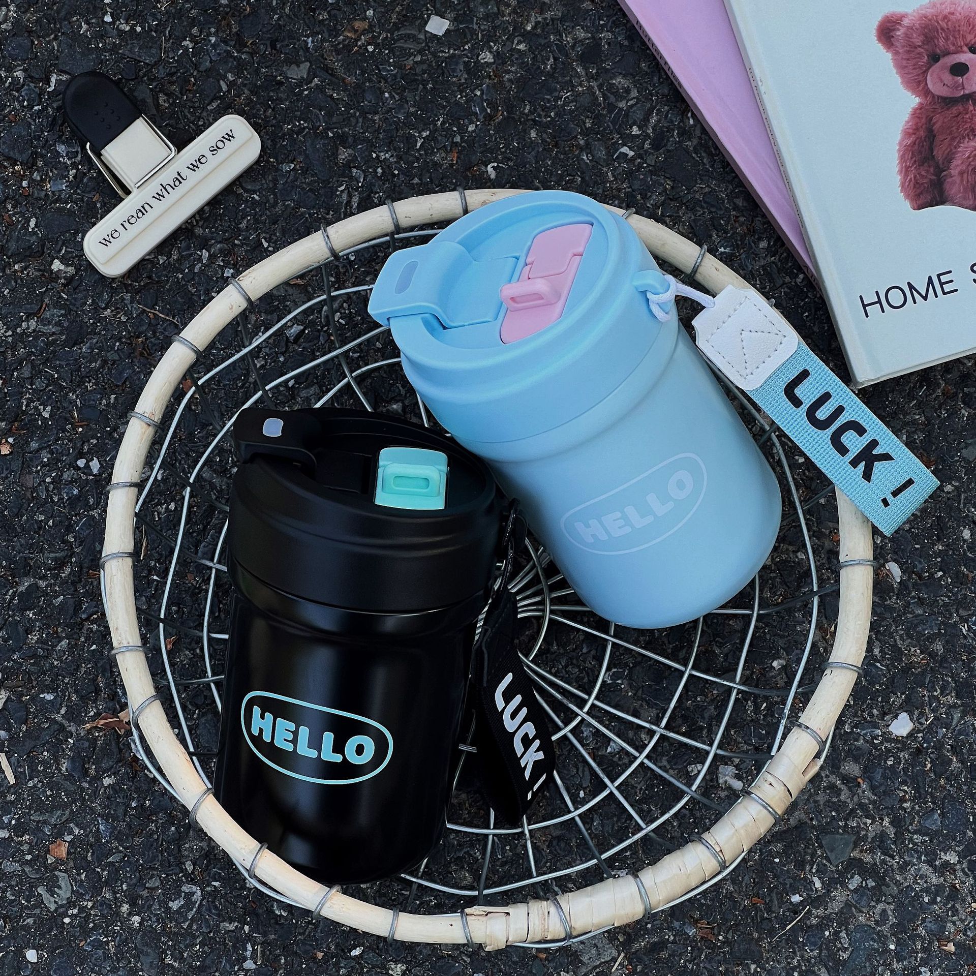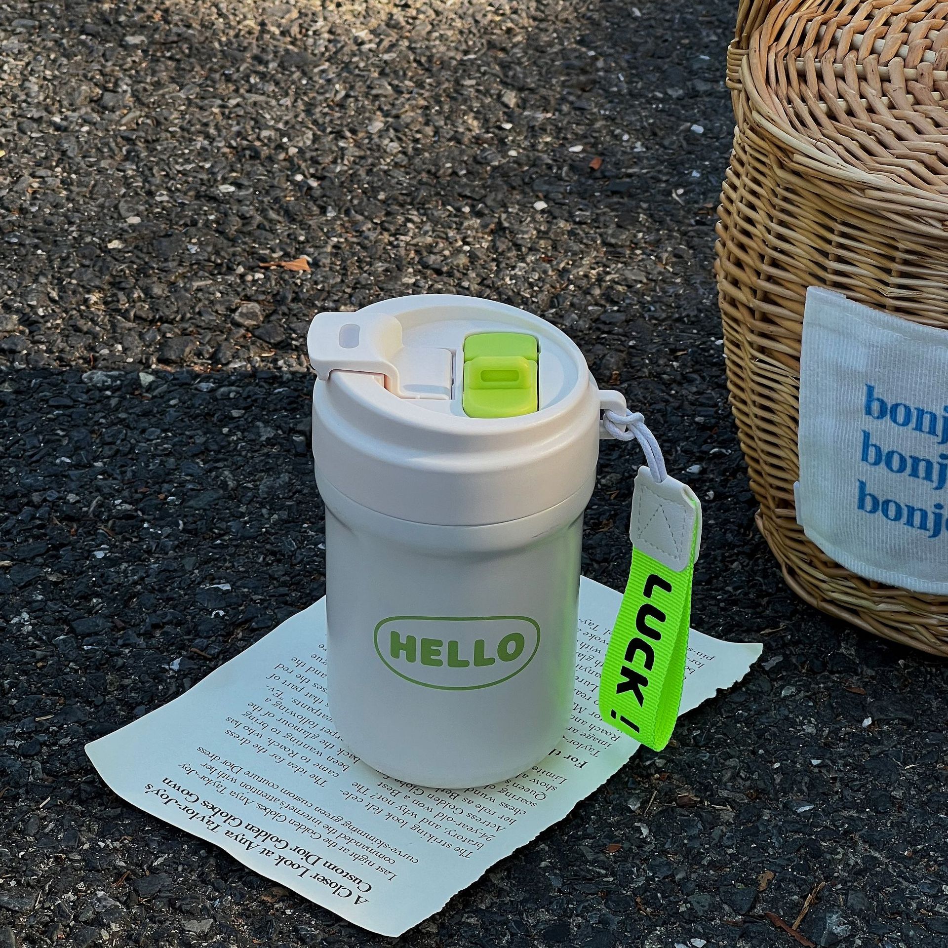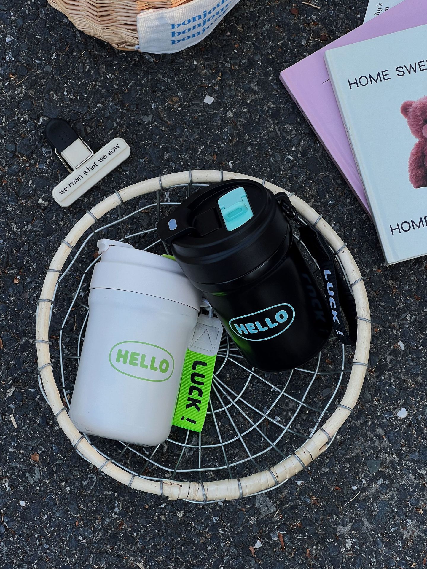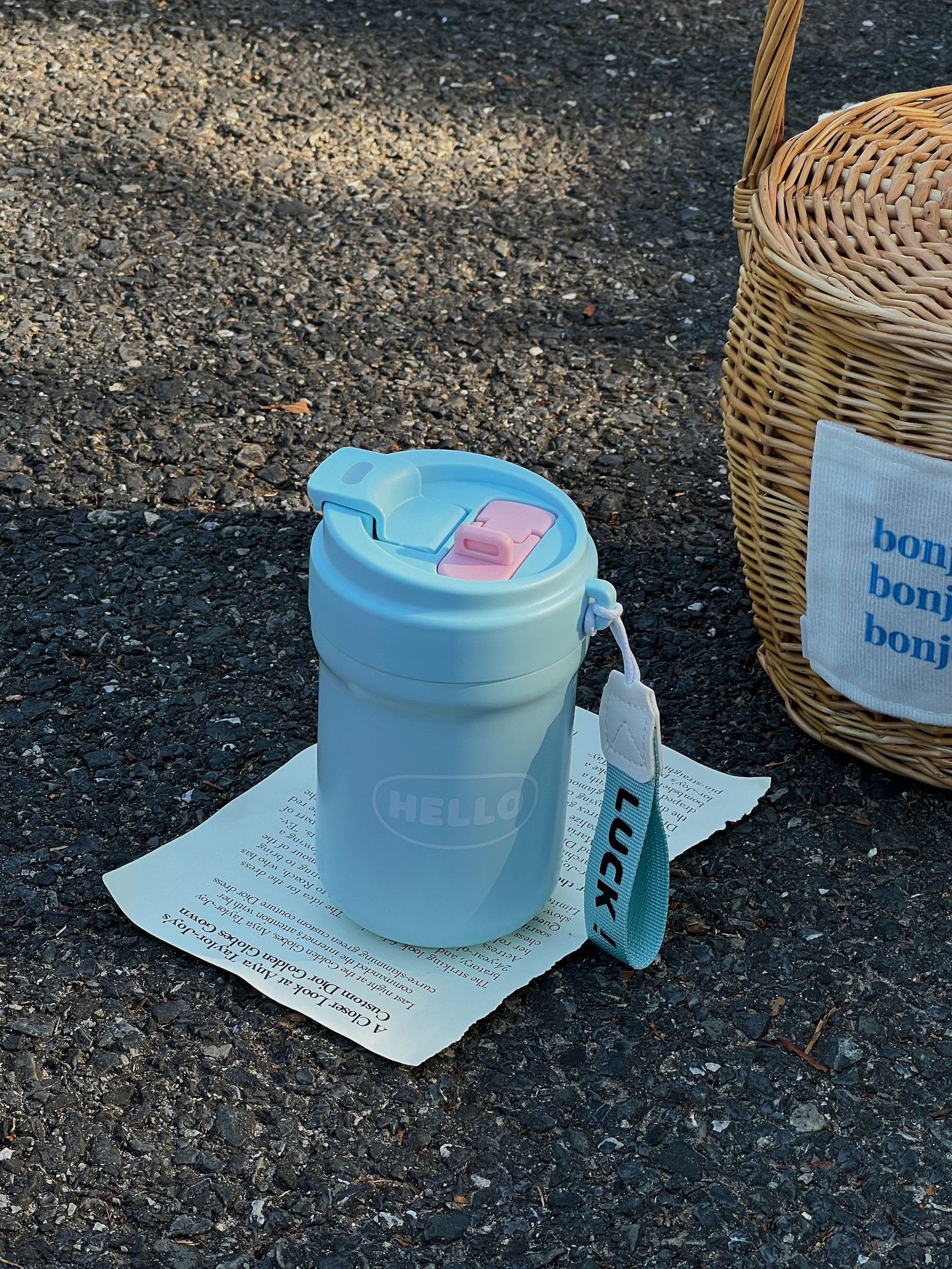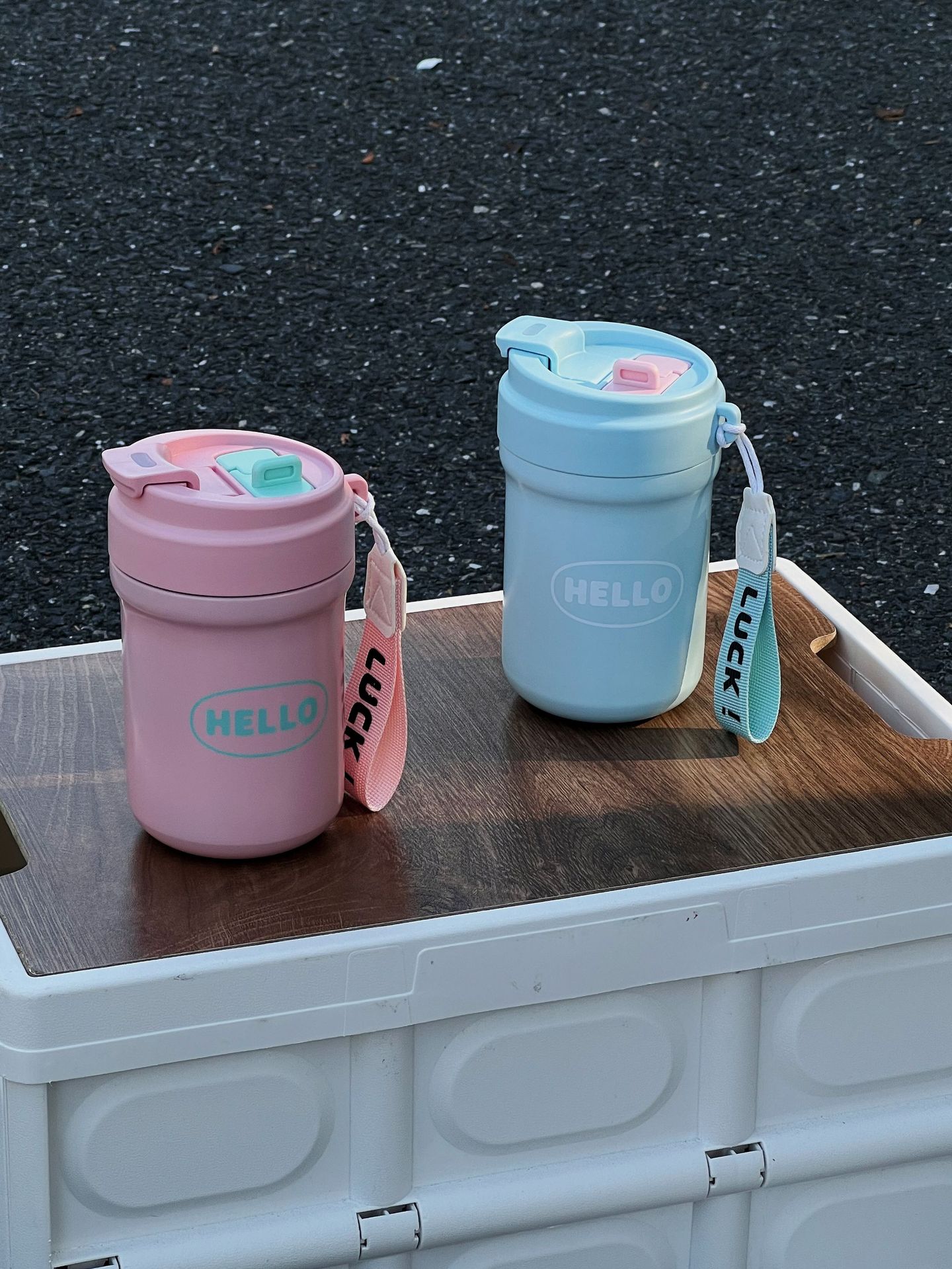 双饮咖啡杯高颜值保温杯316不锈钢 女生便携可爱提绳便携水杯ins
