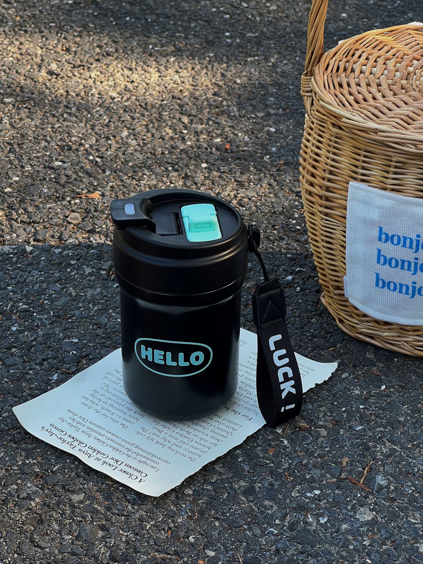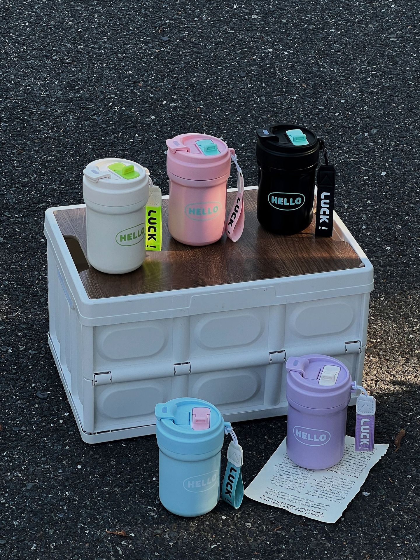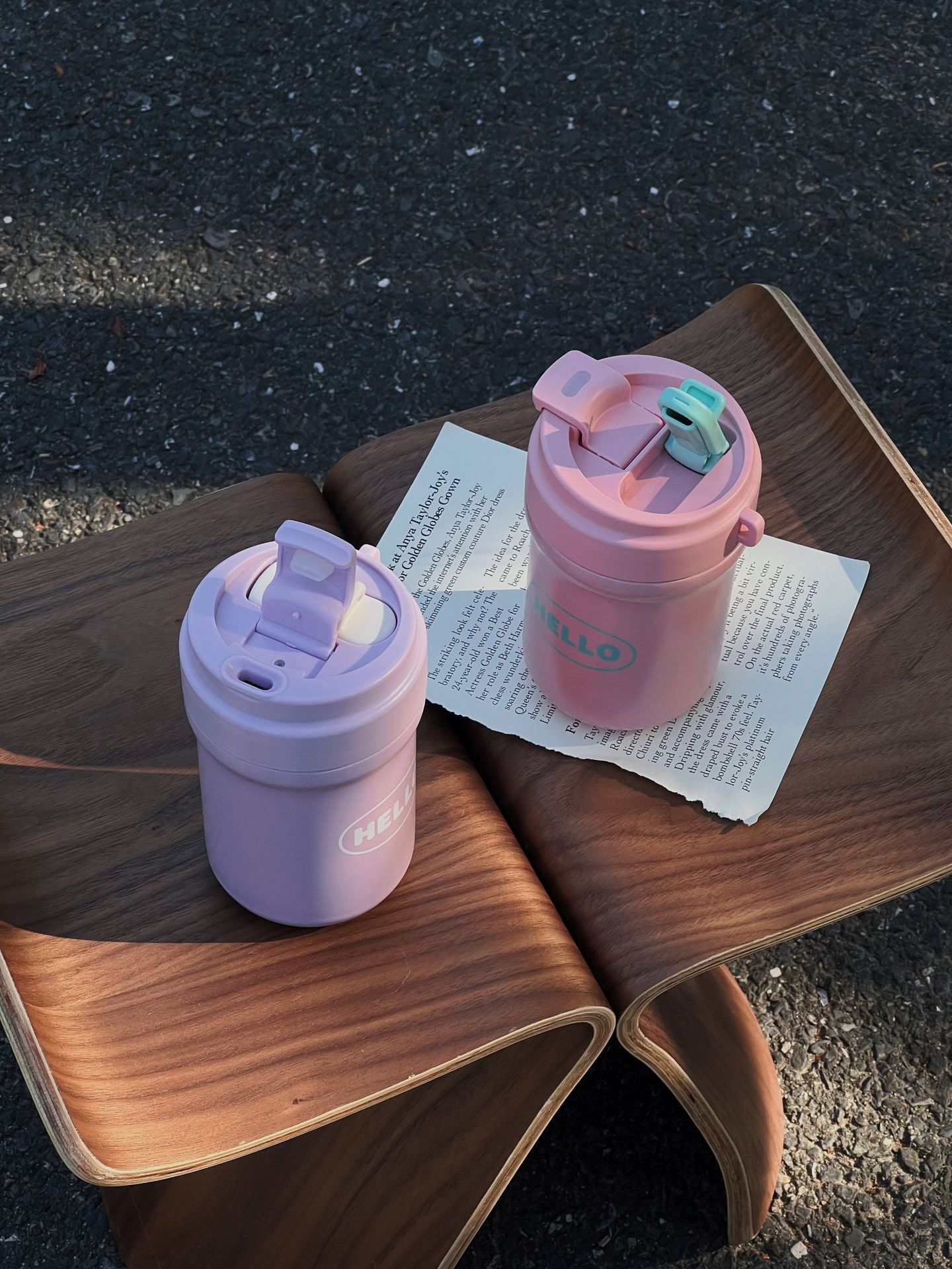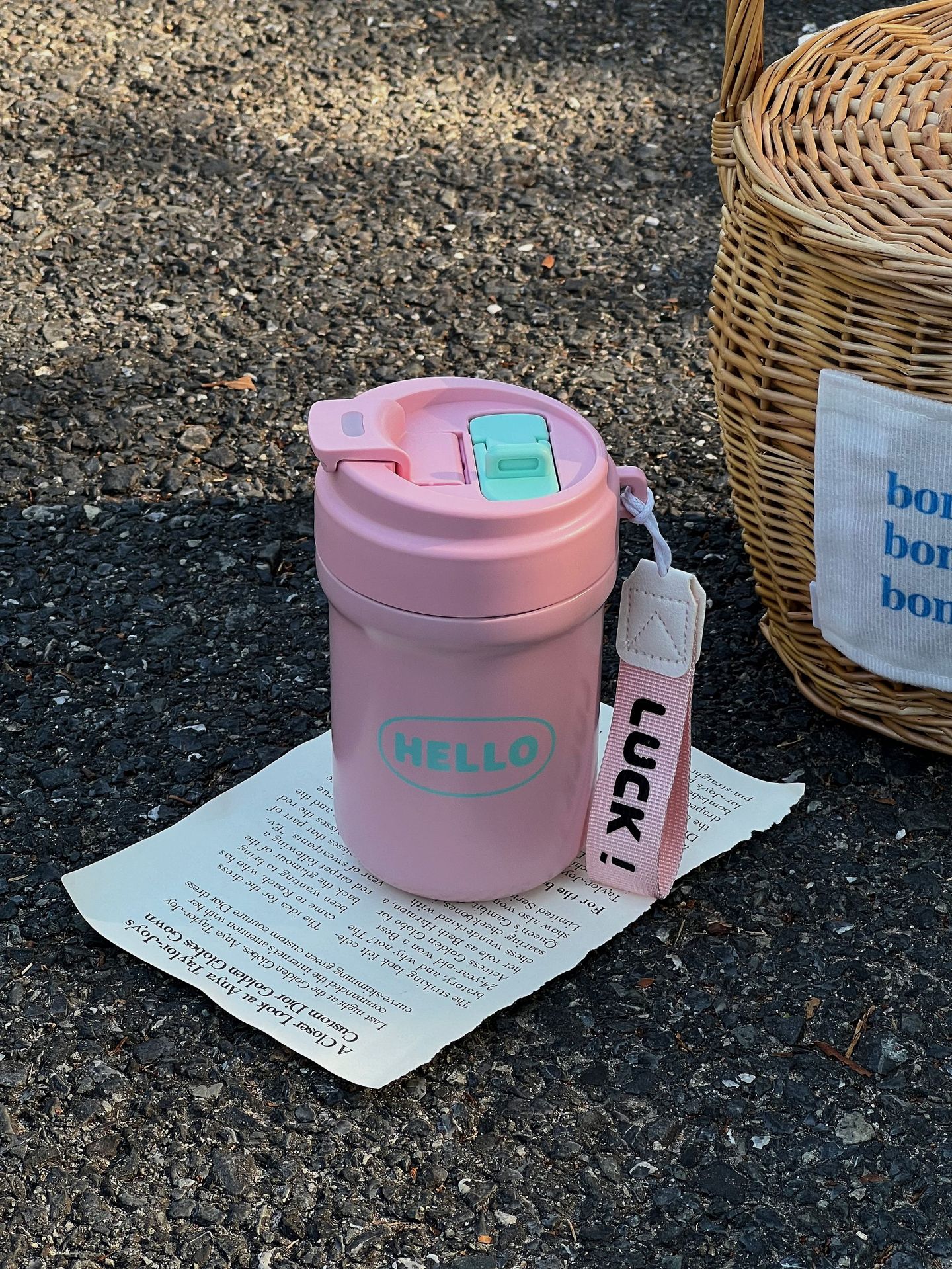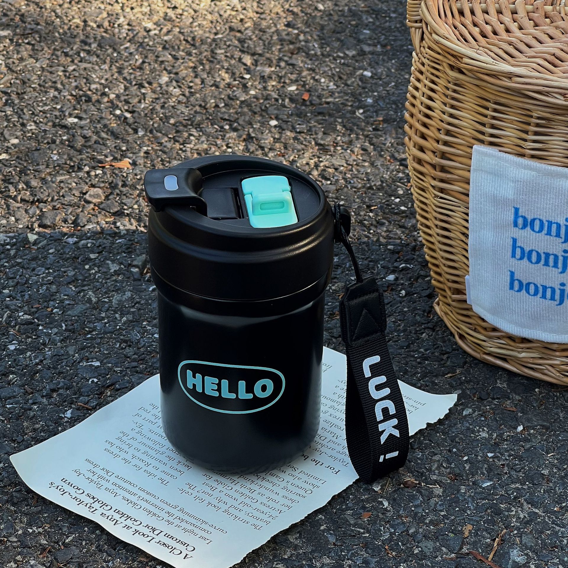 双饮咖啡杯高颜值保温杯316不锈钢 女生便携可爱提绳便携水杯ins
