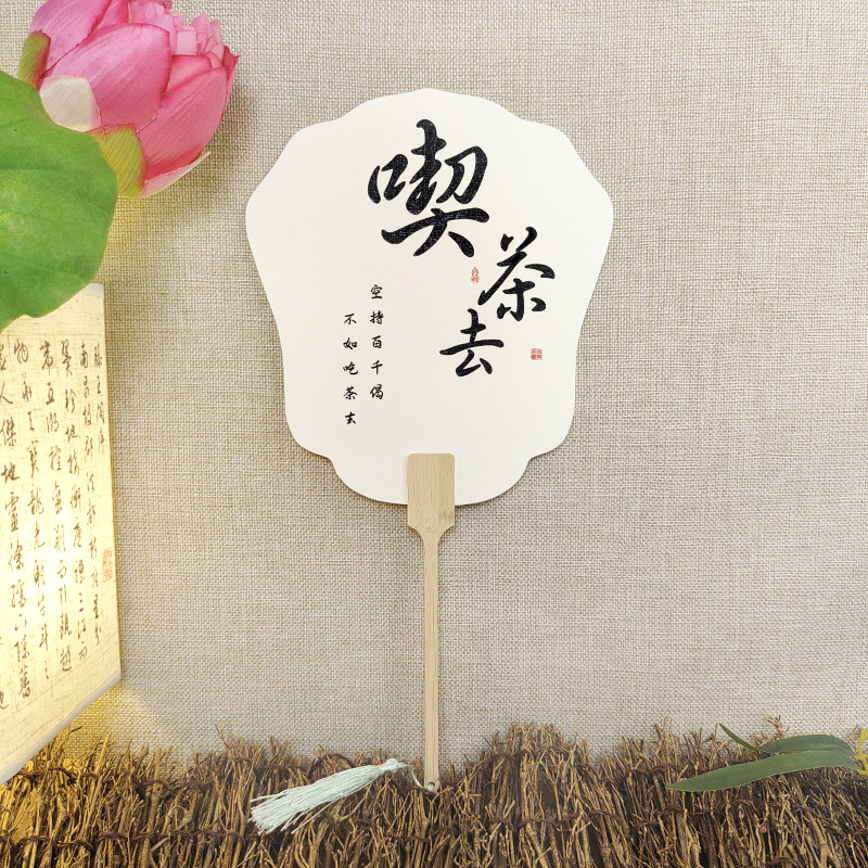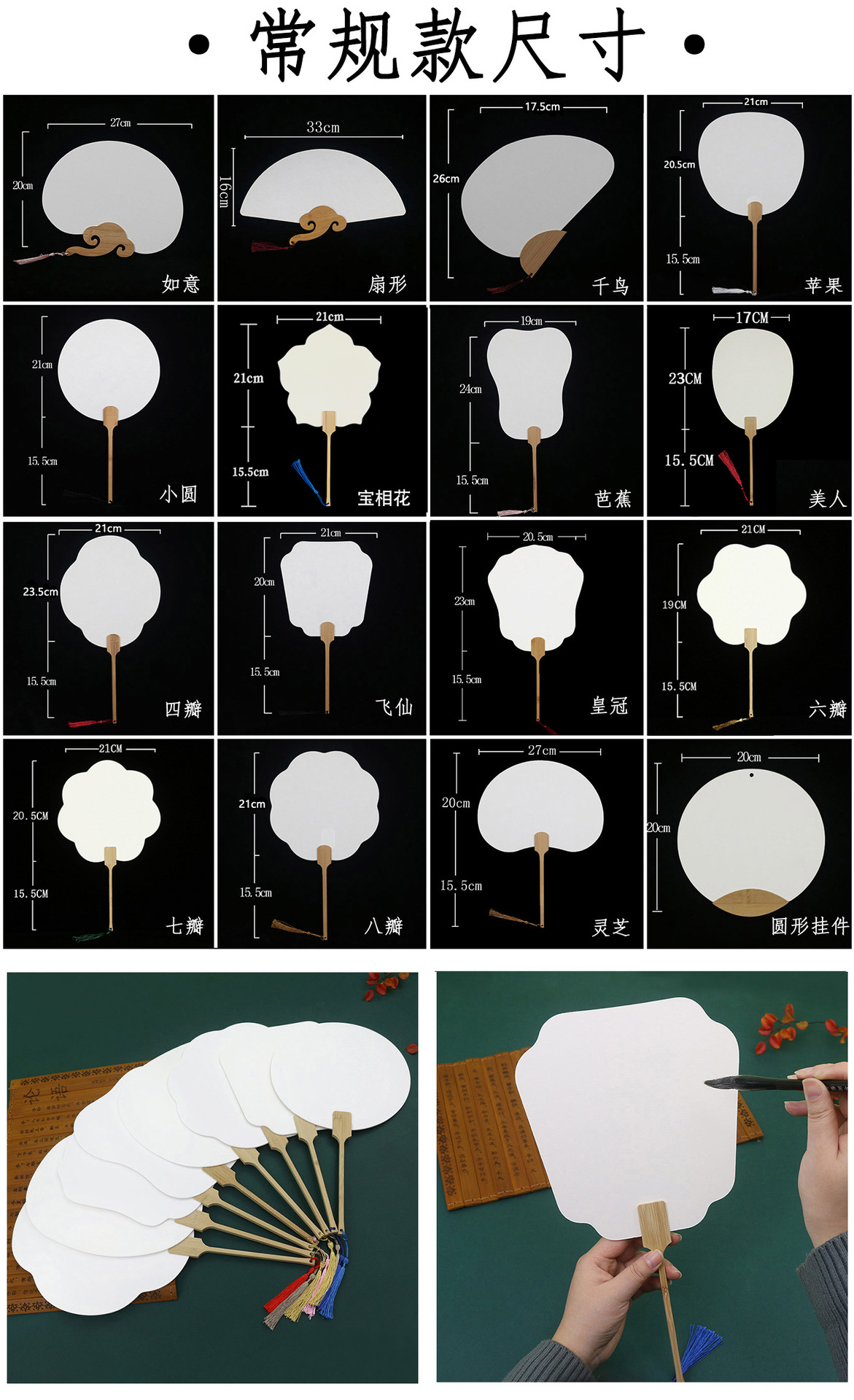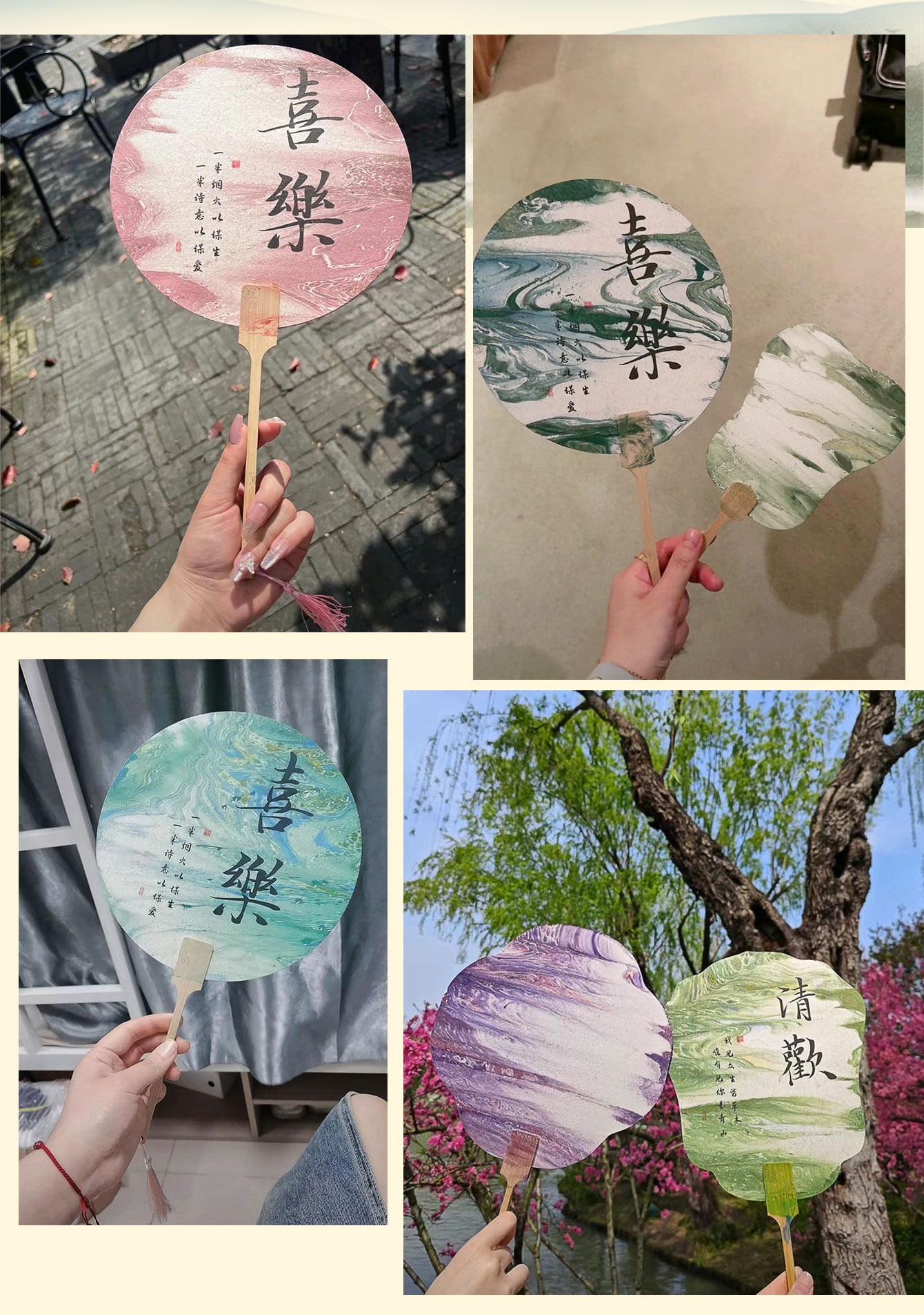 漆扇扇子带字团扇材料包全套文字景区diy摆摊漂漆扇专用空白扇PVC