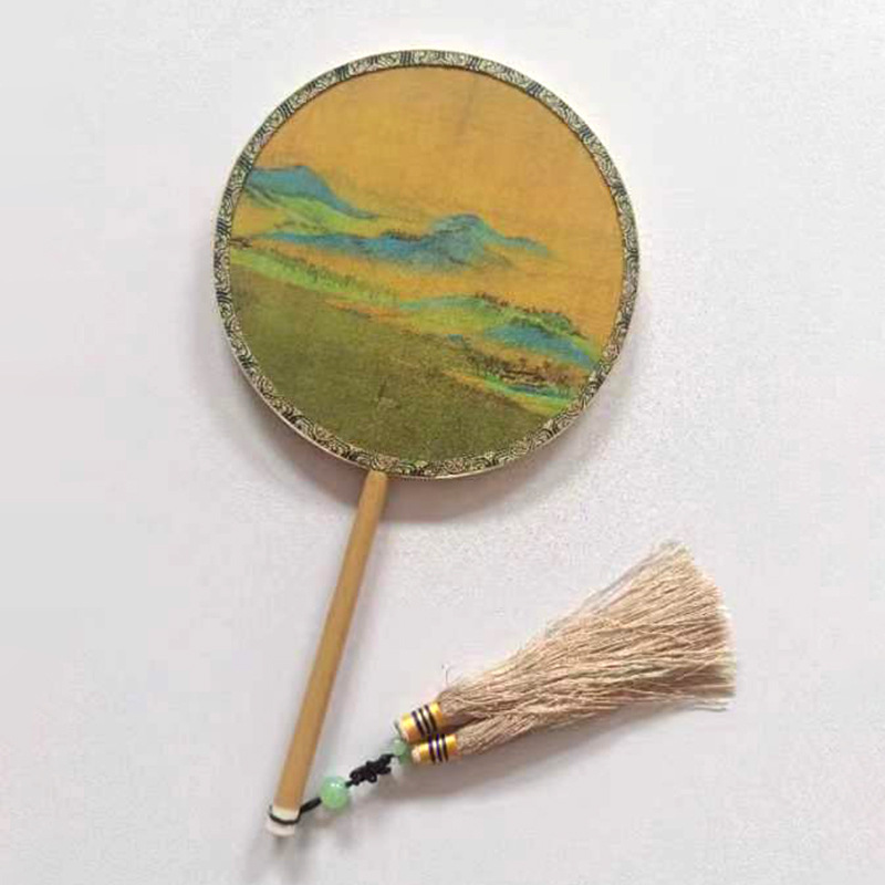 半透明千里江山图团扇古风扇子批发摆摊汉服旗袍扇子中式舞蹈团扇