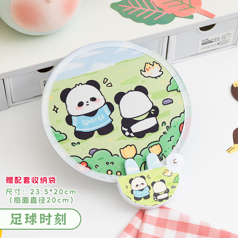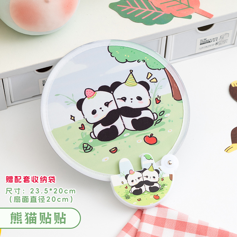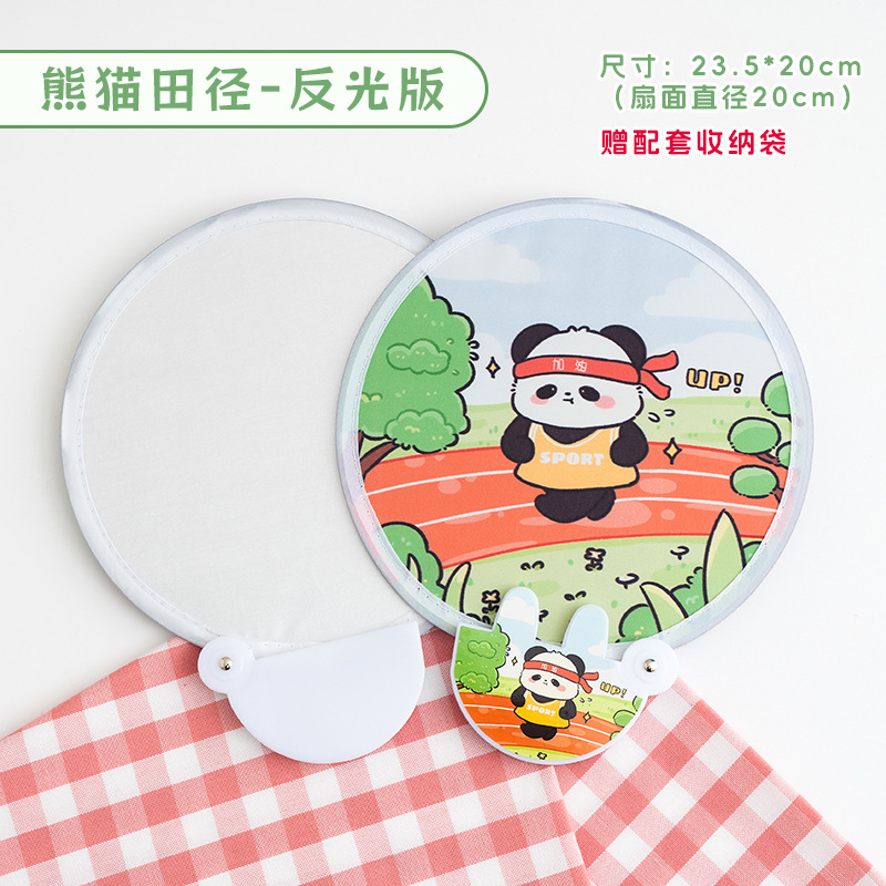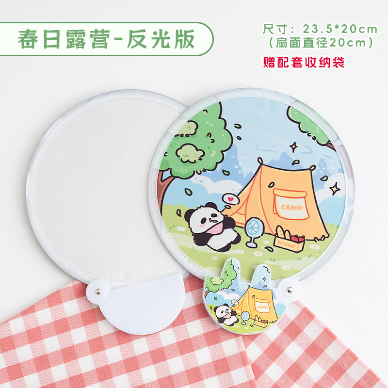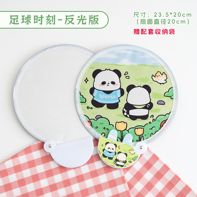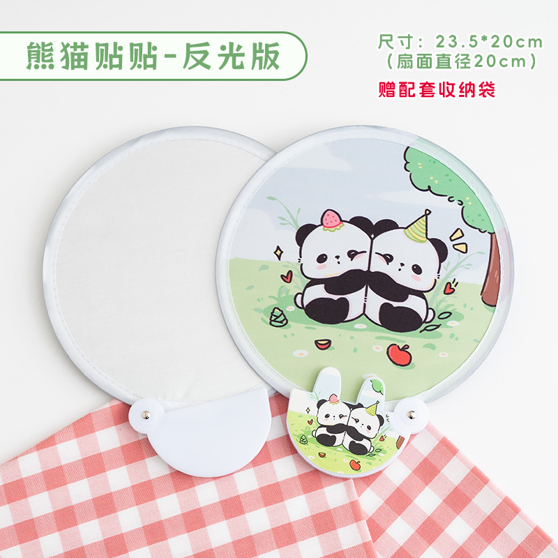 反光版熊猫团扇可爱卡通折叠小扇子便携迷你口袋扇高颜值ins圆扇