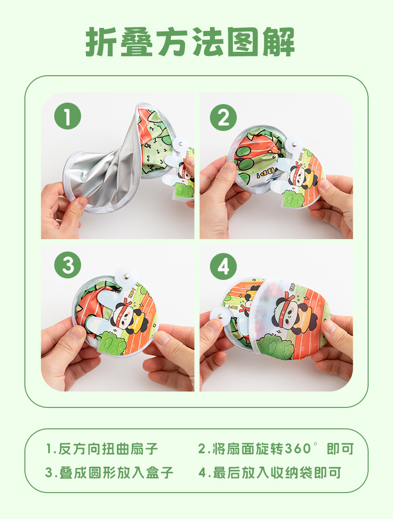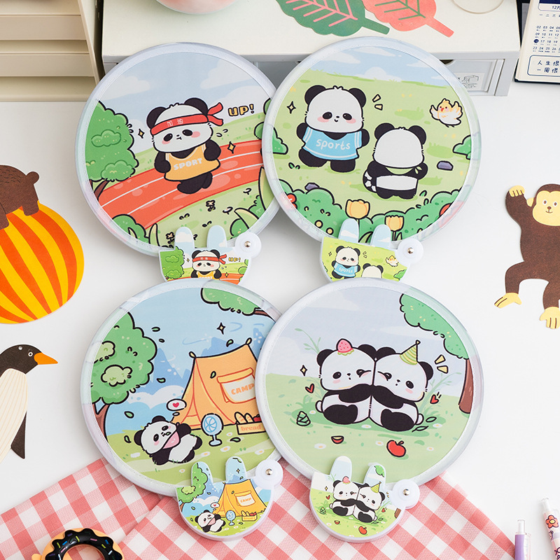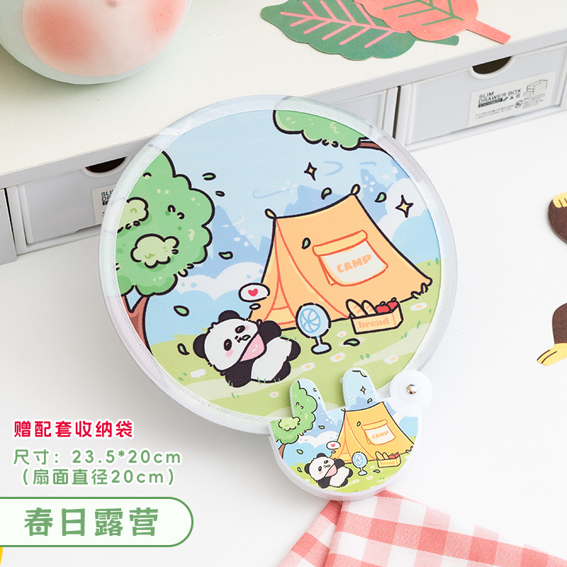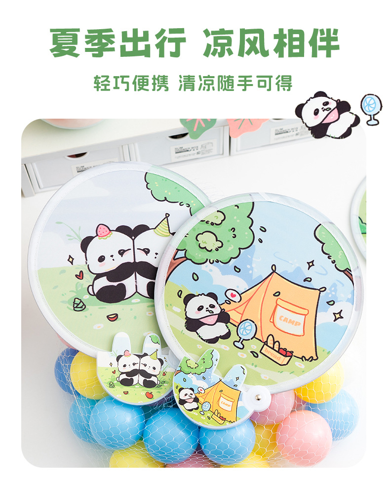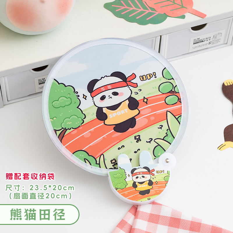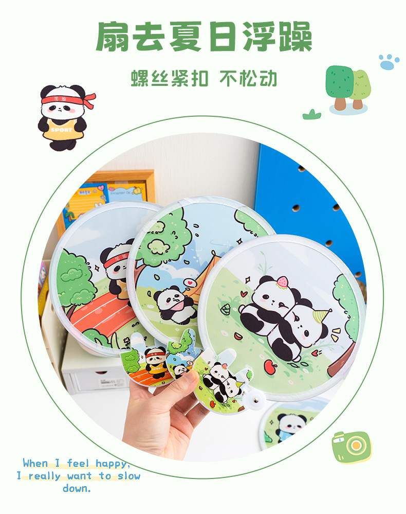反光版熊猫团扇可爱卡通折叠小扇子便携迷你口袋扇高颜值ins圆扇