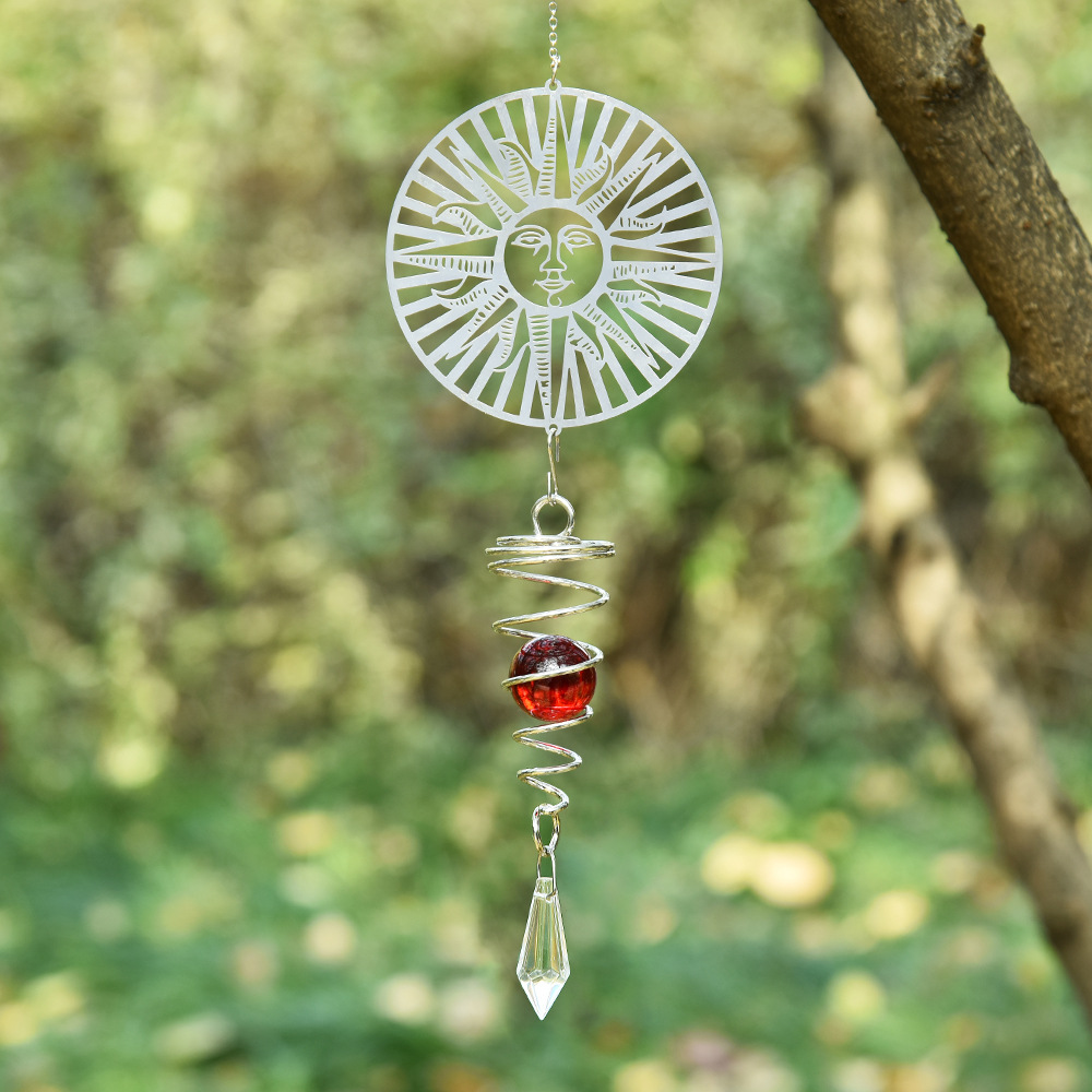 太阳捕捉器跨境旋转DIY金属风铃水晶球风铃挂件阳光捕手源头工厂